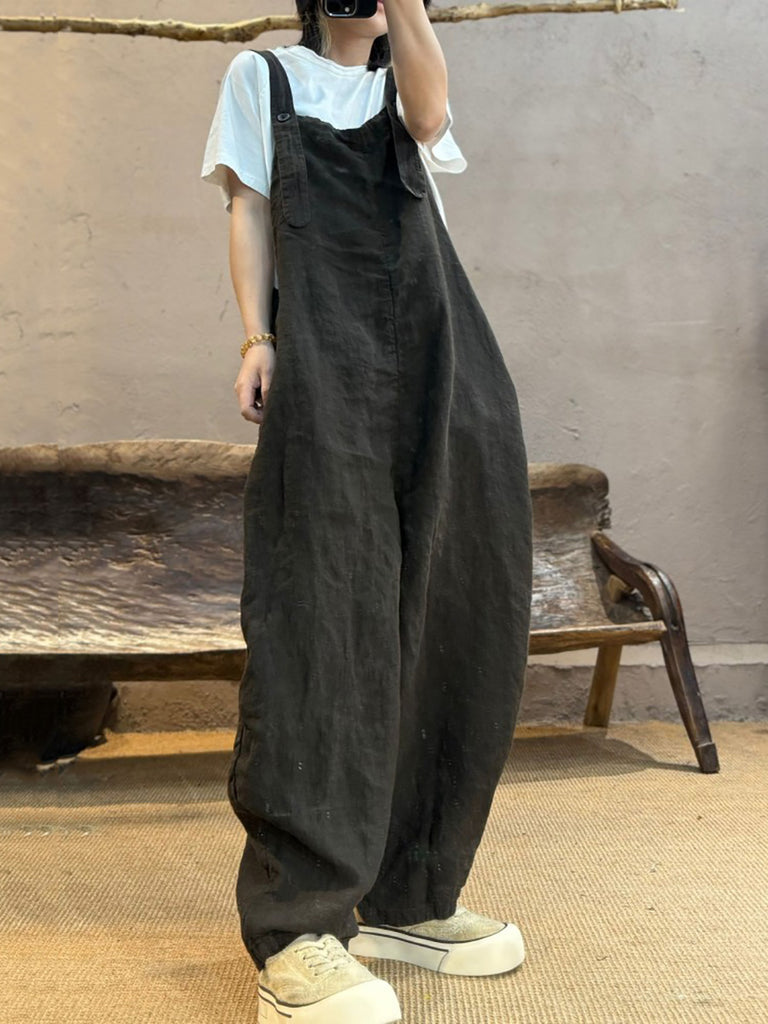 נשים קיץ רטרו צבע טהור פשתן רופף סרבל