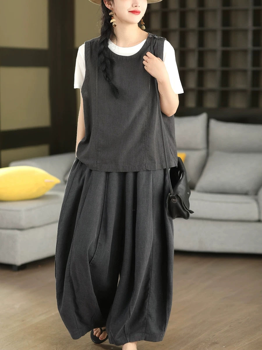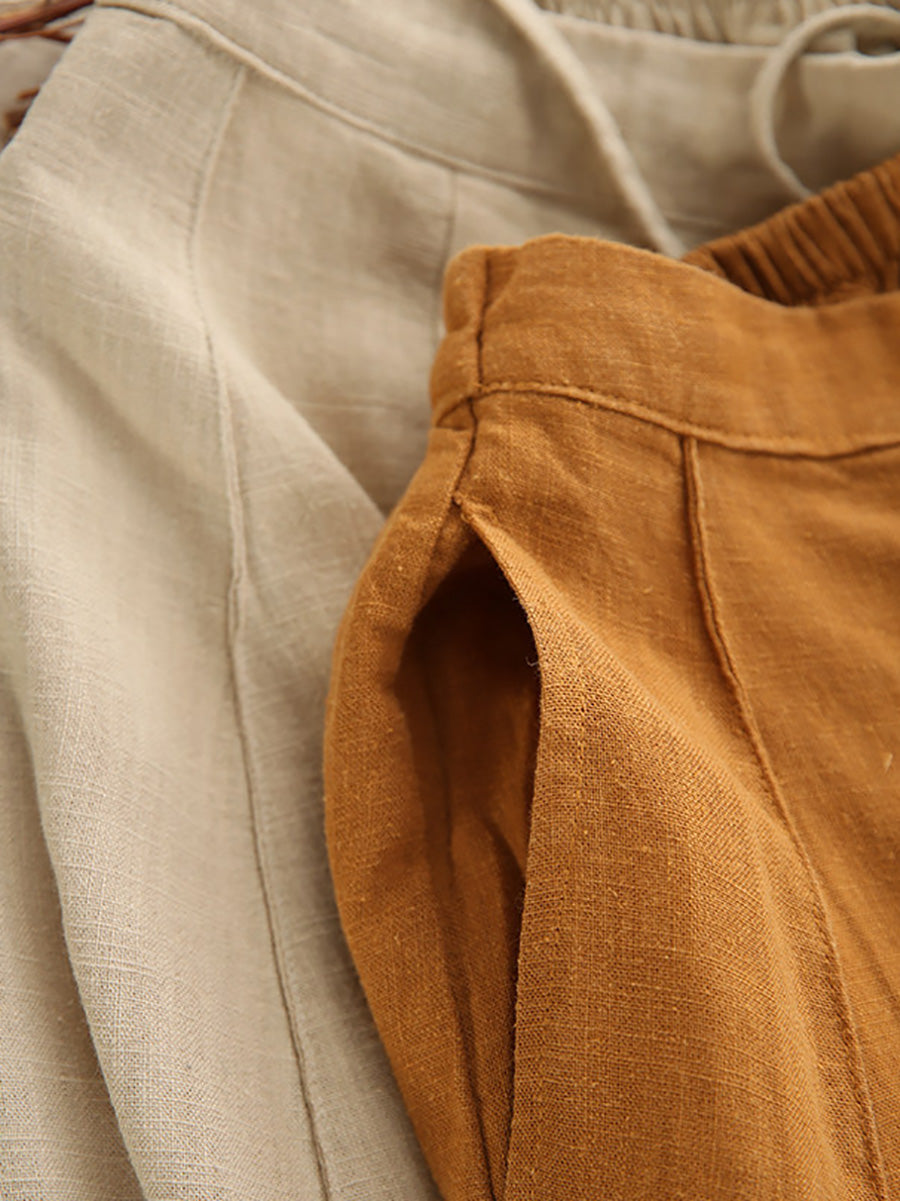נשים קיץ רטרו צבע טהור Ramie Blommers