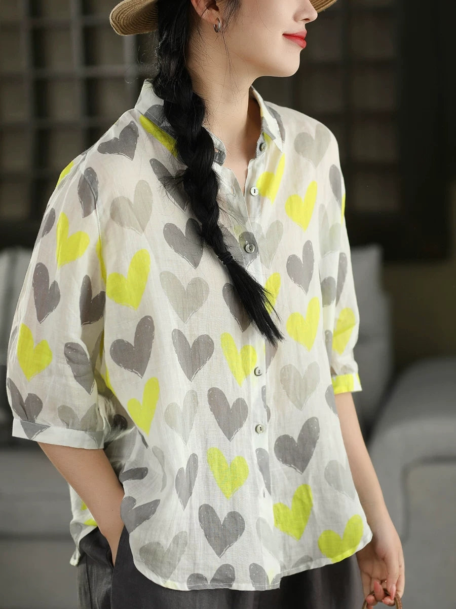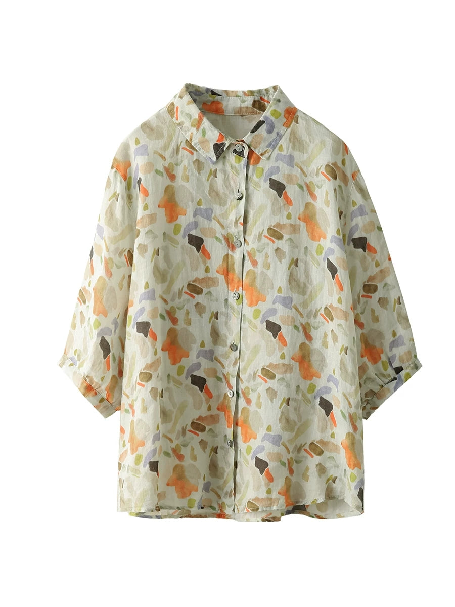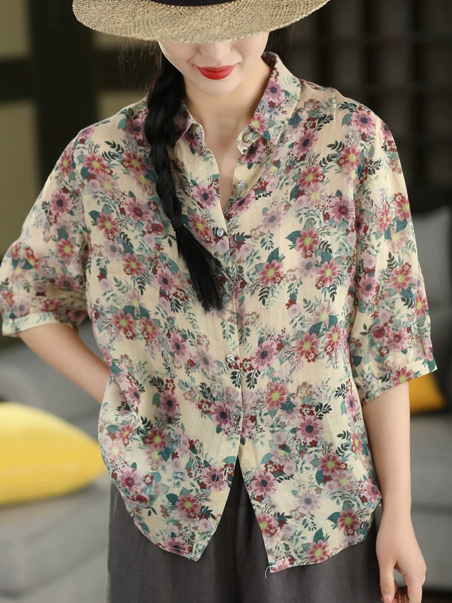 חולצת פרחים וינטג' לקיץ לנשים 100% רמי
