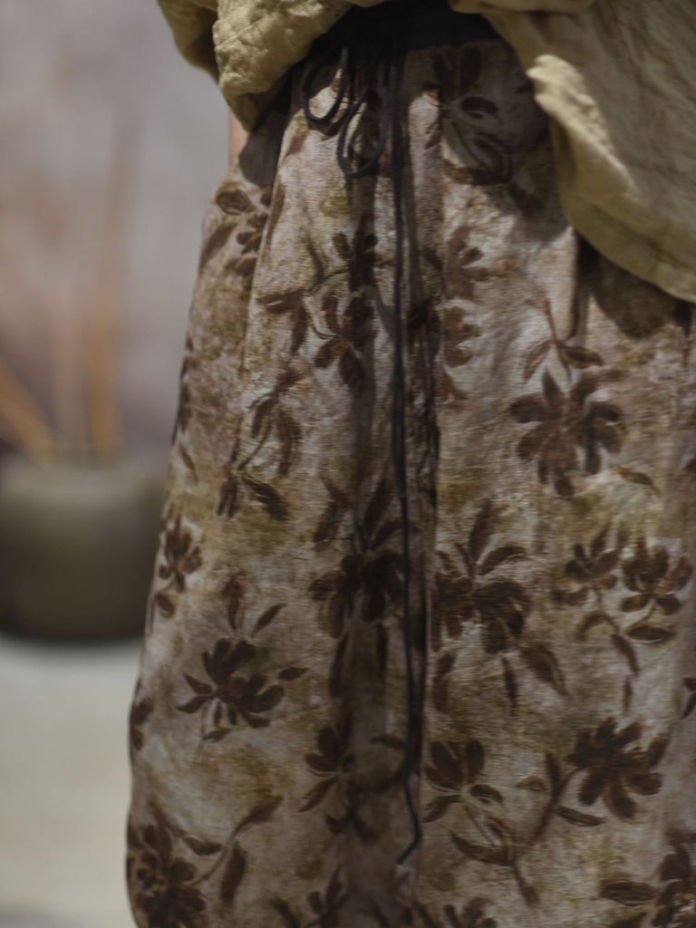 מכנסי פשתן ישרים לנשים בקיץ וינטג' פרחוניים