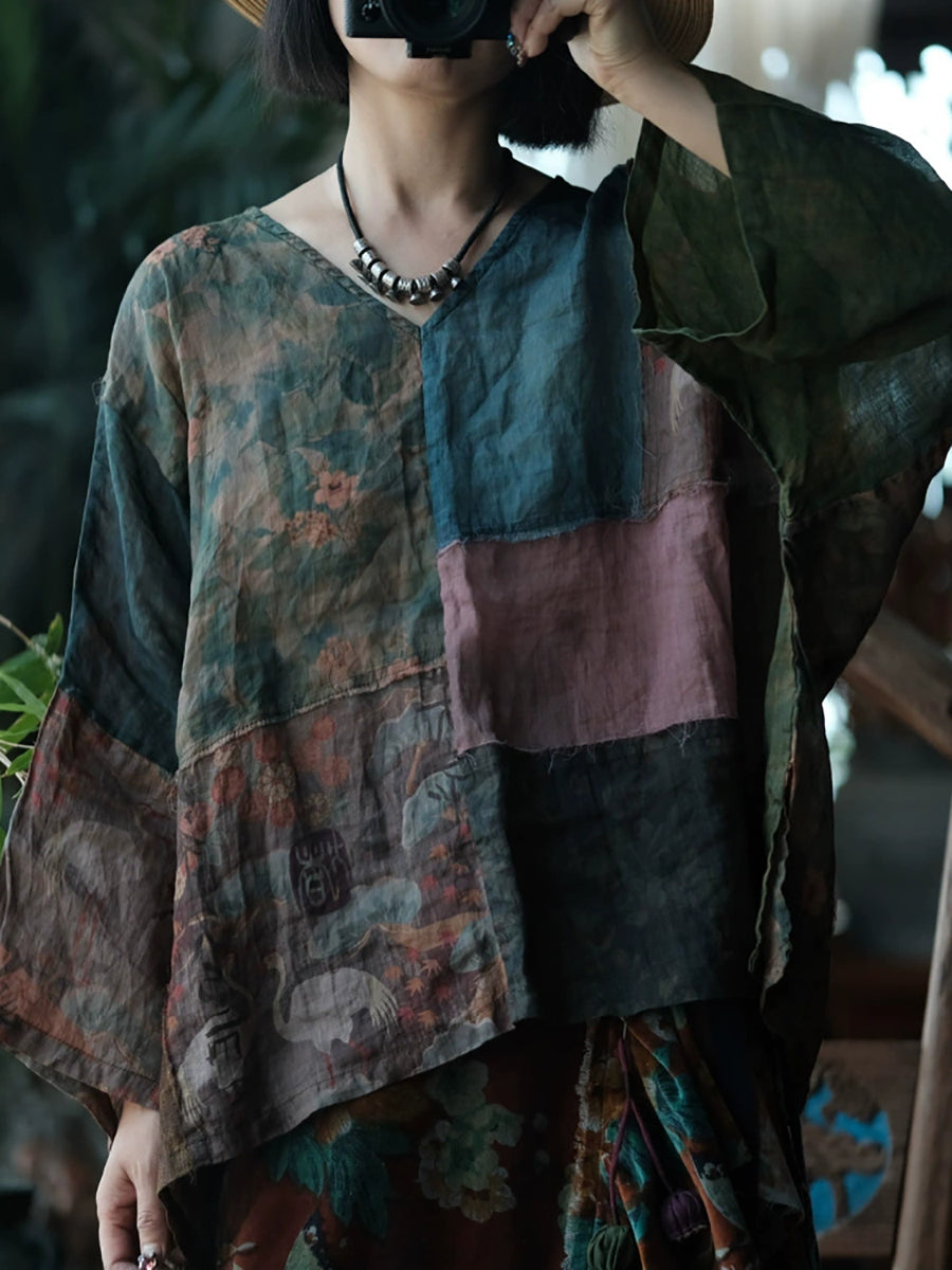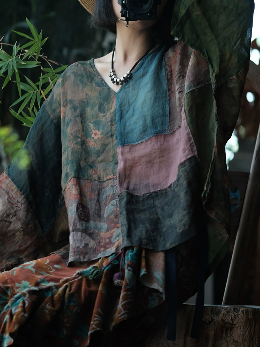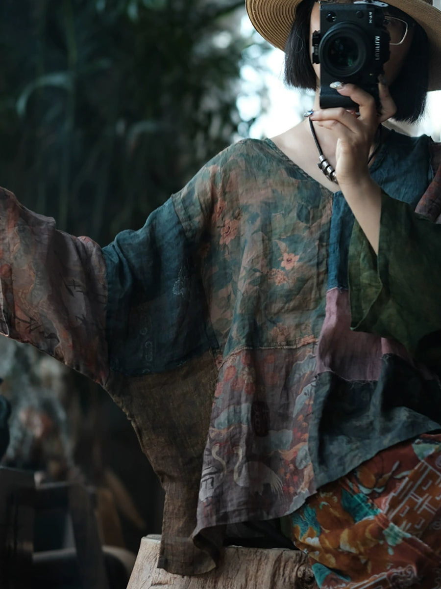 חולצת רמי טלאים פרחונית וינטג' לקיץ לנשים