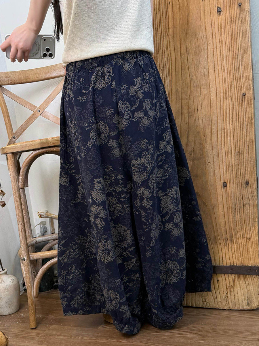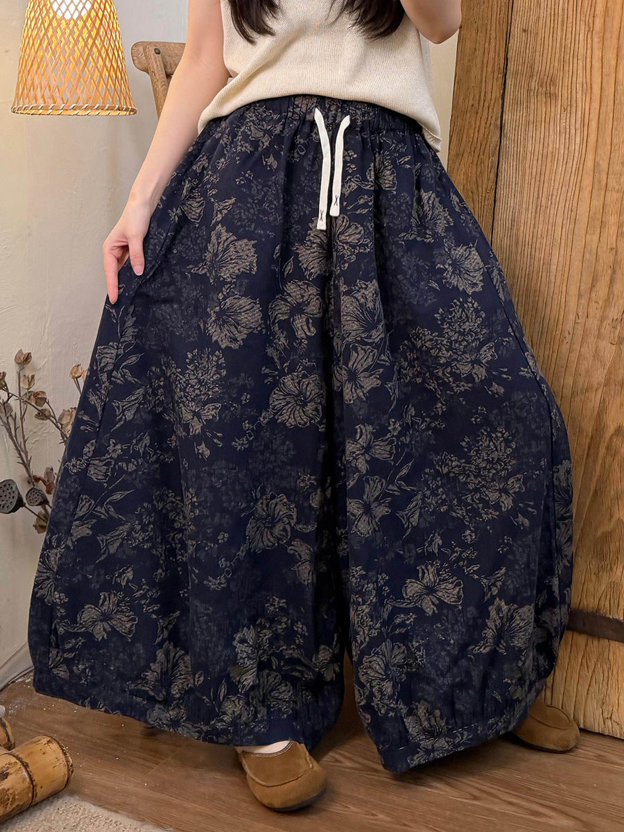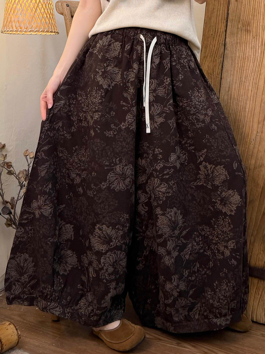 מכנסי קיץ רחבים פרחוניים וינטג' לנשים