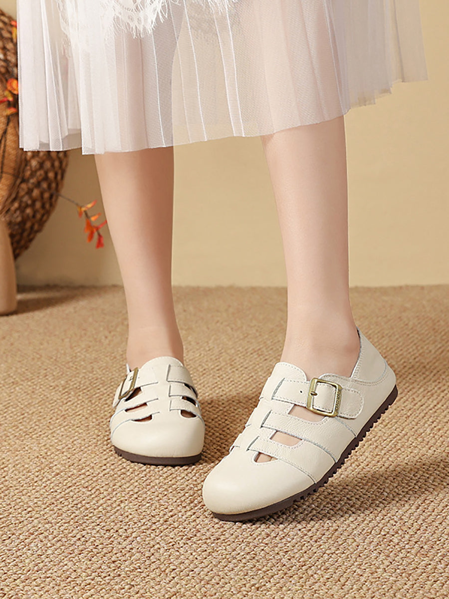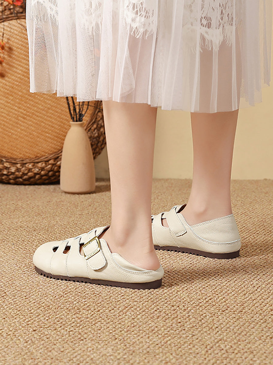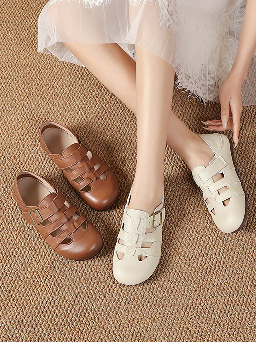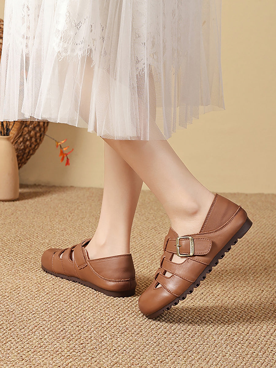סנדלי עור שטוחים מעור אמיתי וינטג' לנשים בקיץ