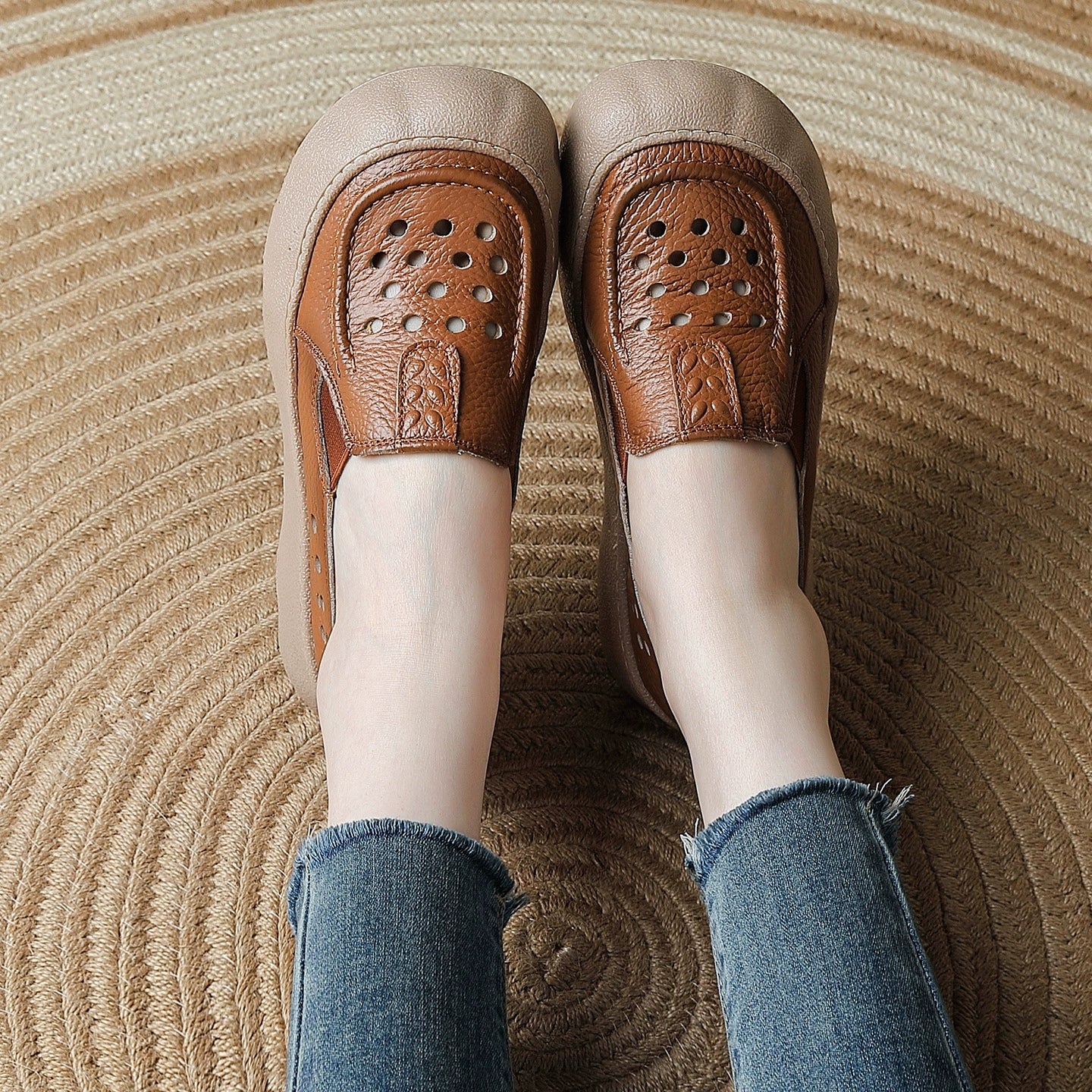 נעלי בית וינטג' מעור אמיתי לנשים בקיץ