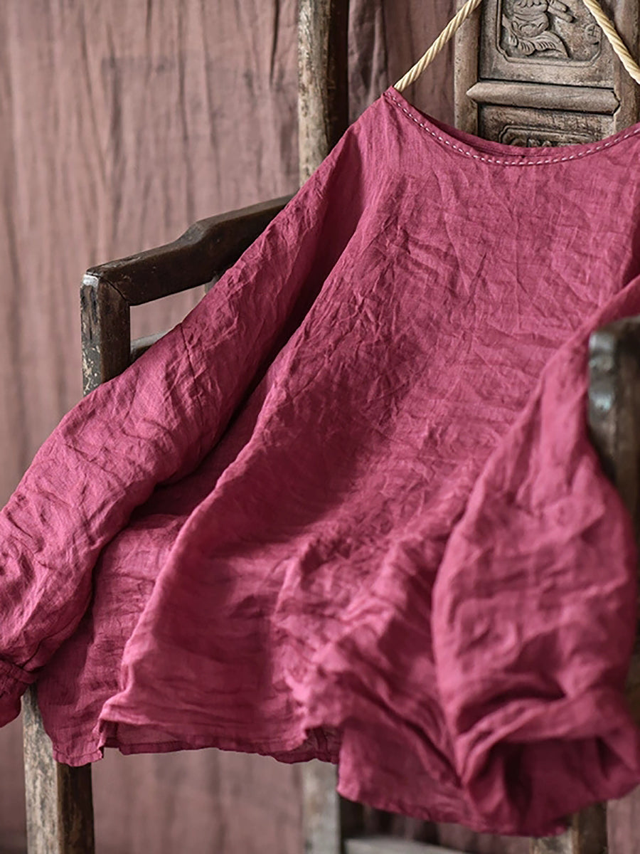 חולצת O-צוואר רמי וינטג' לקיץ לנשים
