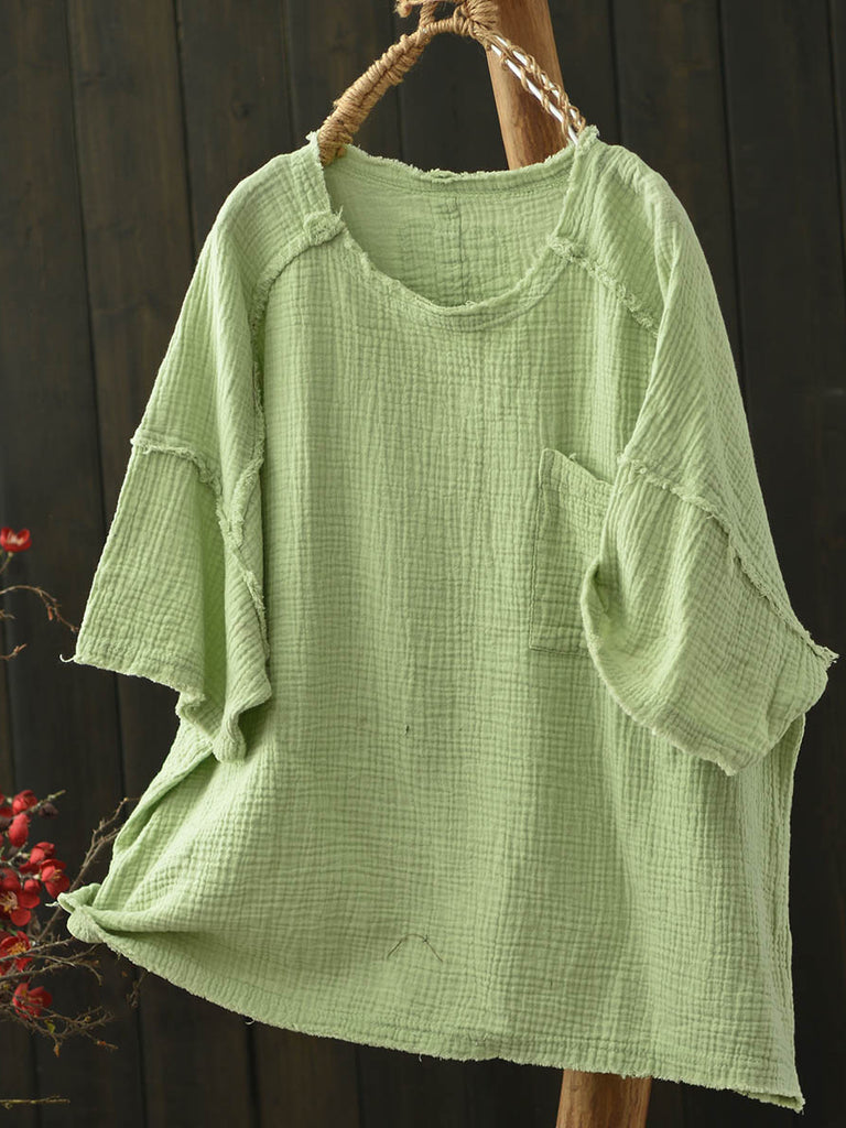 חולצת כותנה עם צווארון O בצבע טהור לקיץ לנשים