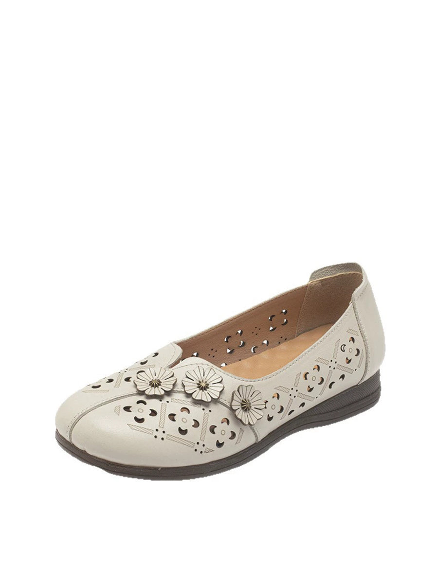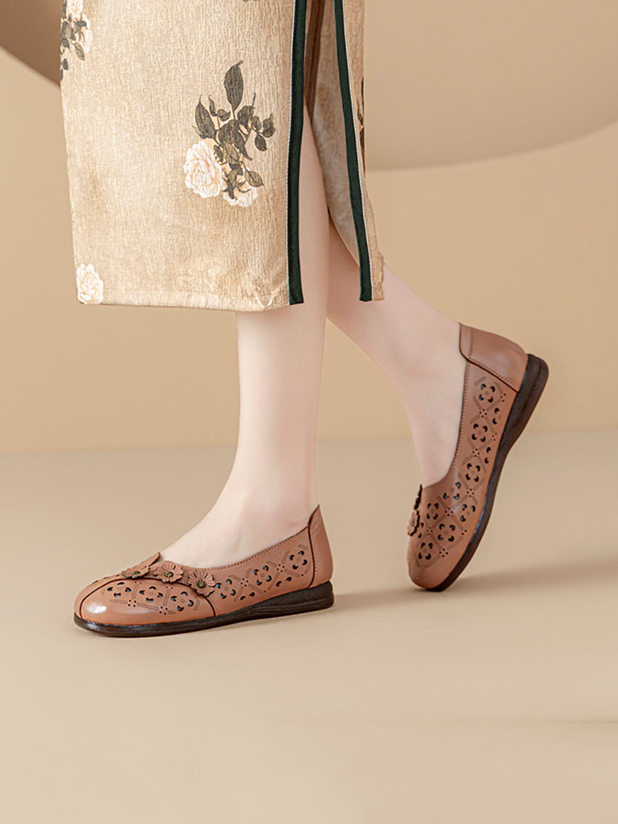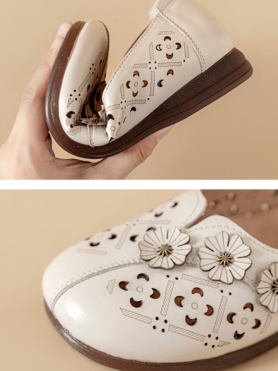סנדלי עור אמיתיים עם פרחים וינטג' לנשים