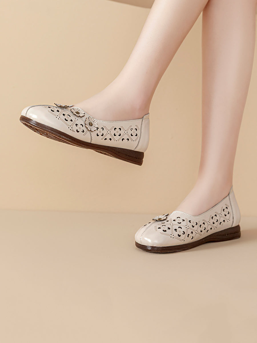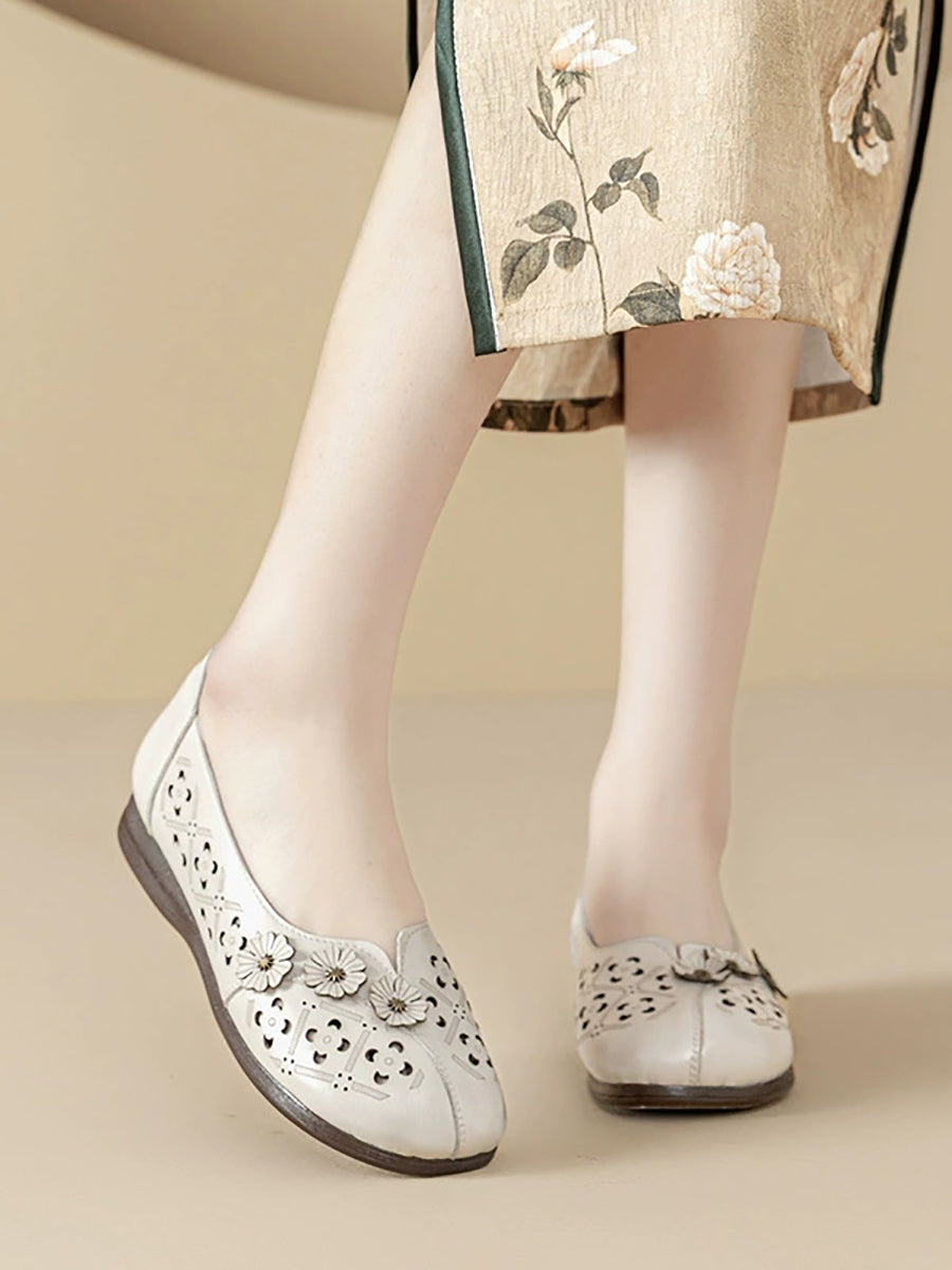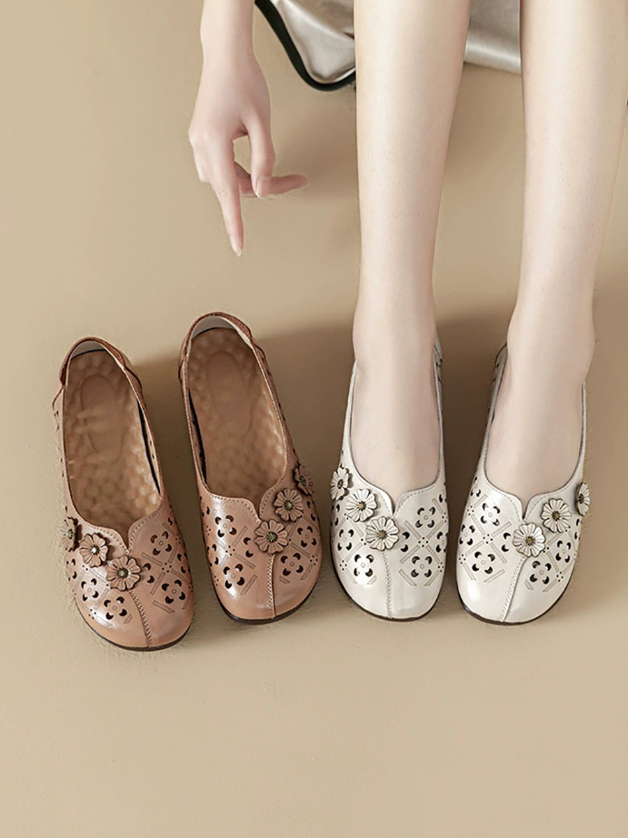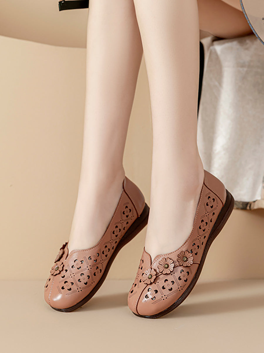 סנדלי עור אמיתיים עם פרחים וינטג' לנשים