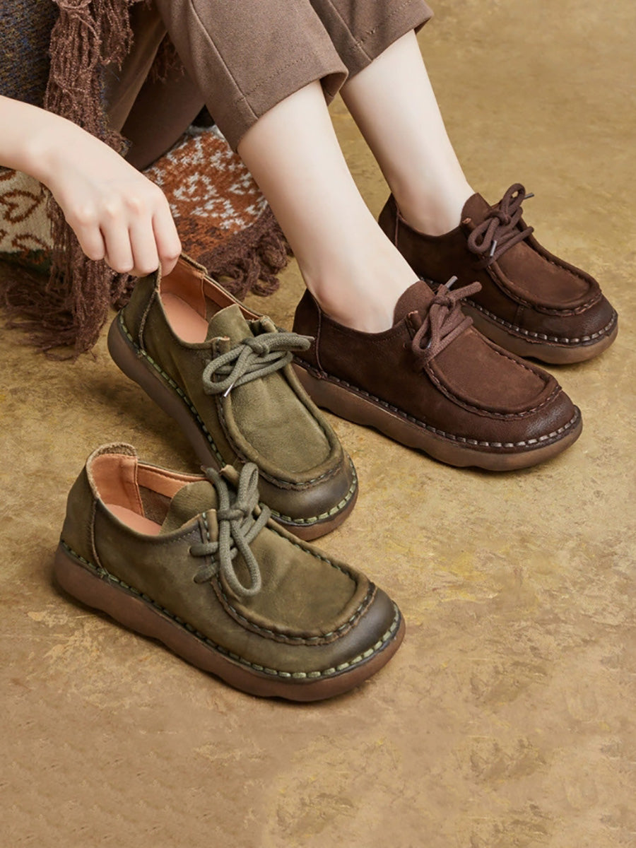 נעליים שטוחות מעור אמיתי וינטג' לנשים