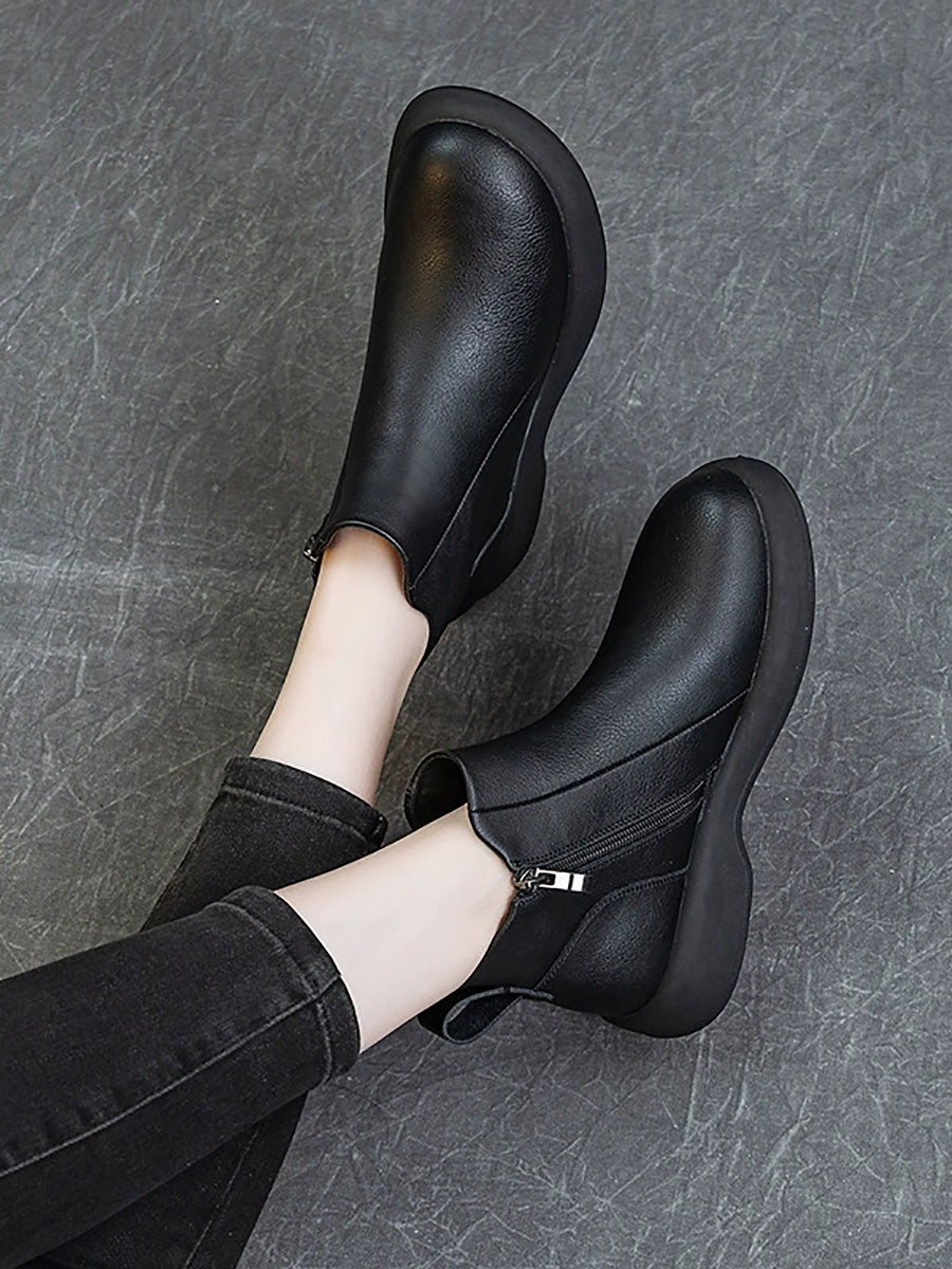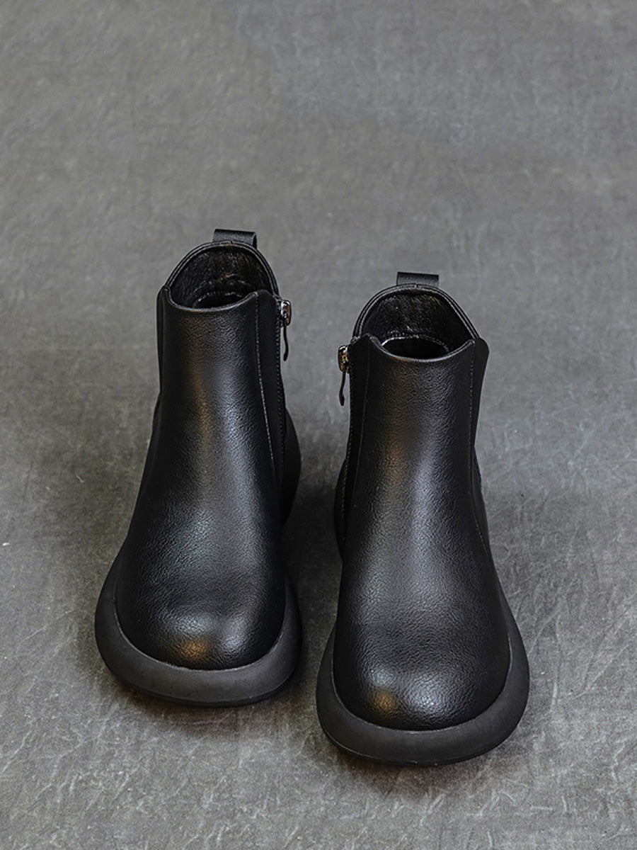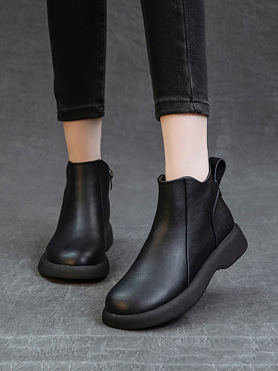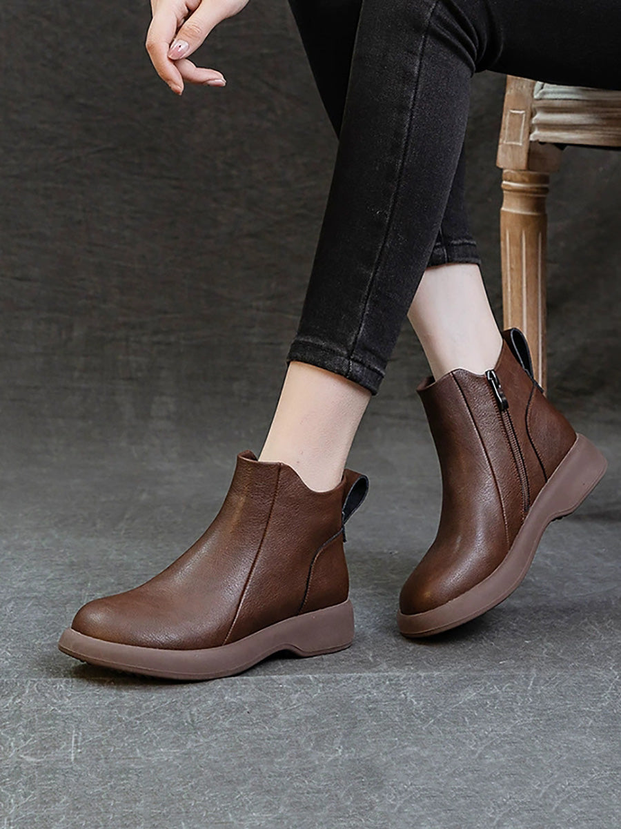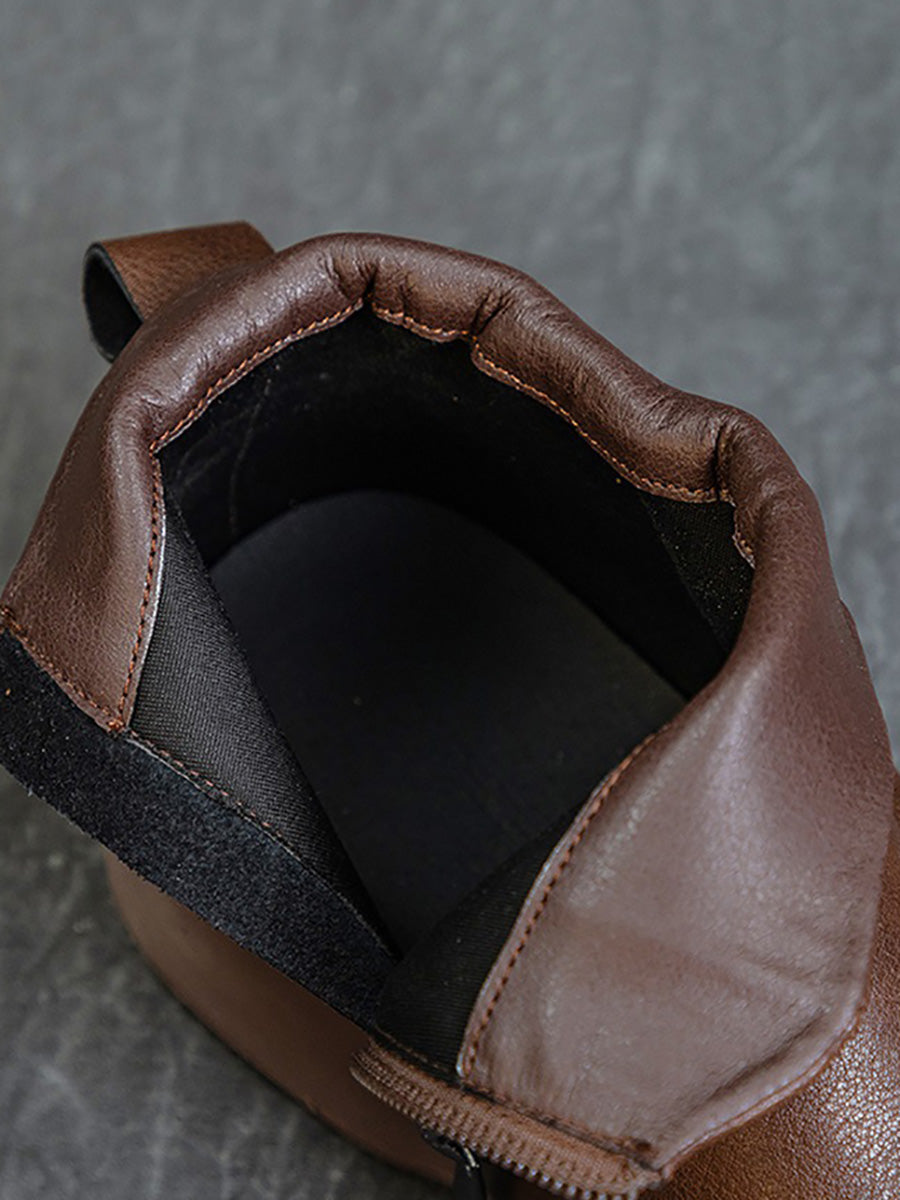 מגפי עור אמיתיים וינטג' לנשים עם עקב נמוך