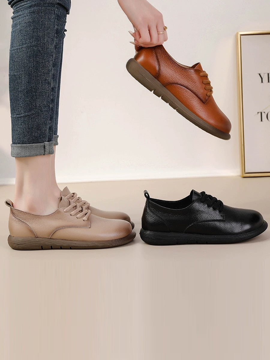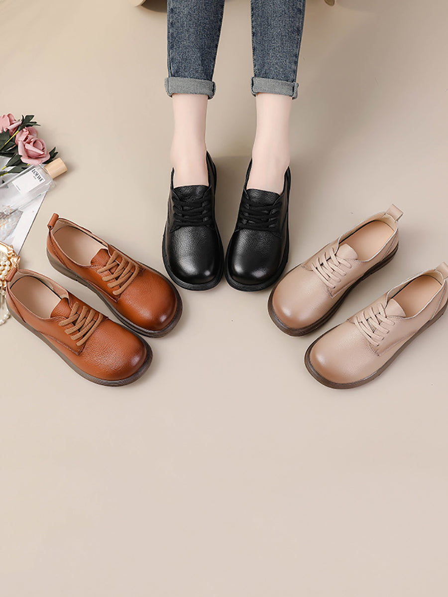 נעליים שטוחות מעור אמיתי וינטג' לנשים