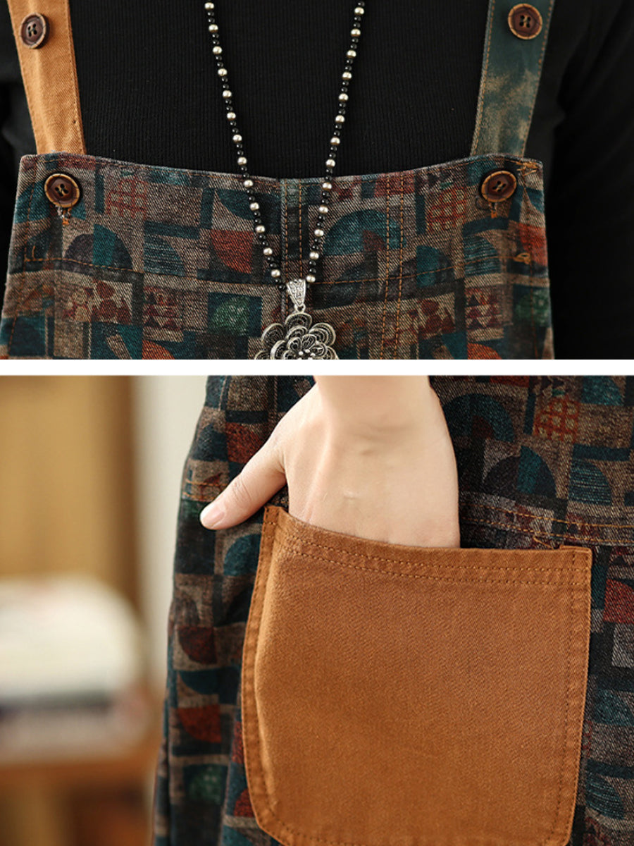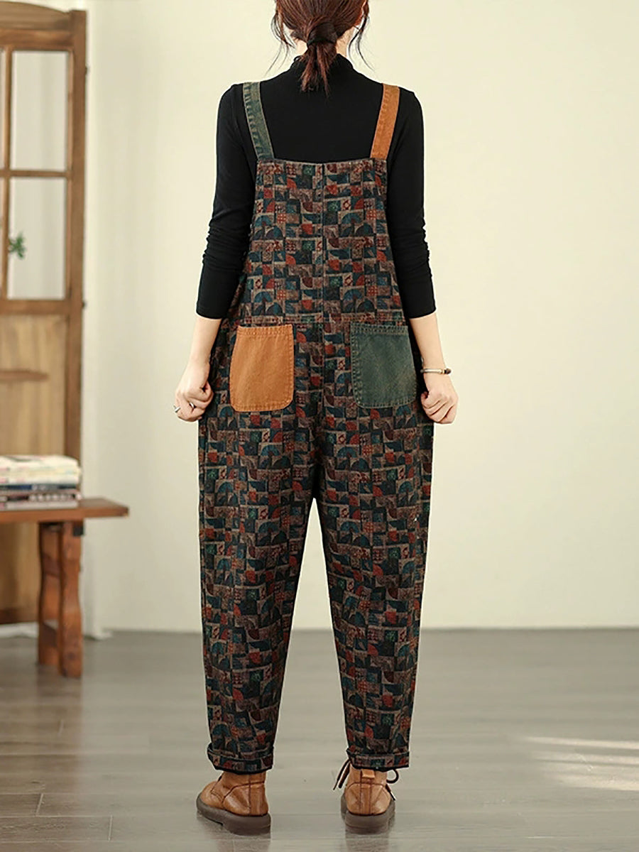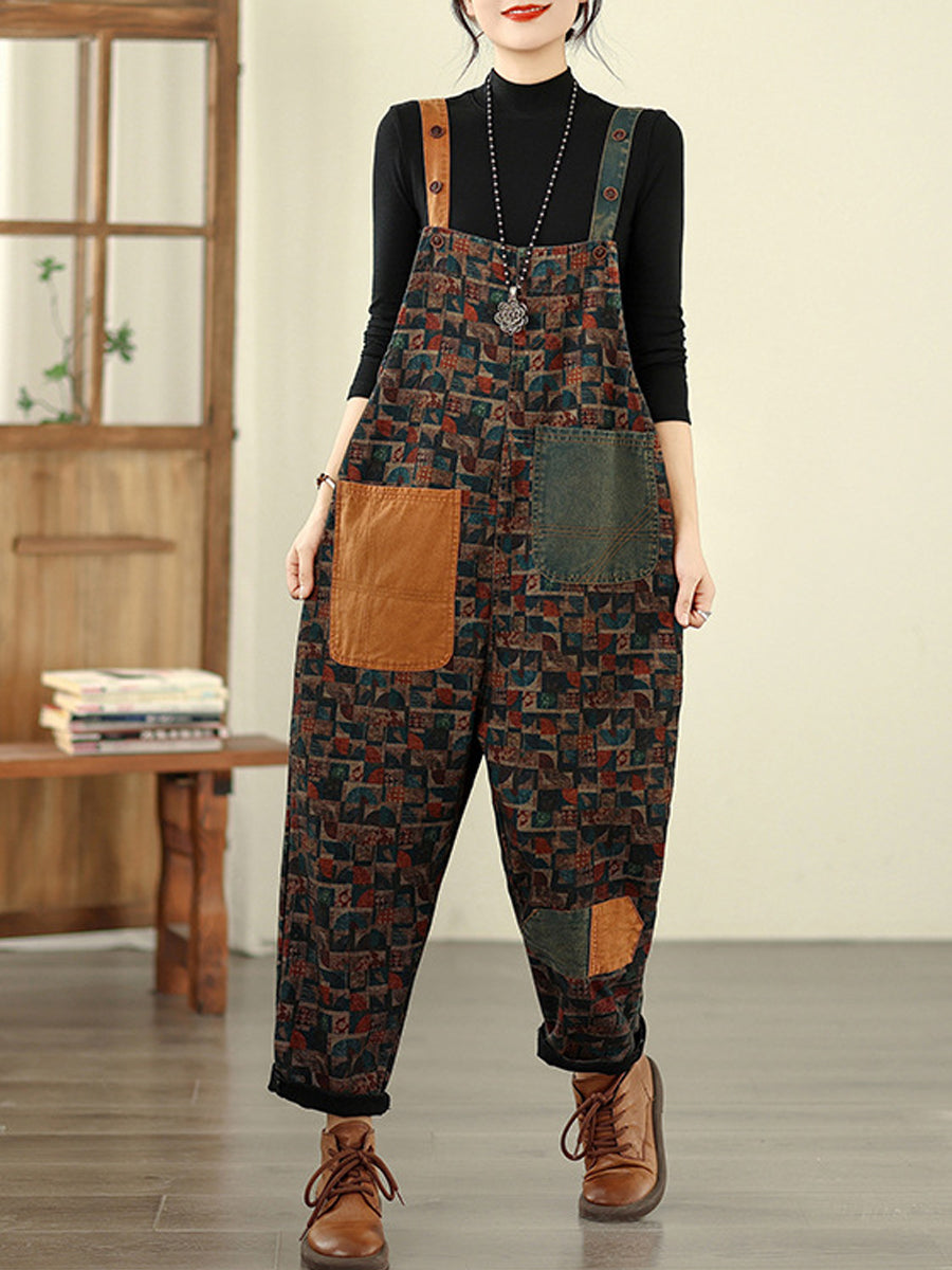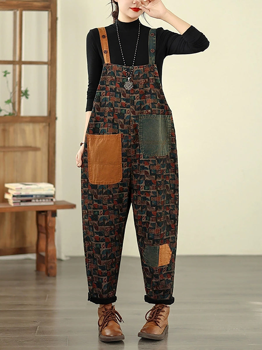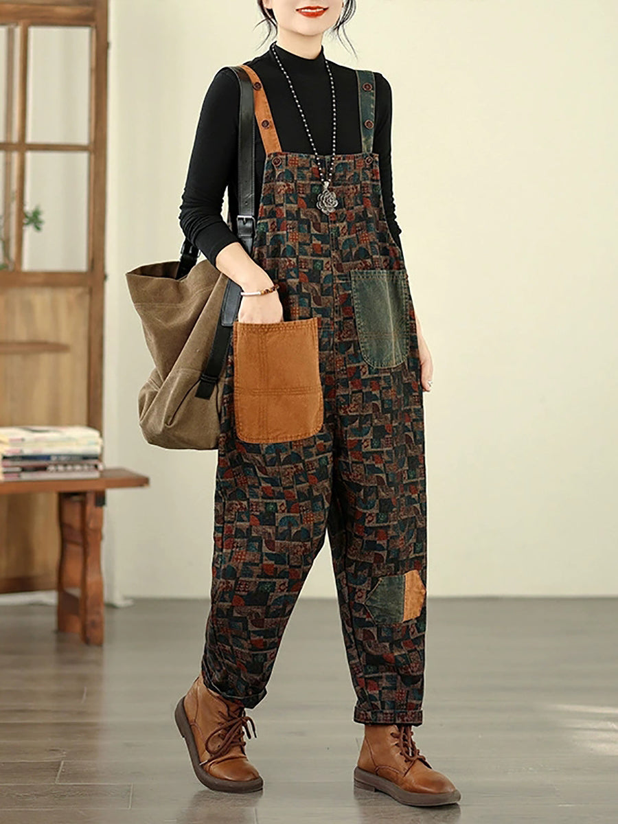 סרבלי ג'ינס רופפים מכותנה טלאים וינטג' לנשים