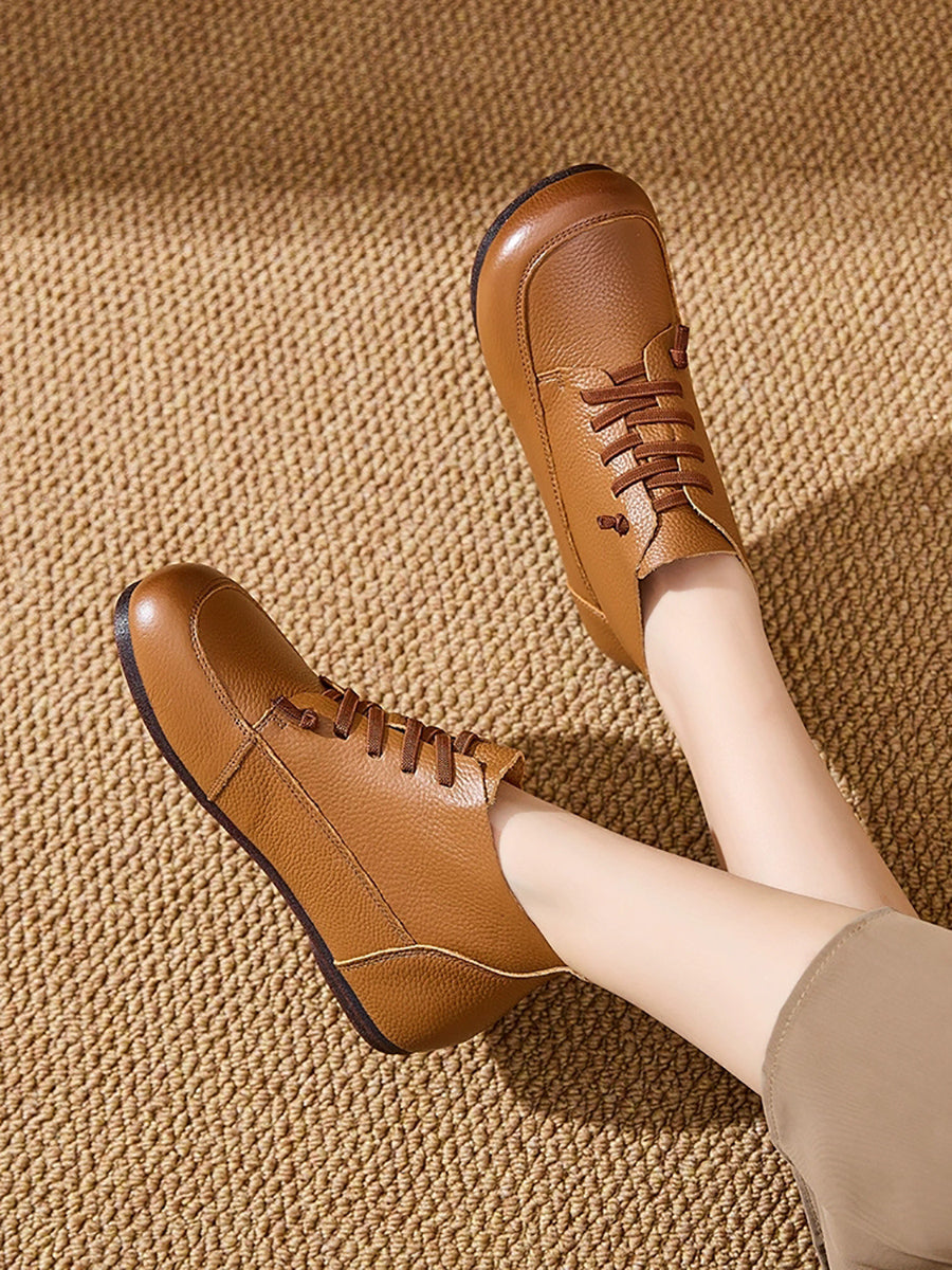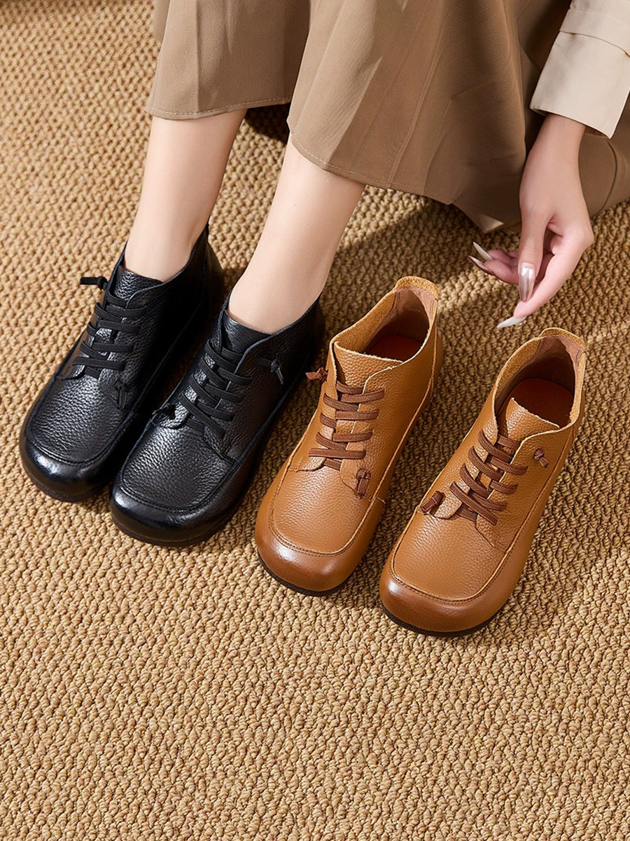 מגפי עור רכים וינטג' לנשים עם עקב נמוך