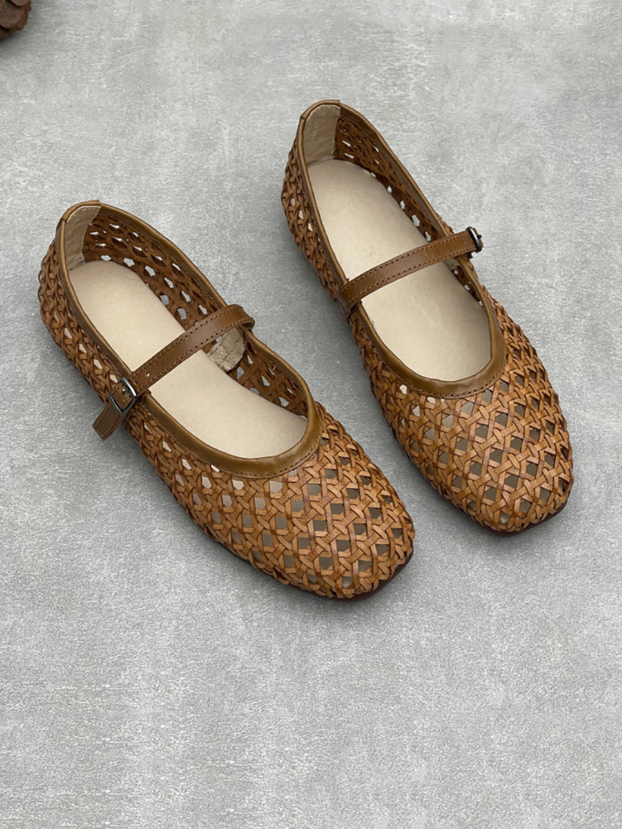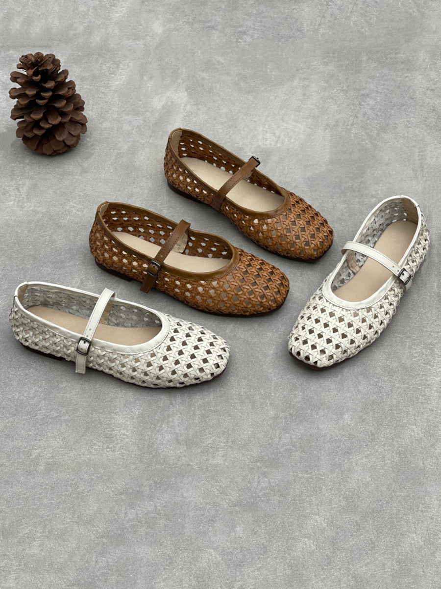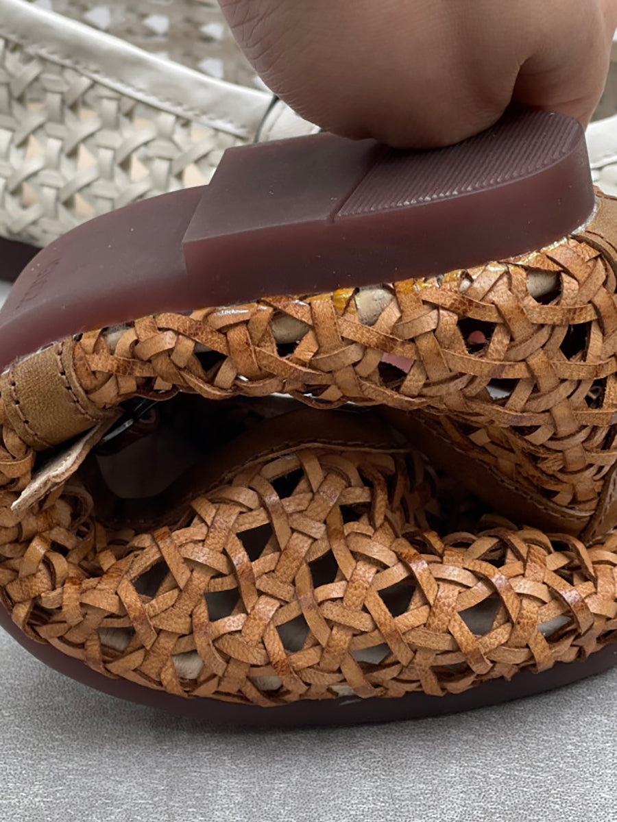 סנדלי אריגת עור וינטג' לנשים בקיץ