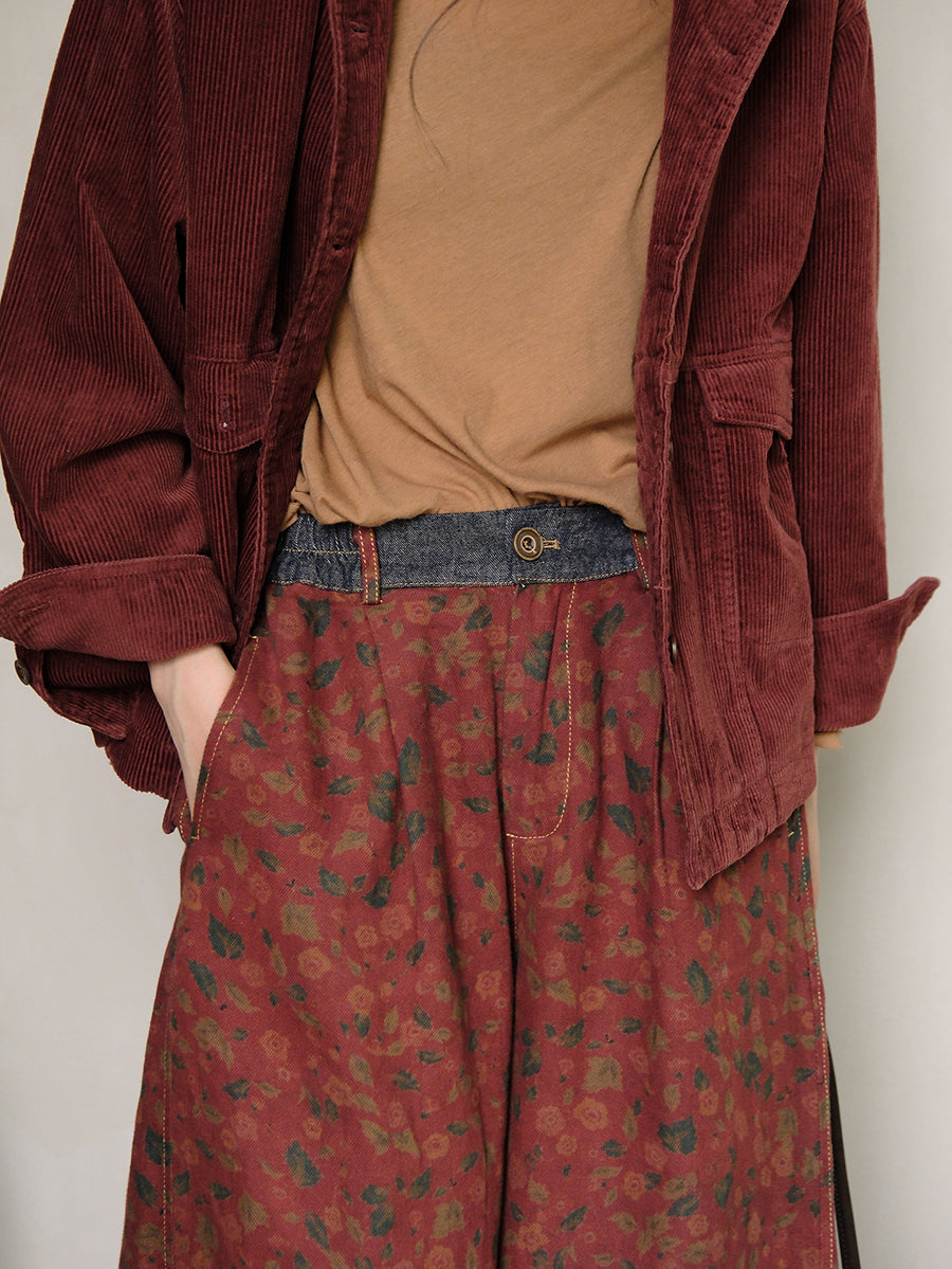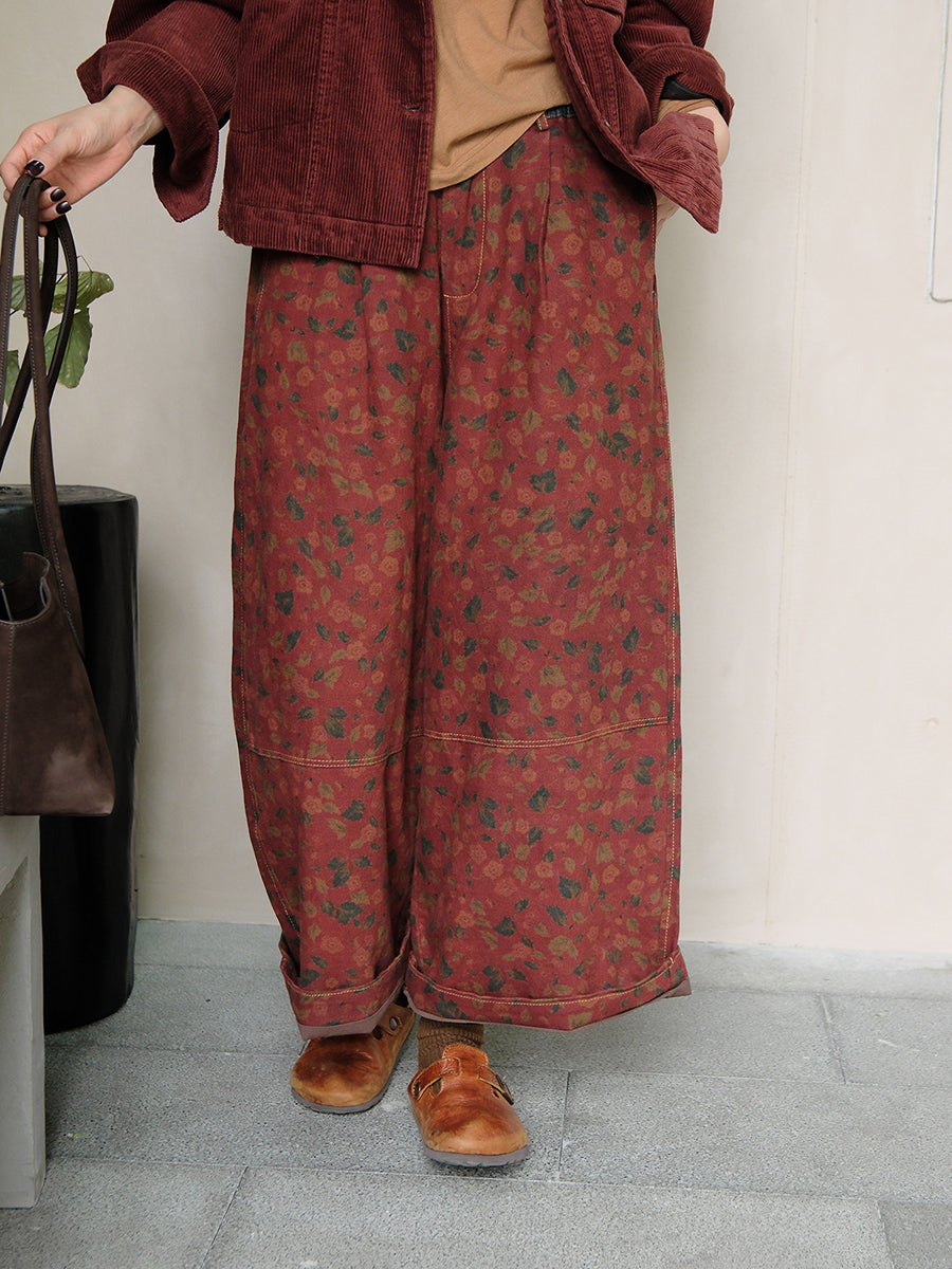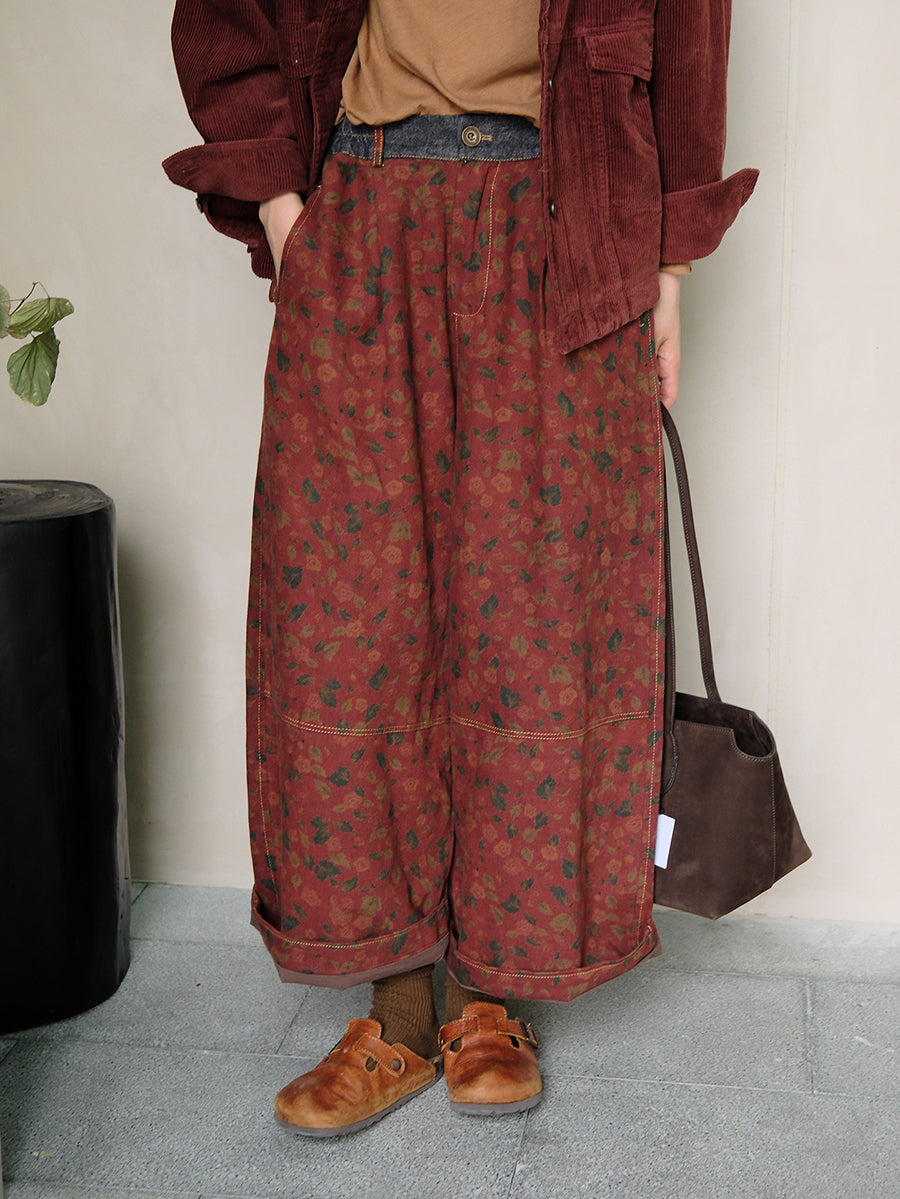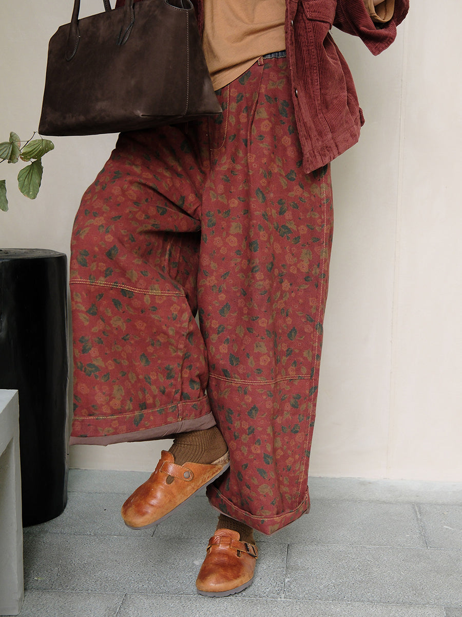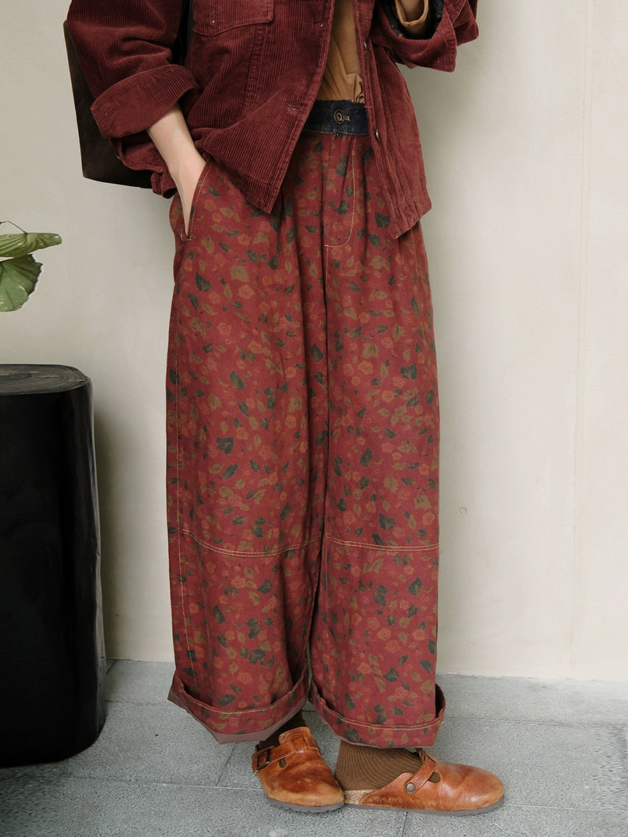מכנסי חורף רחבים פרחוניים אומנותיים לנשים