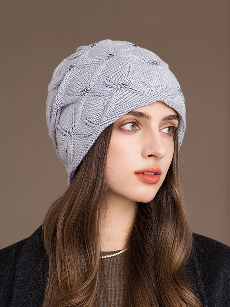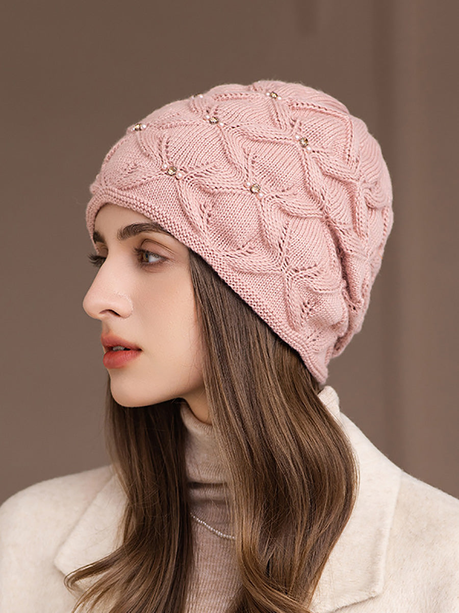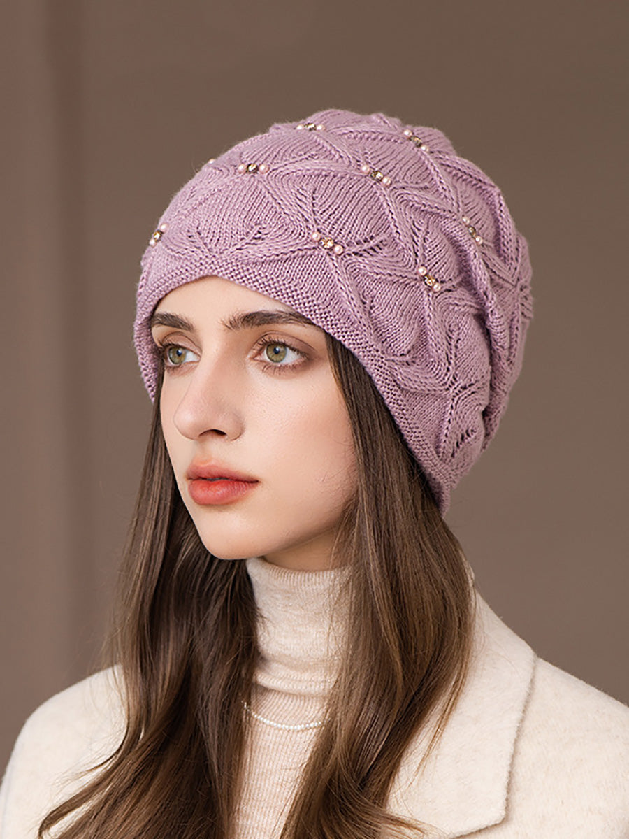 כובע סרוג בצבע טהור לאמנויות חורף לנשים