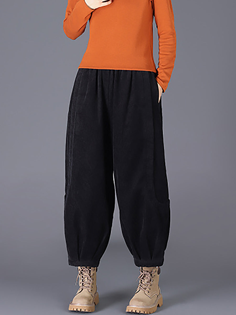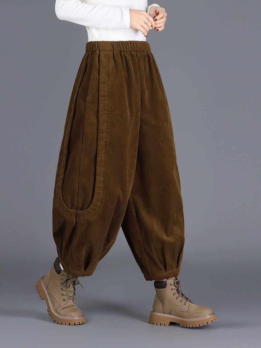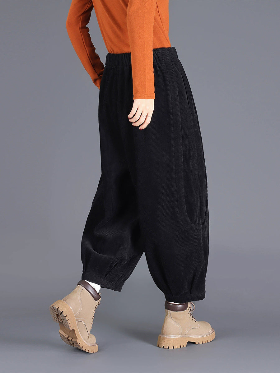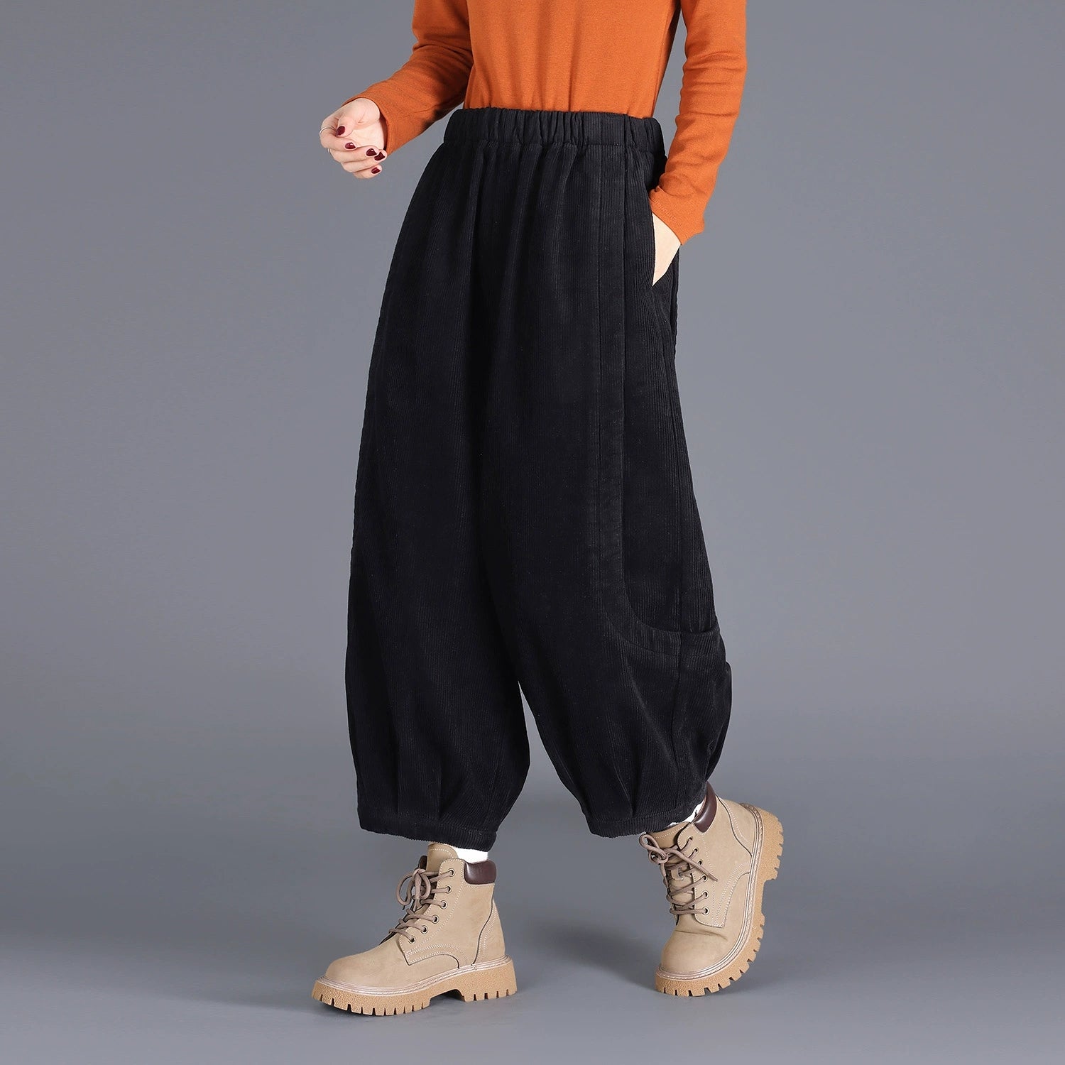 מכנסי הרמון קורדרוי בצבע טהור מזדמנים לחורף לנשים