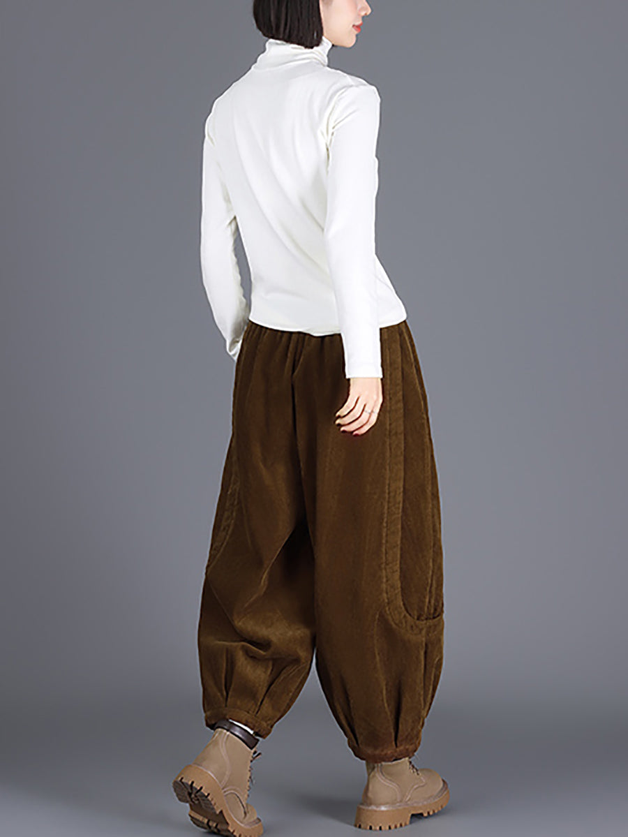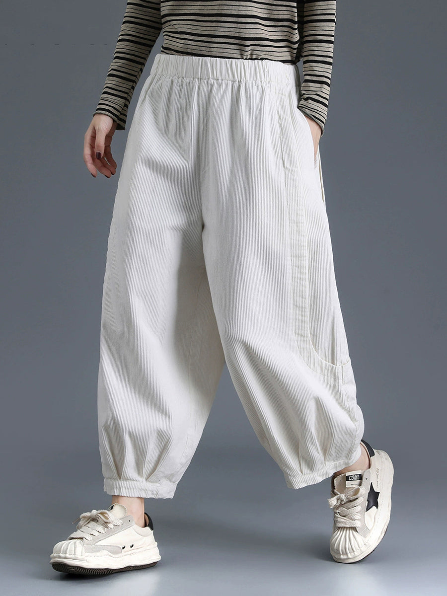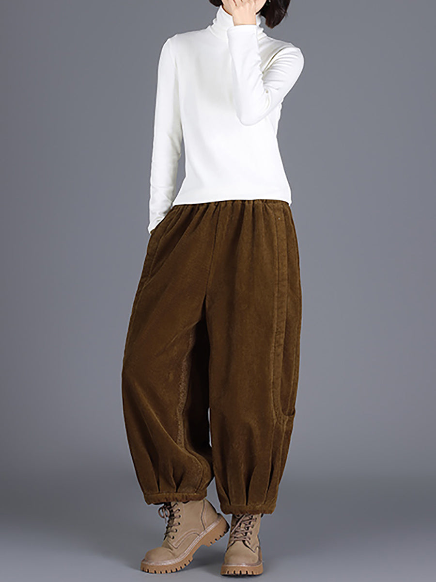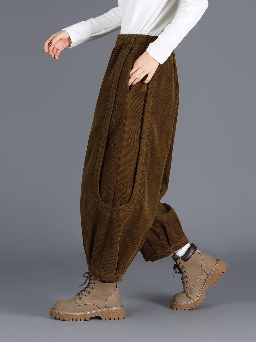 מכנסי הרמון קורדרוי בצבע טהור מזדמנים לחורף לנשים