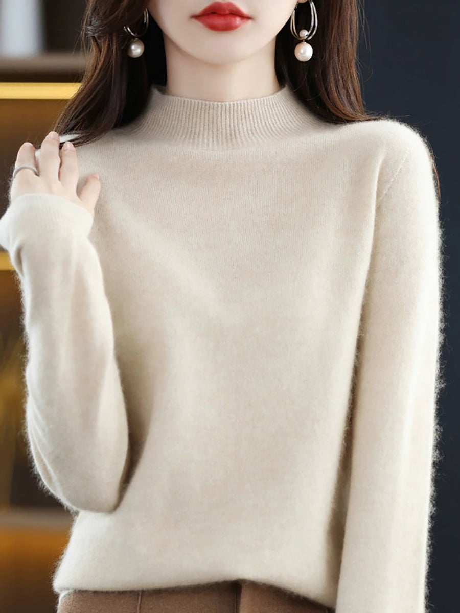 סוודר חצי גולף בצבע טהור חורף לנשים