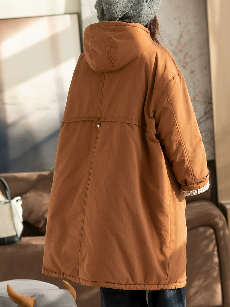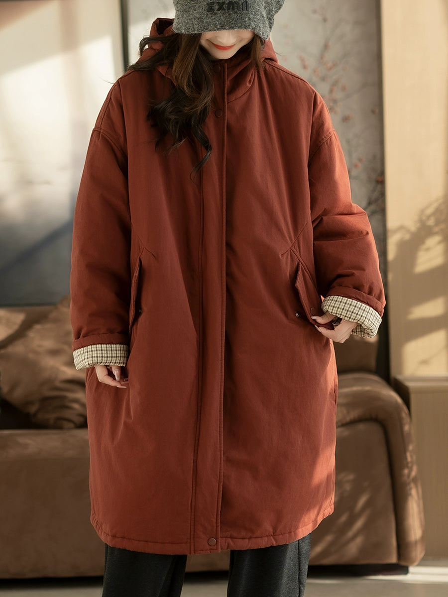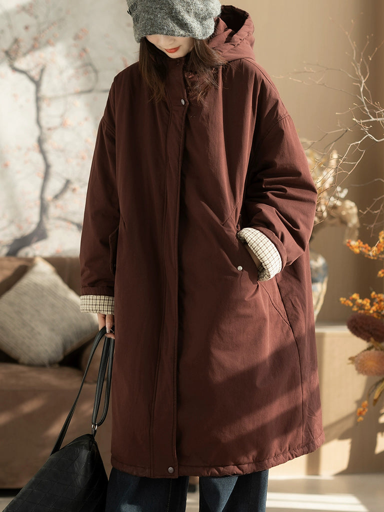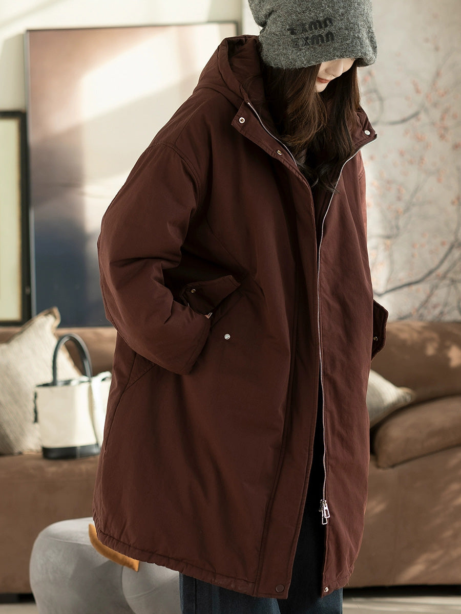 מעיל מרופד בצבע טהור וקז'ואל לנשים בחורף