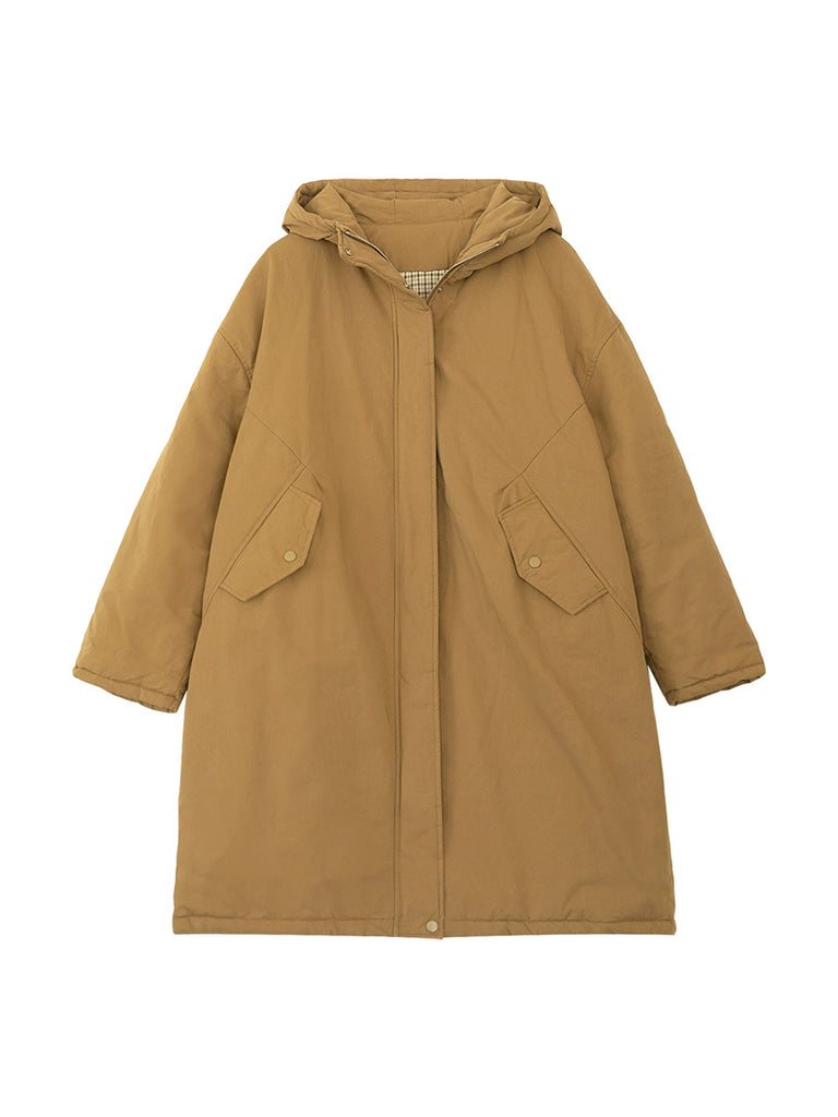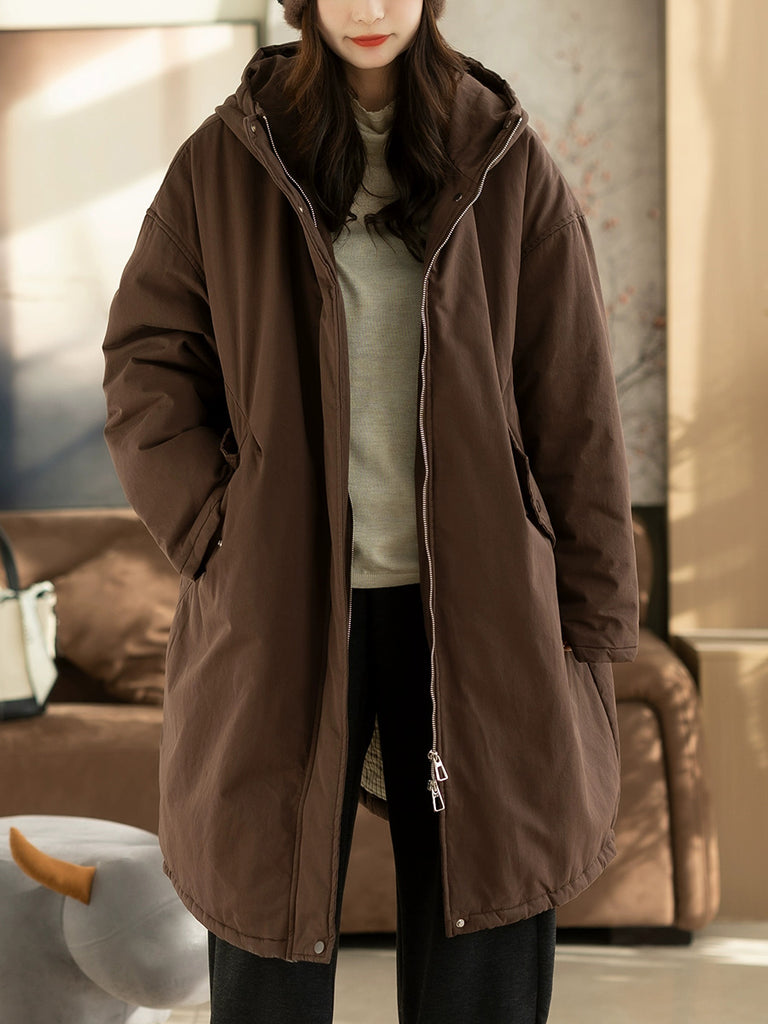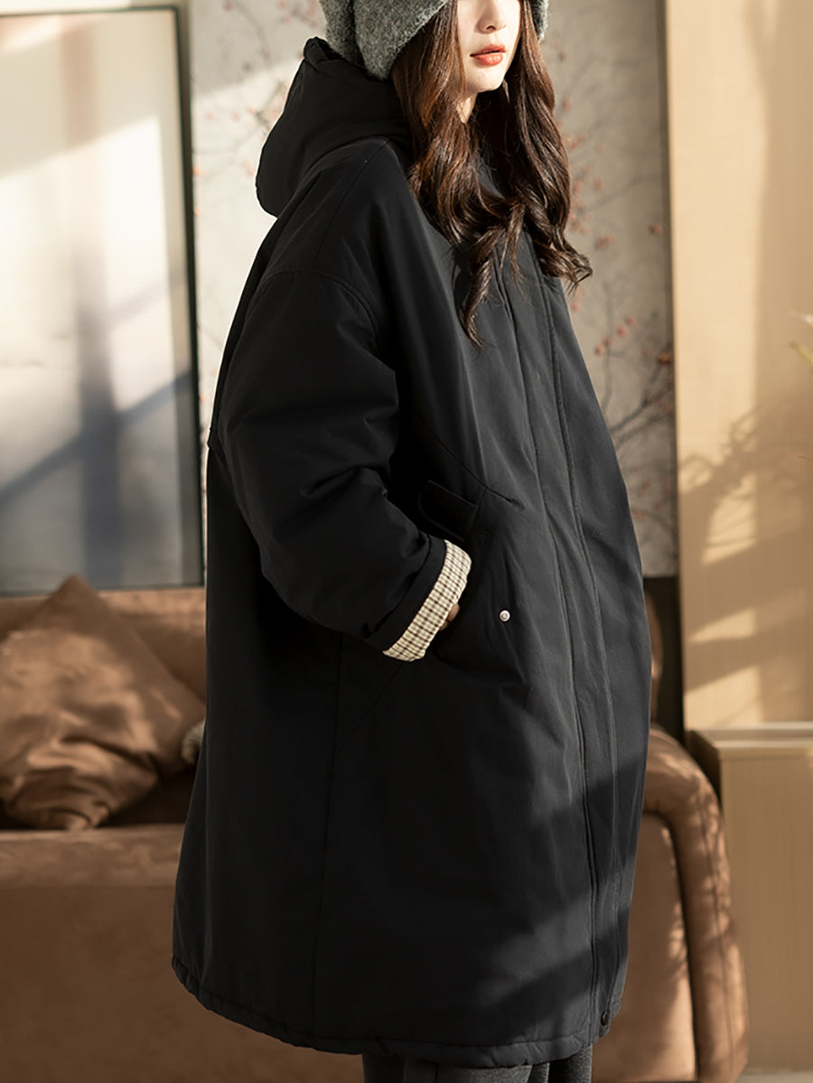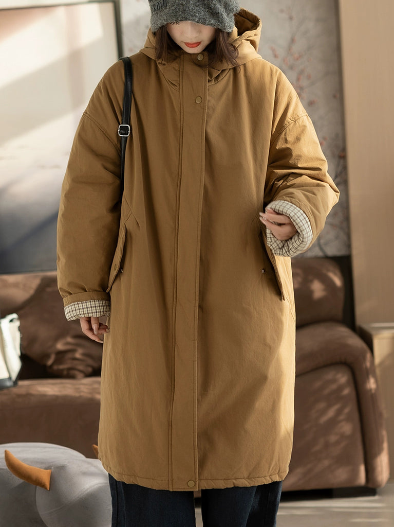 מעיל מרופד בצבע טהור וקז'ואל לנשים בחורף