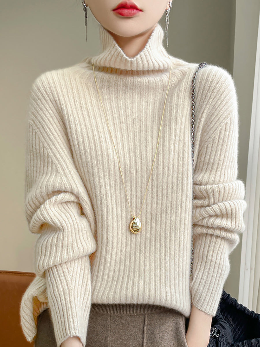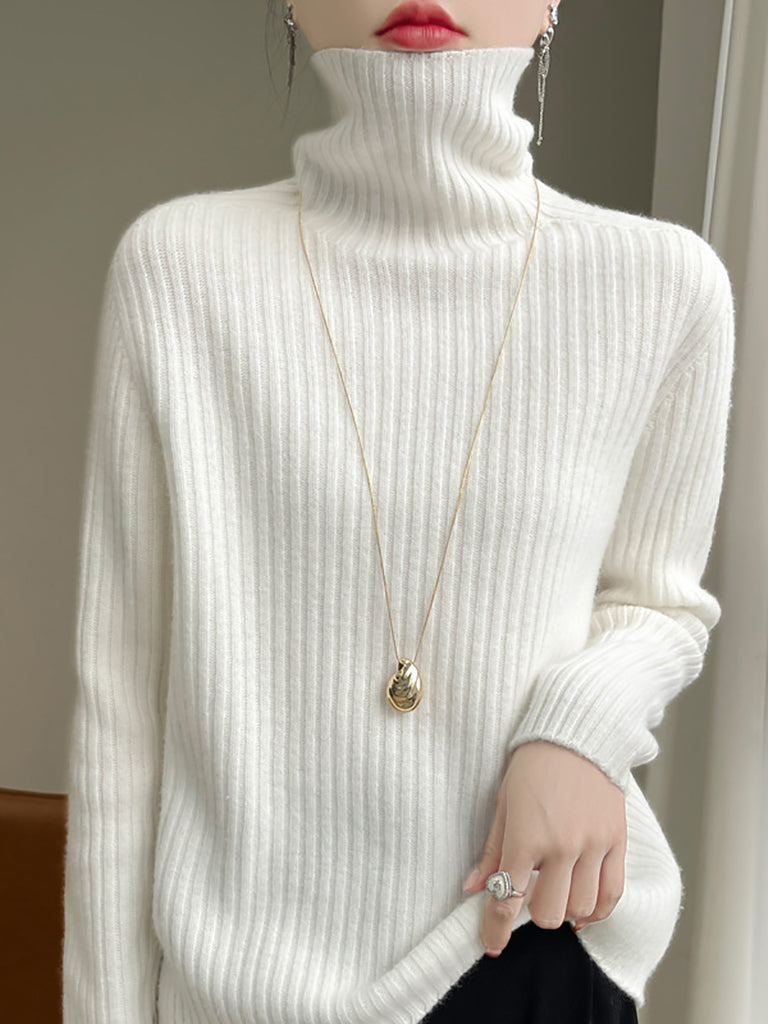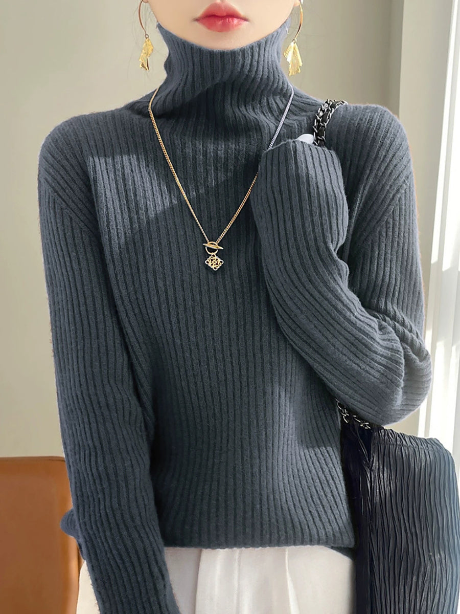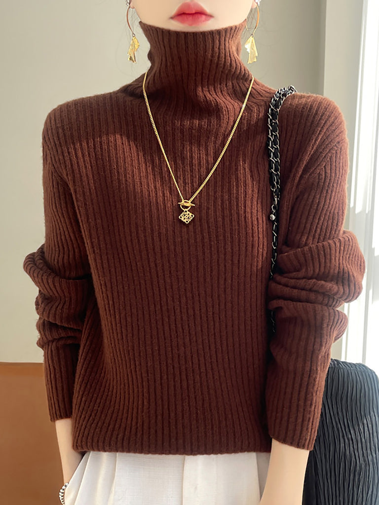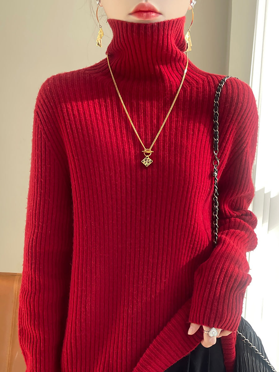 סוודר גולף סרוג בצבע טהור מזדמן חורף לנשים