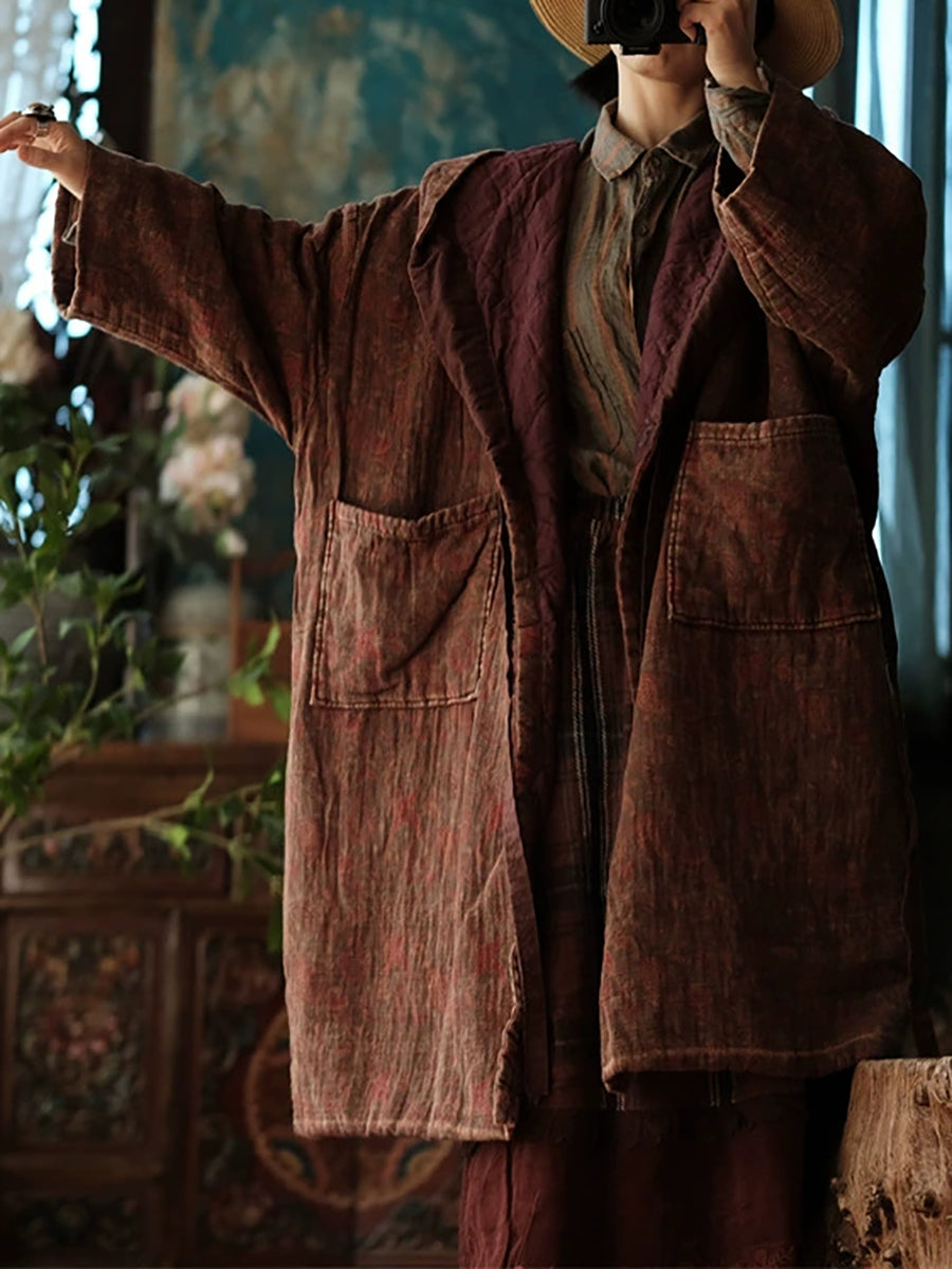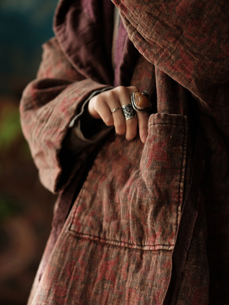 מעיל כותנה עם קפוצ'ון בהדפס אתני לחורף לנשים
