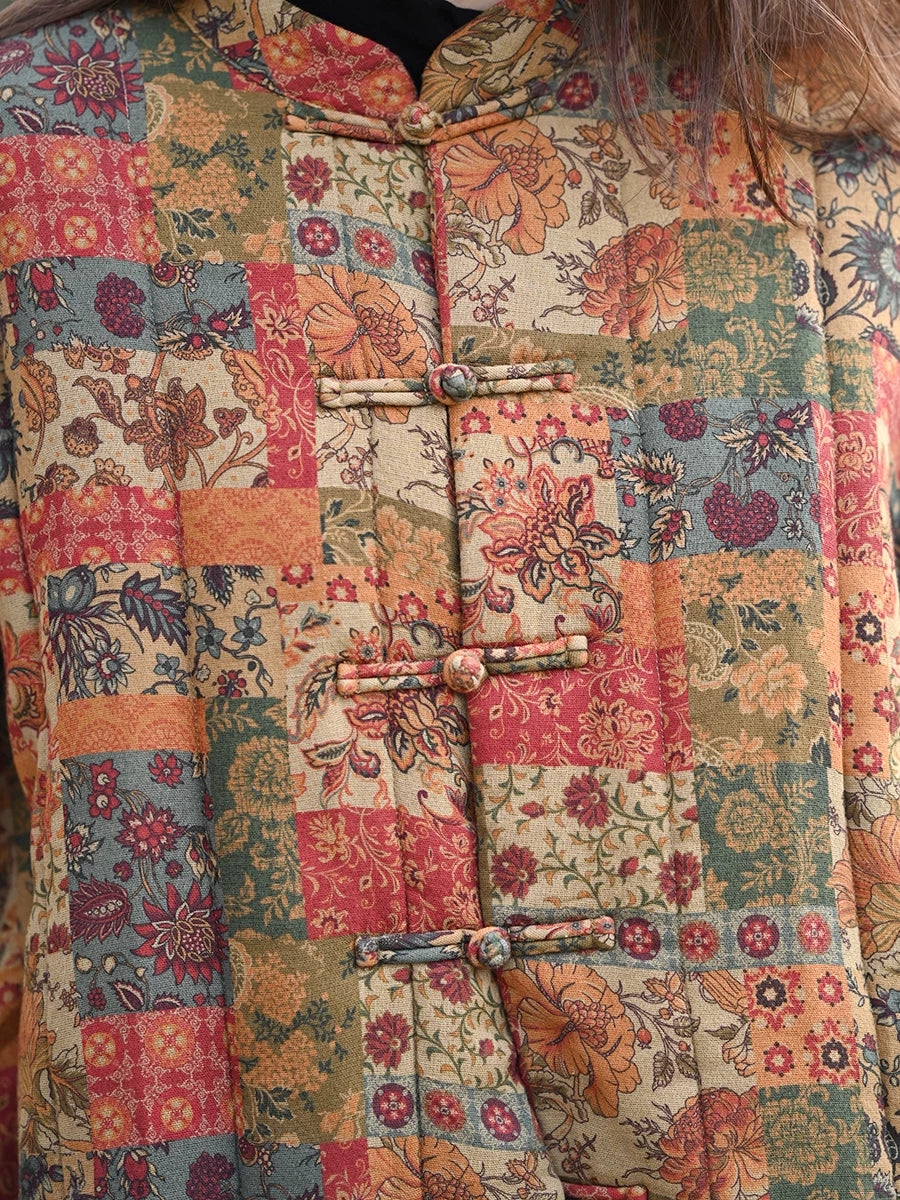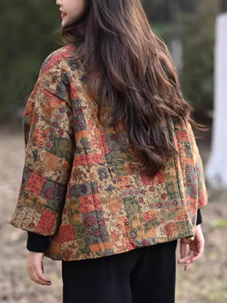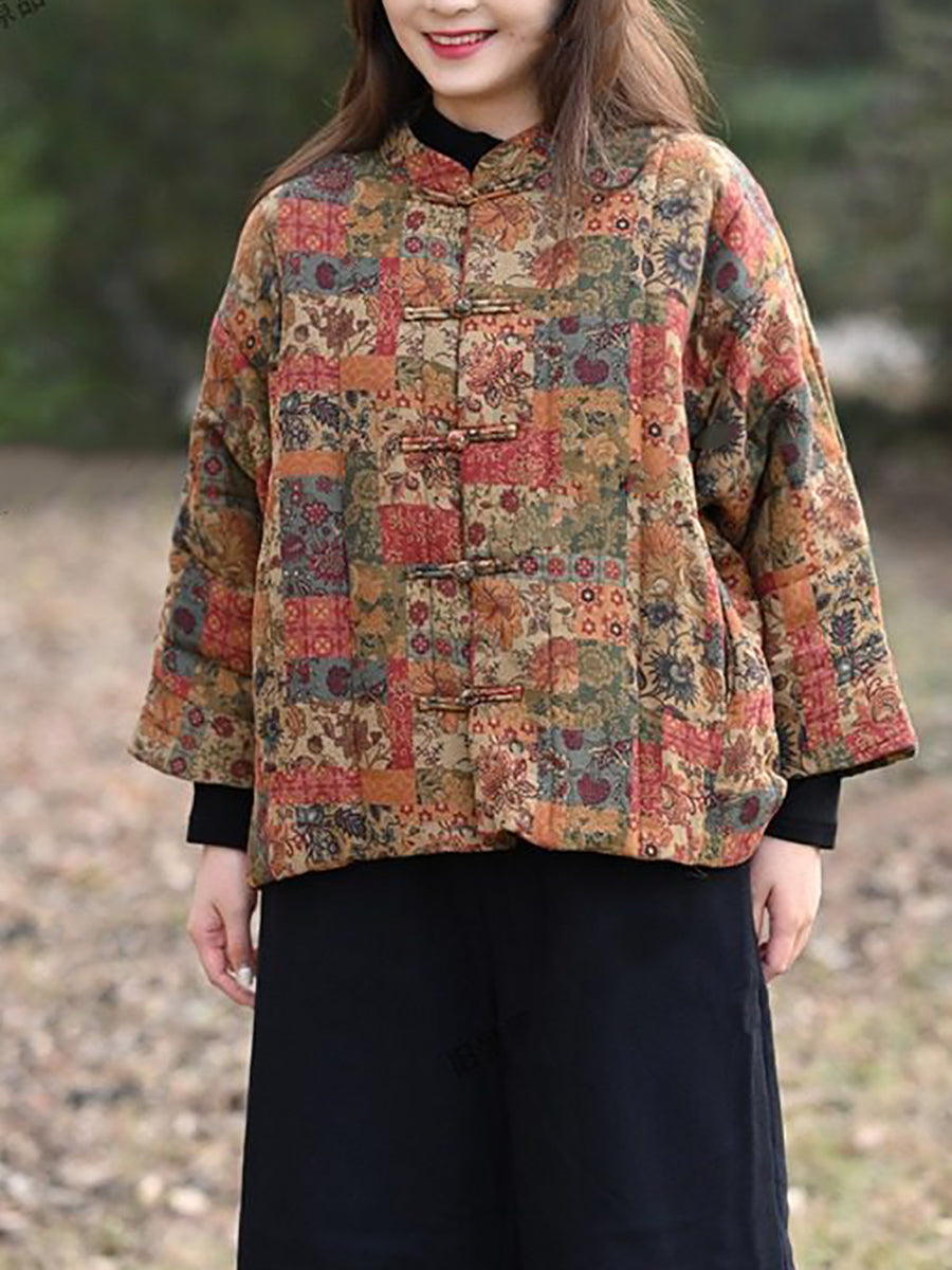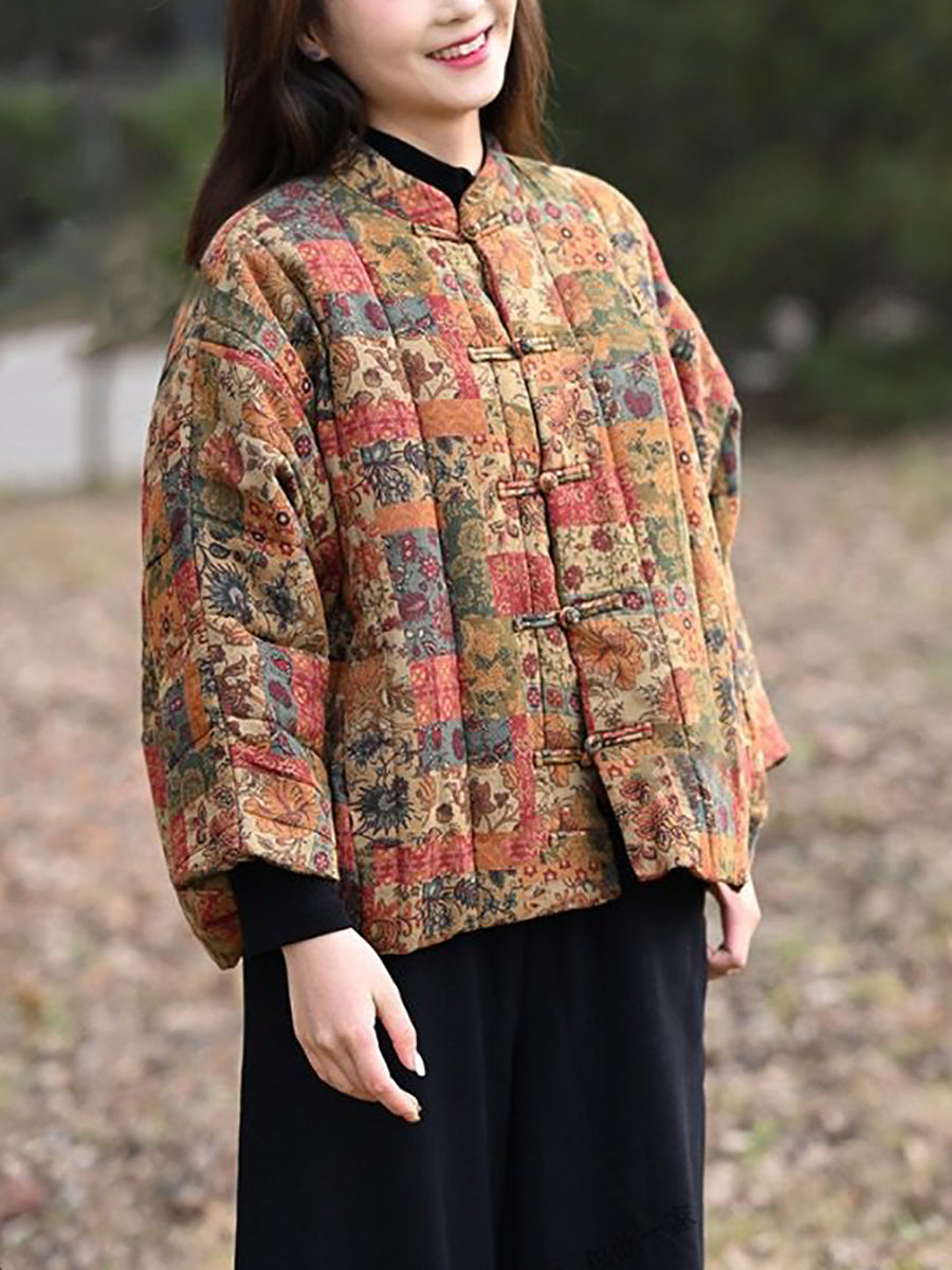 מעיל מרופד עם צווארון עומד וצווארון פרחוני לחורף לנשים