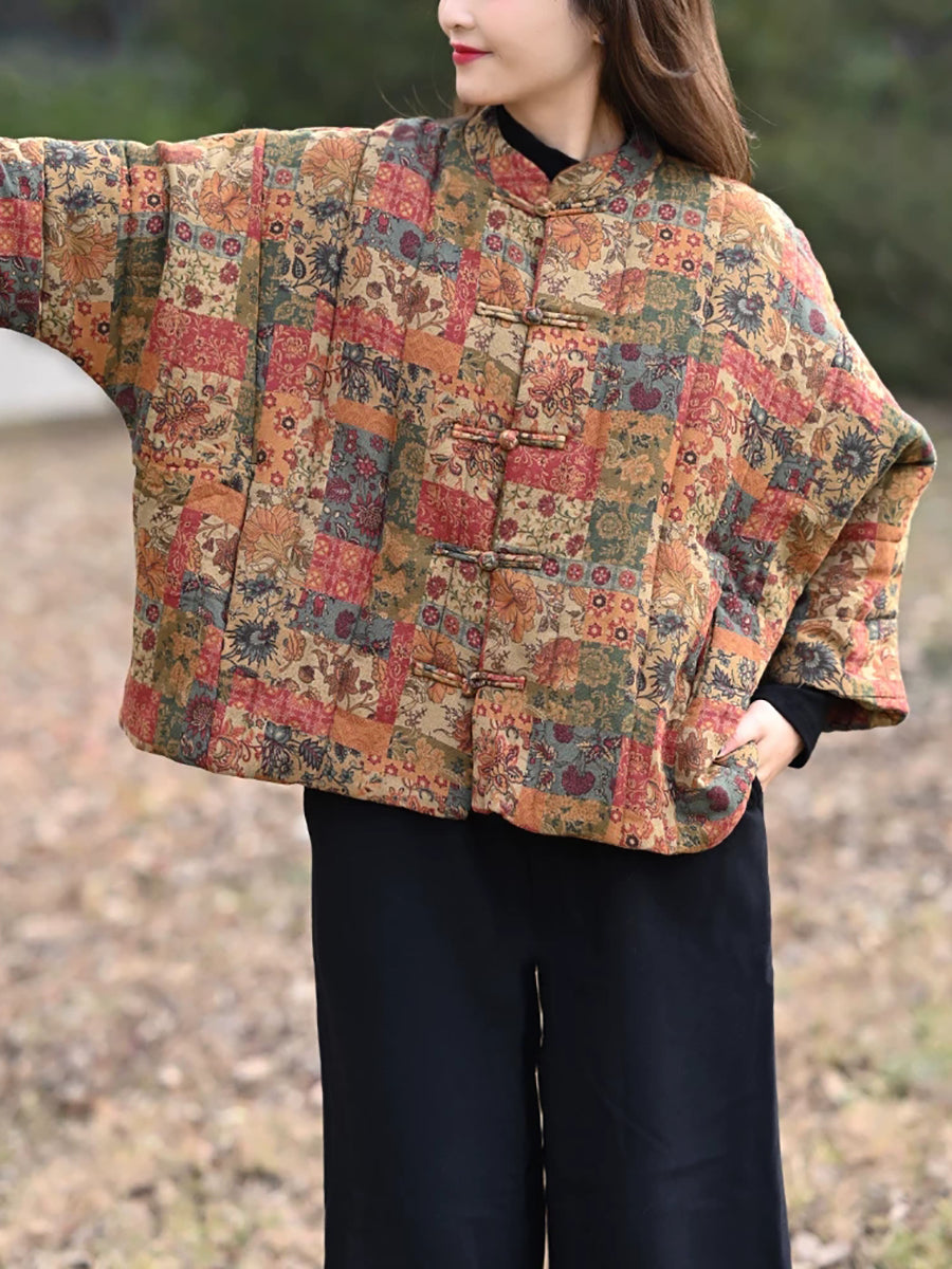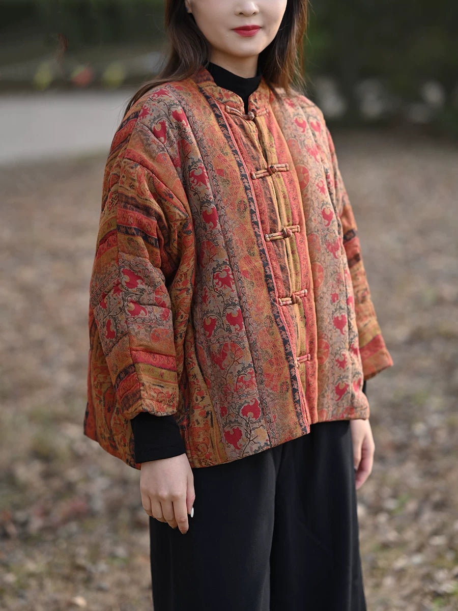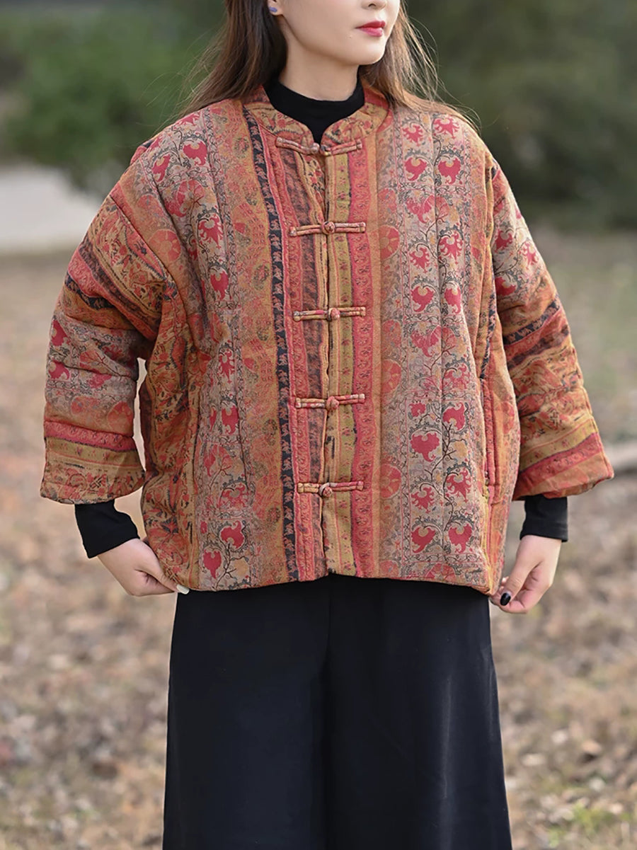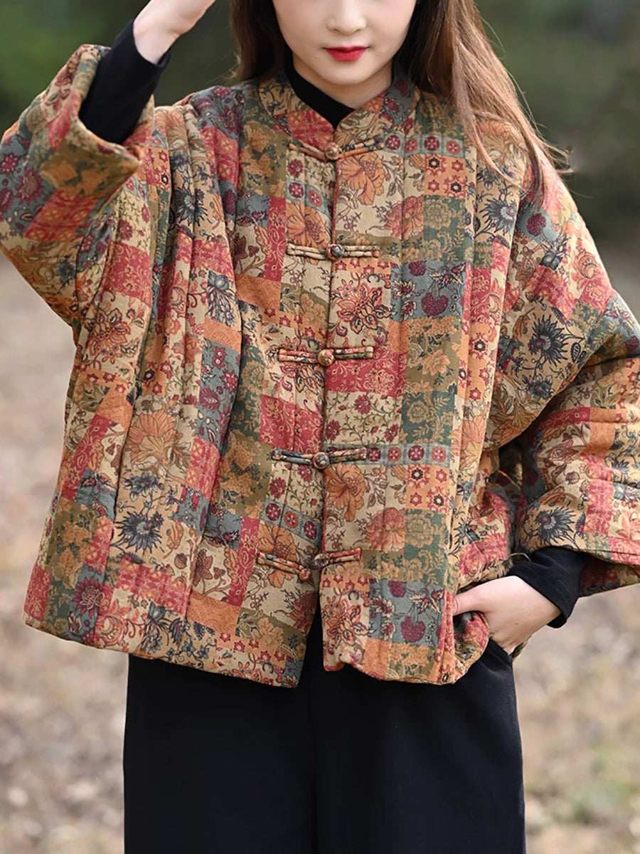 מעיל מרופד עם צווארון עומד וצווארון פרחוני לחורף לנשים