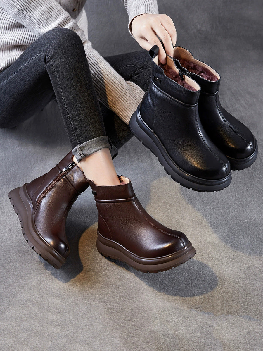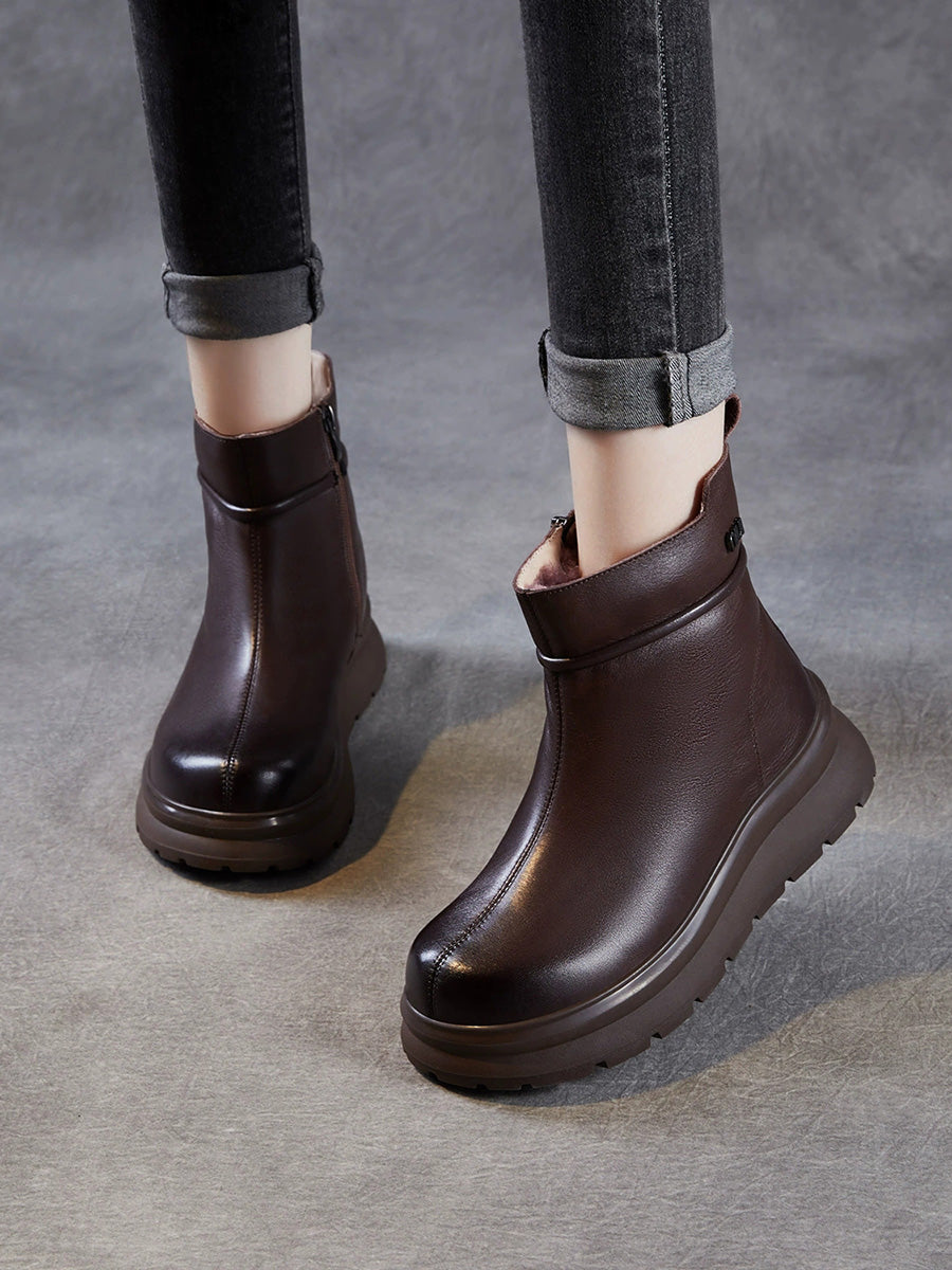 מגפי חורף מעור אמיתי עם בטנת פליז לנשים