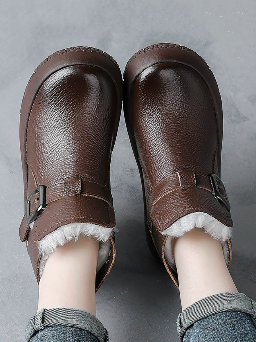 מגפי פלטפורמה מעור אמיתי לנשים בחורף