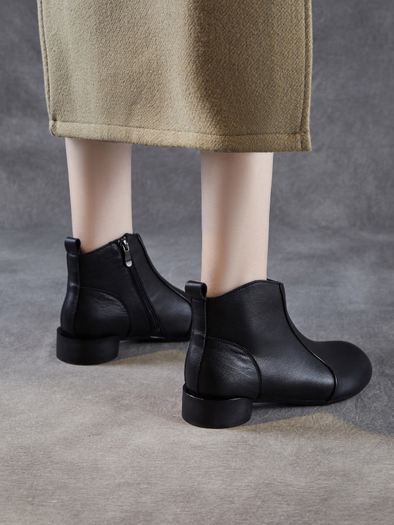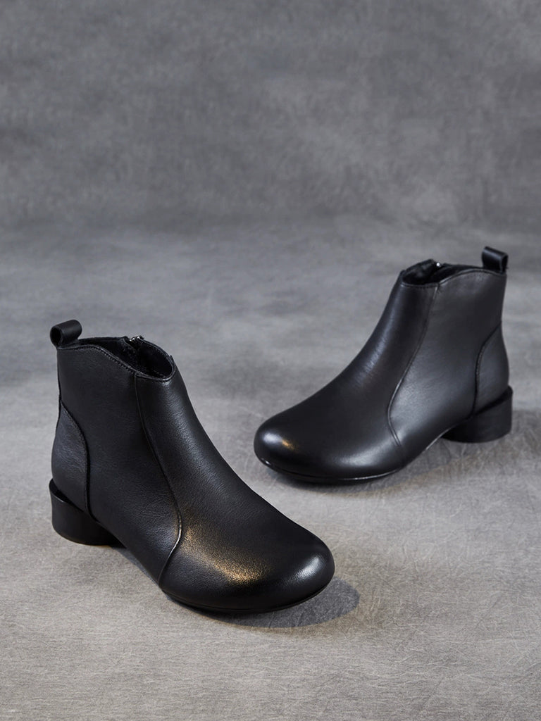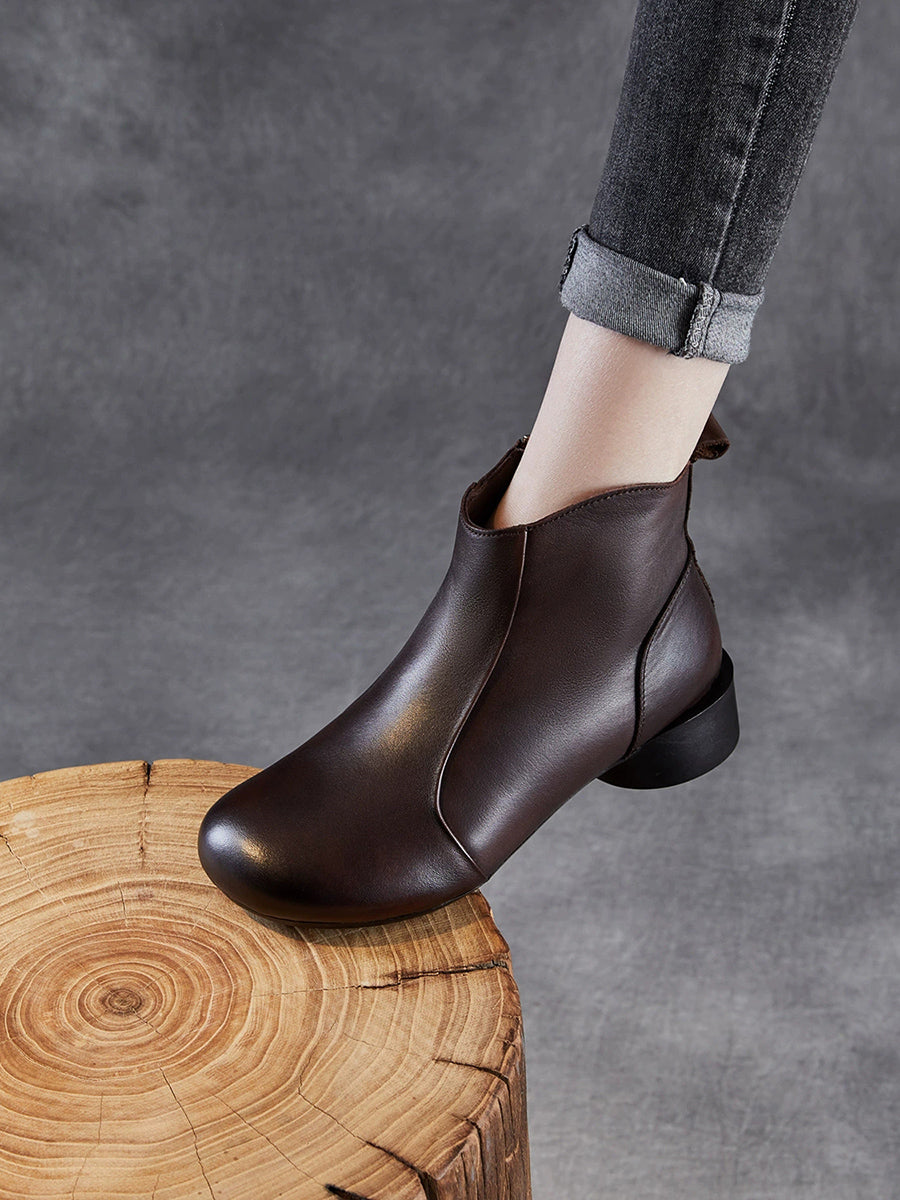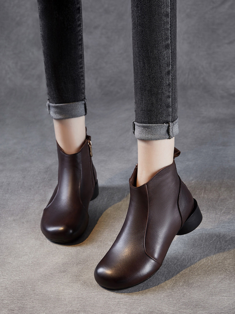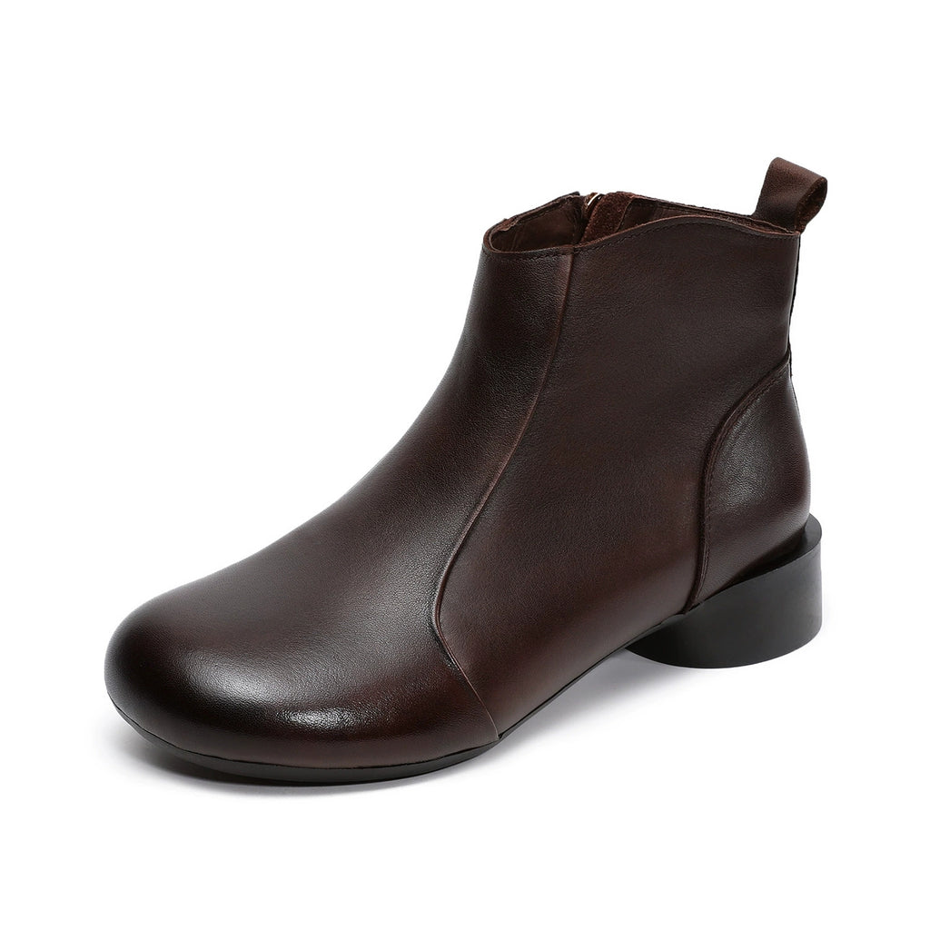 מגפי קרסול עם עקב נמוך מעור אמיתי לחורף לנשים