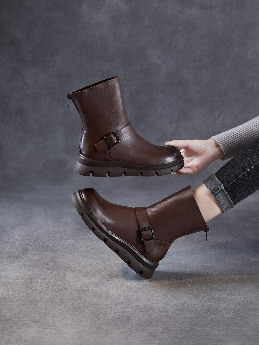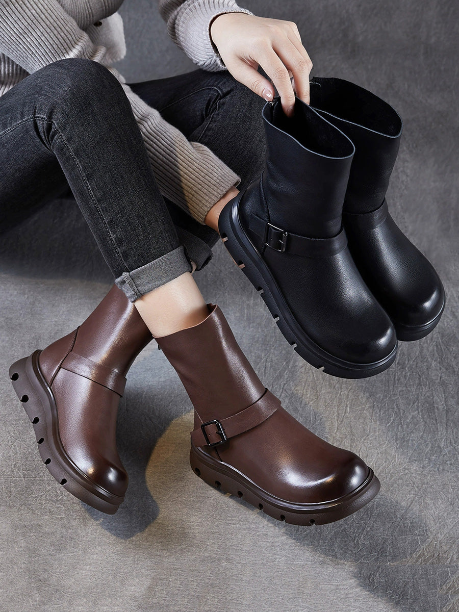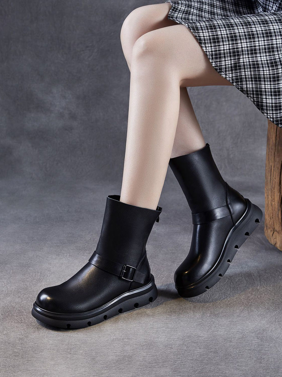 מגפי מרטין מעור אמיתי עד אמצע השוק לנשים בחורף