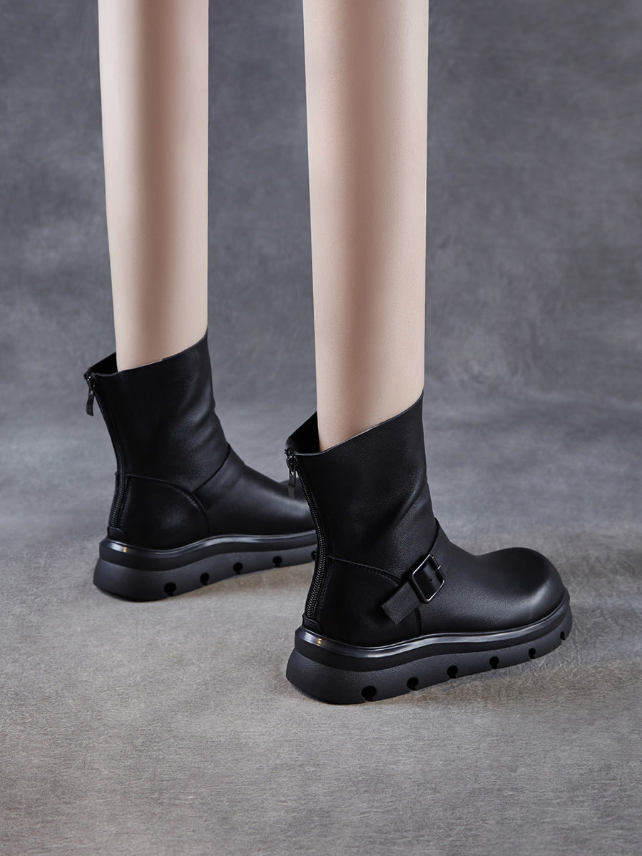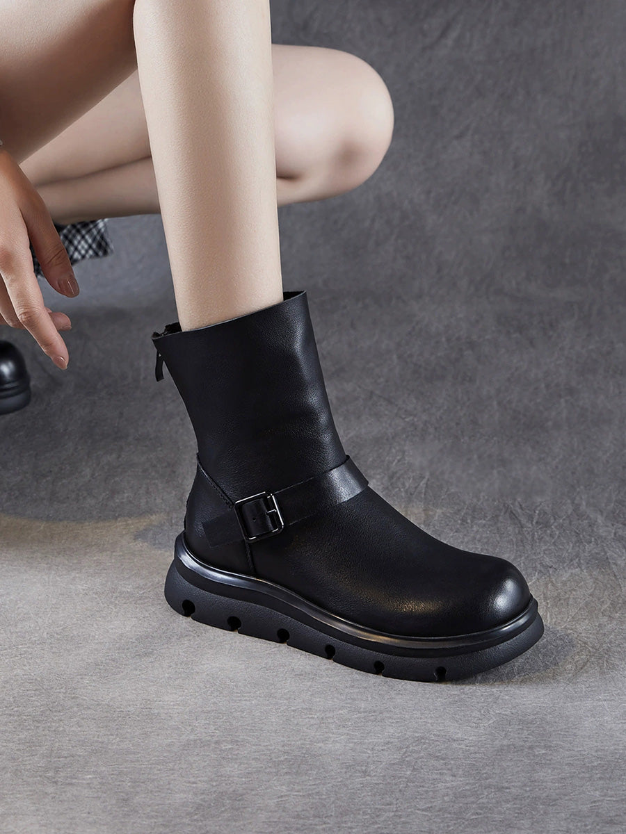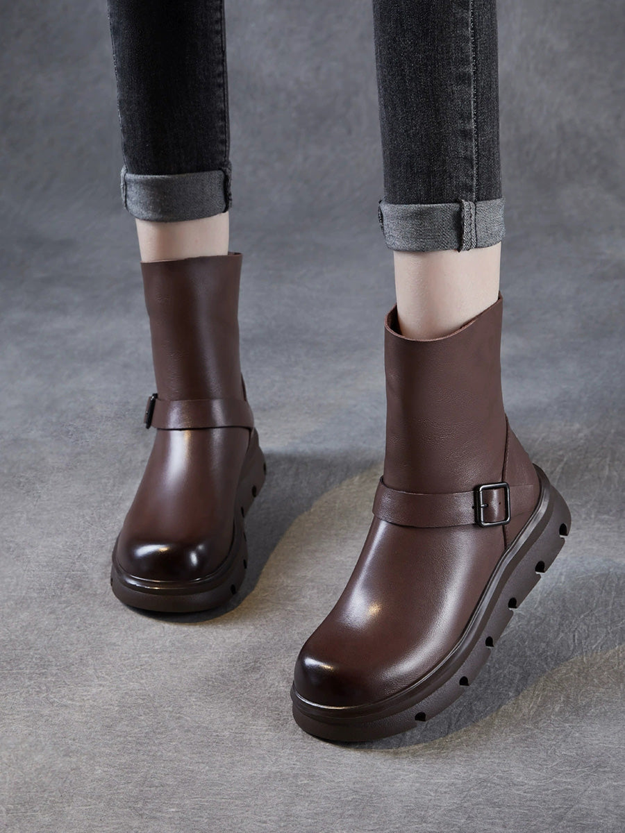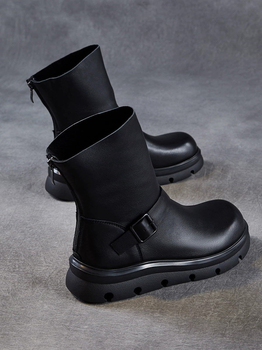 מגפי מרטין מעור אמיתי עד אמצע השוק לנשים בחורף