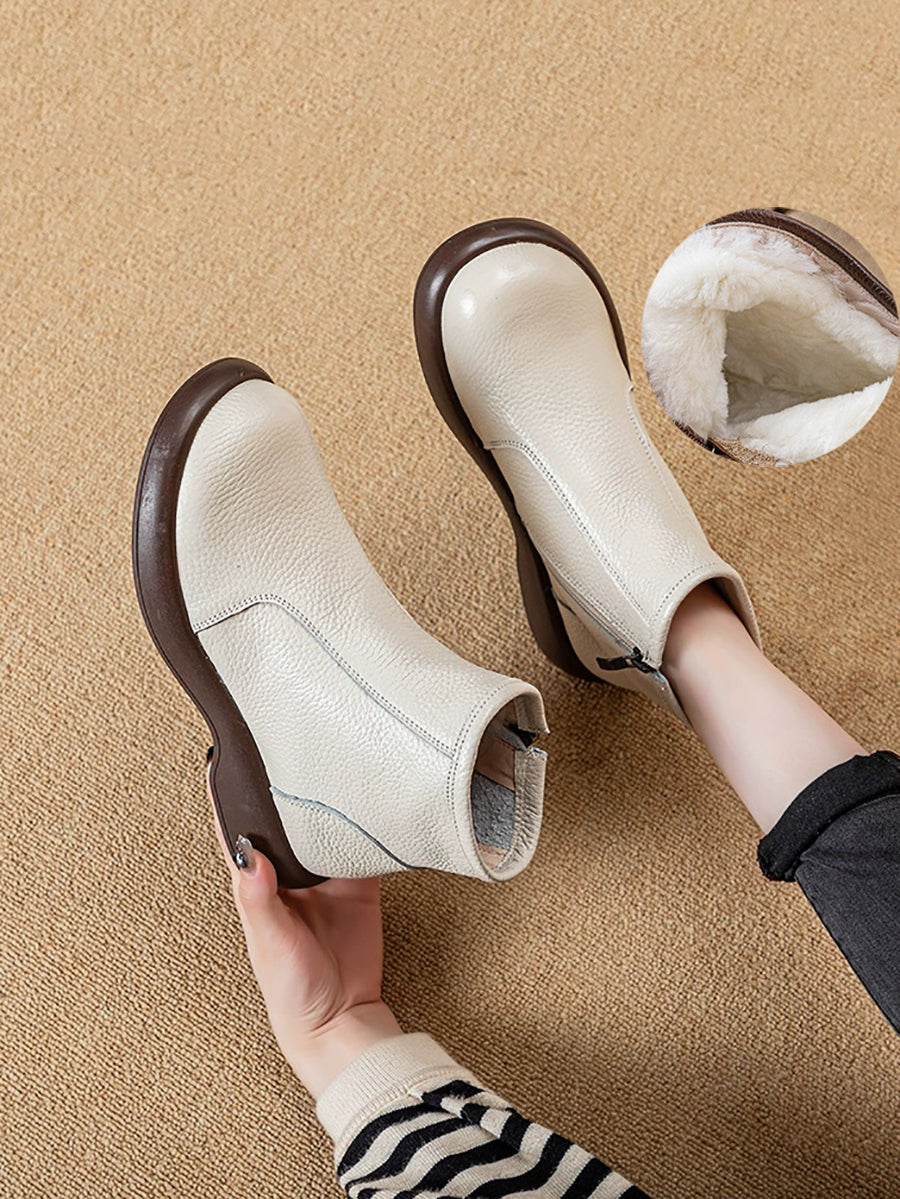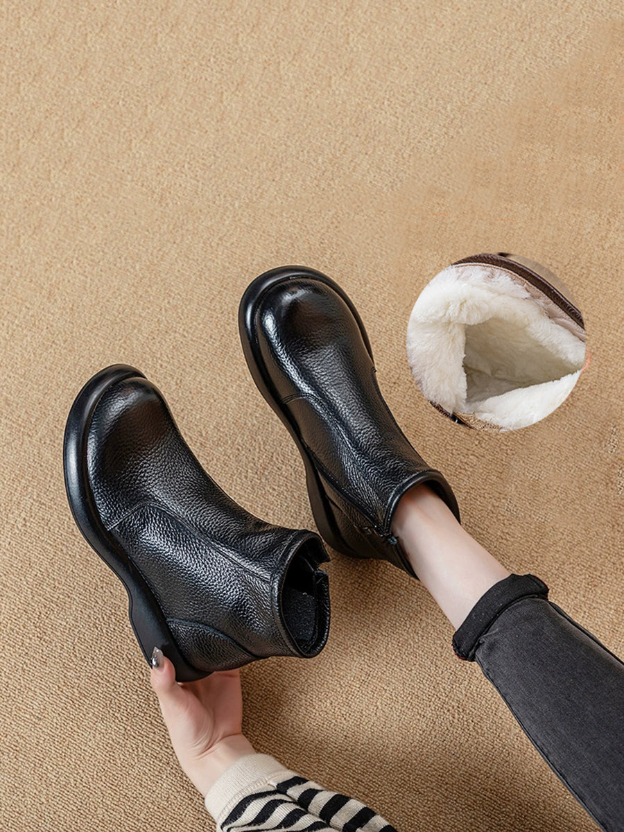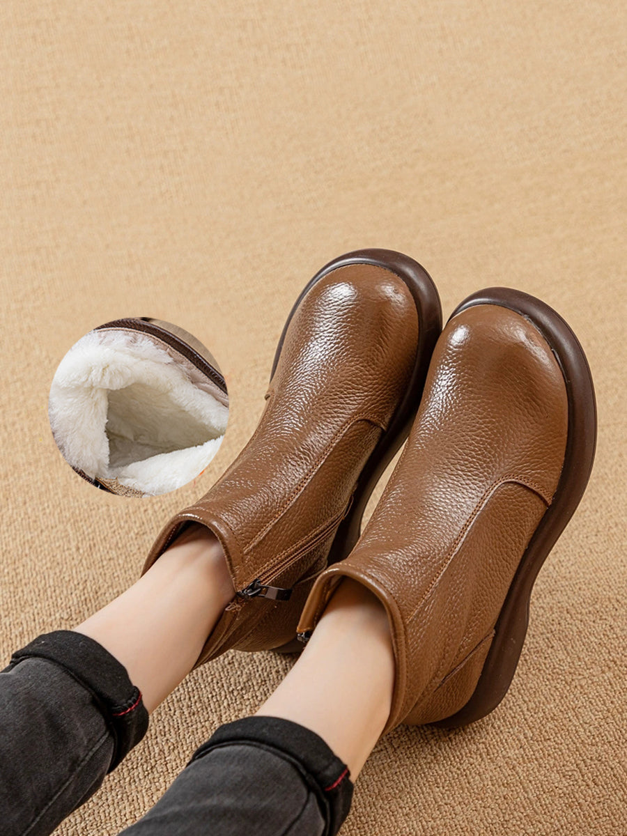 מגפי חורף מעור אמיתי עם בטנת צמר לנשים