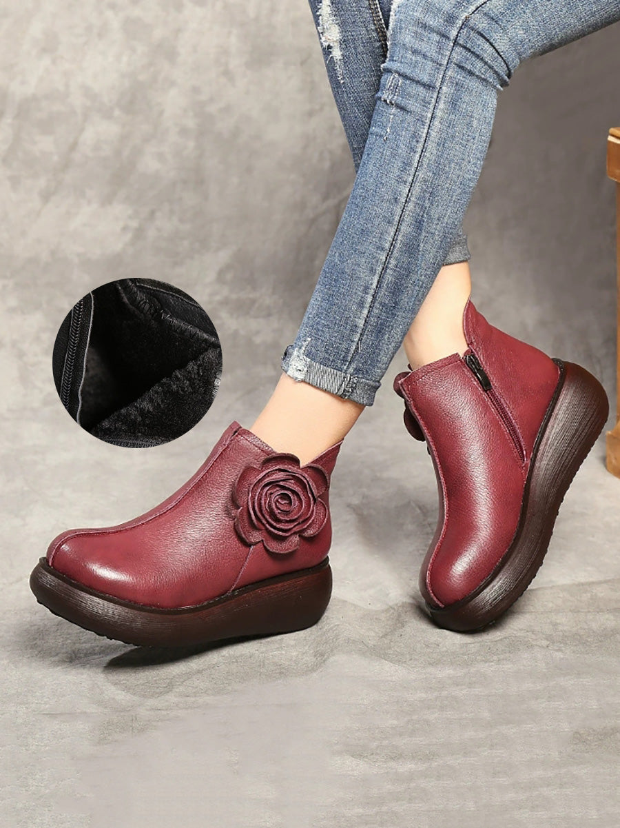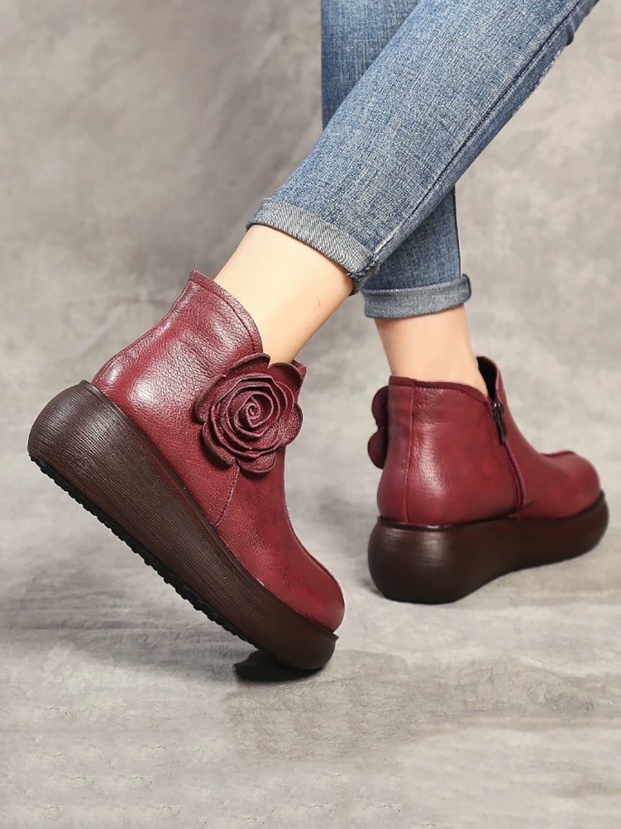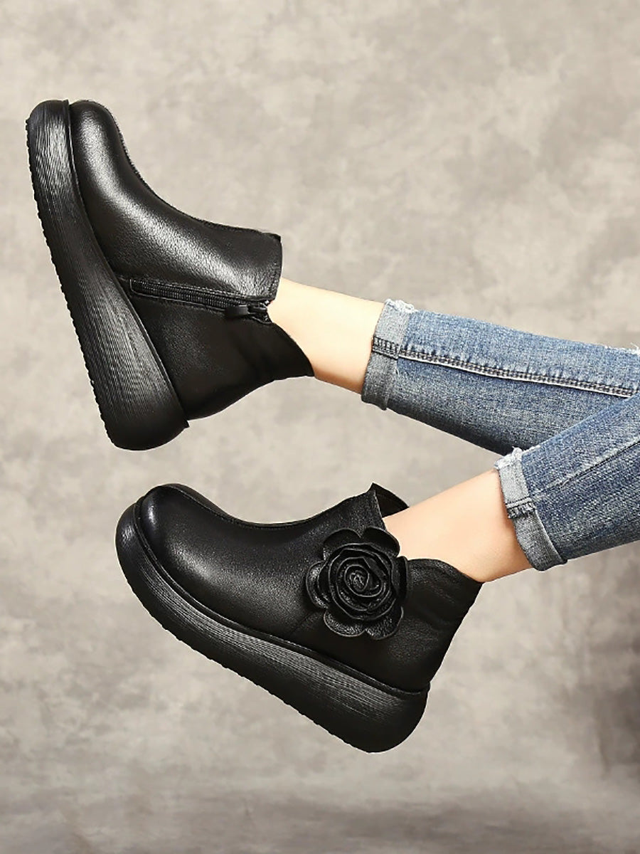 מגפי קרסול פלטפורמה מעור לנשים בחורף