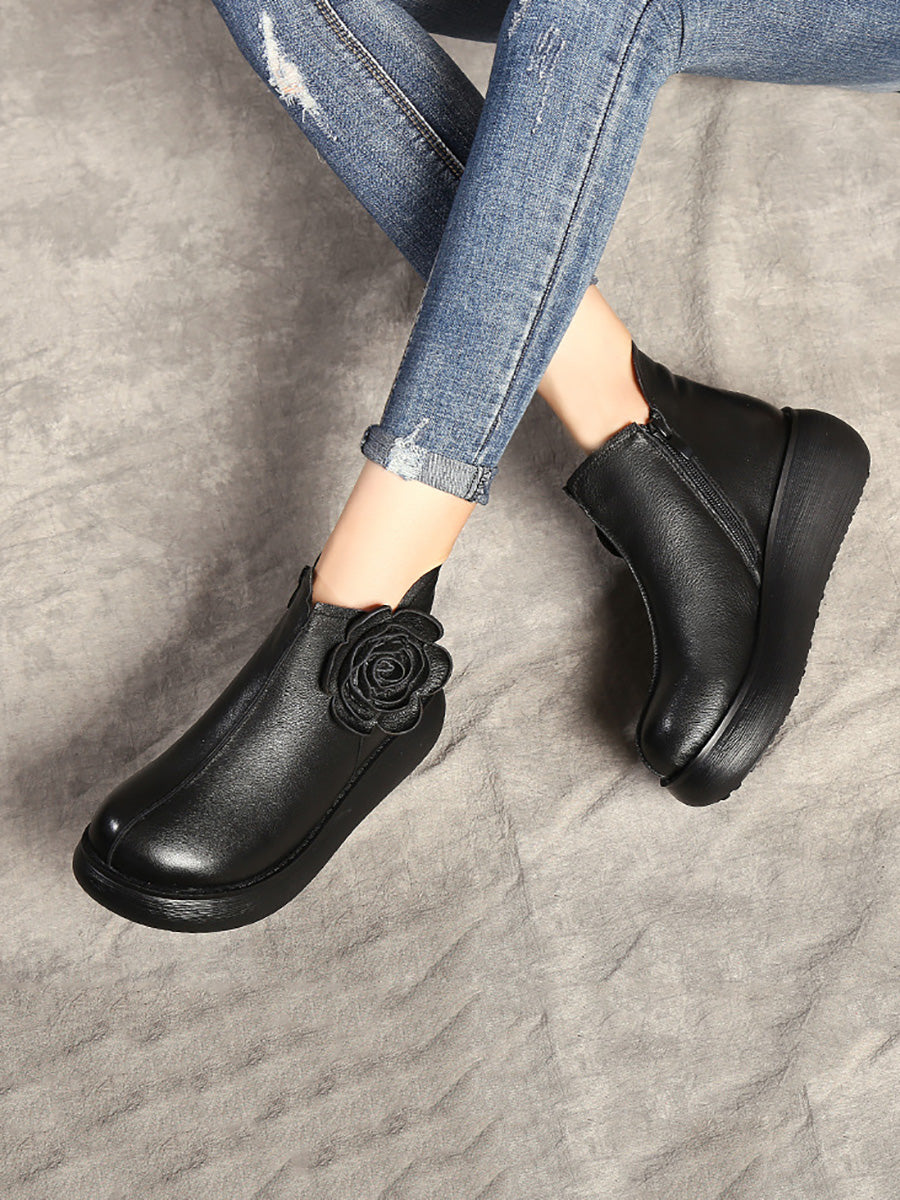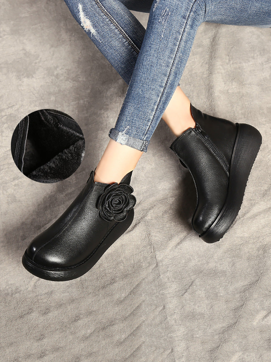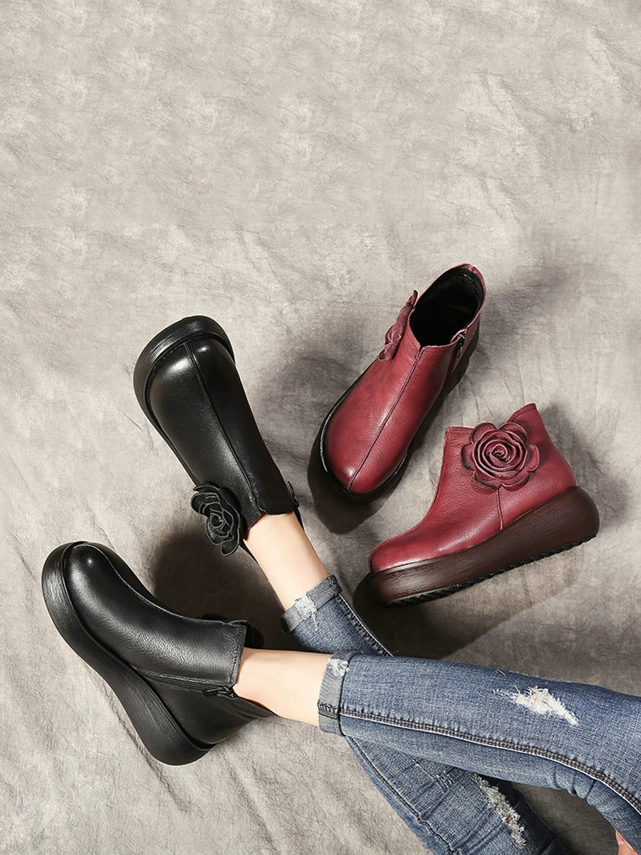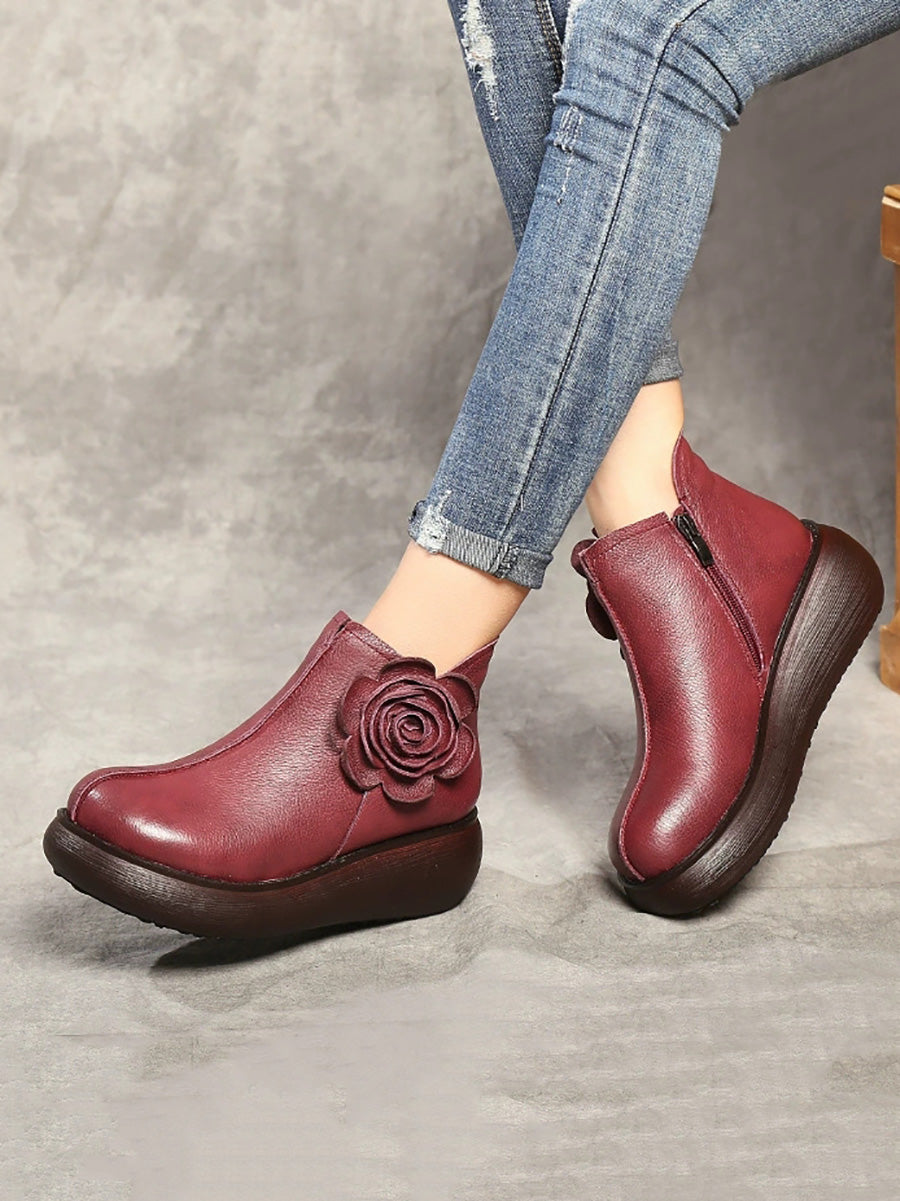 מגפי קרסול פלטפורמה מעור לנשים בחורף
