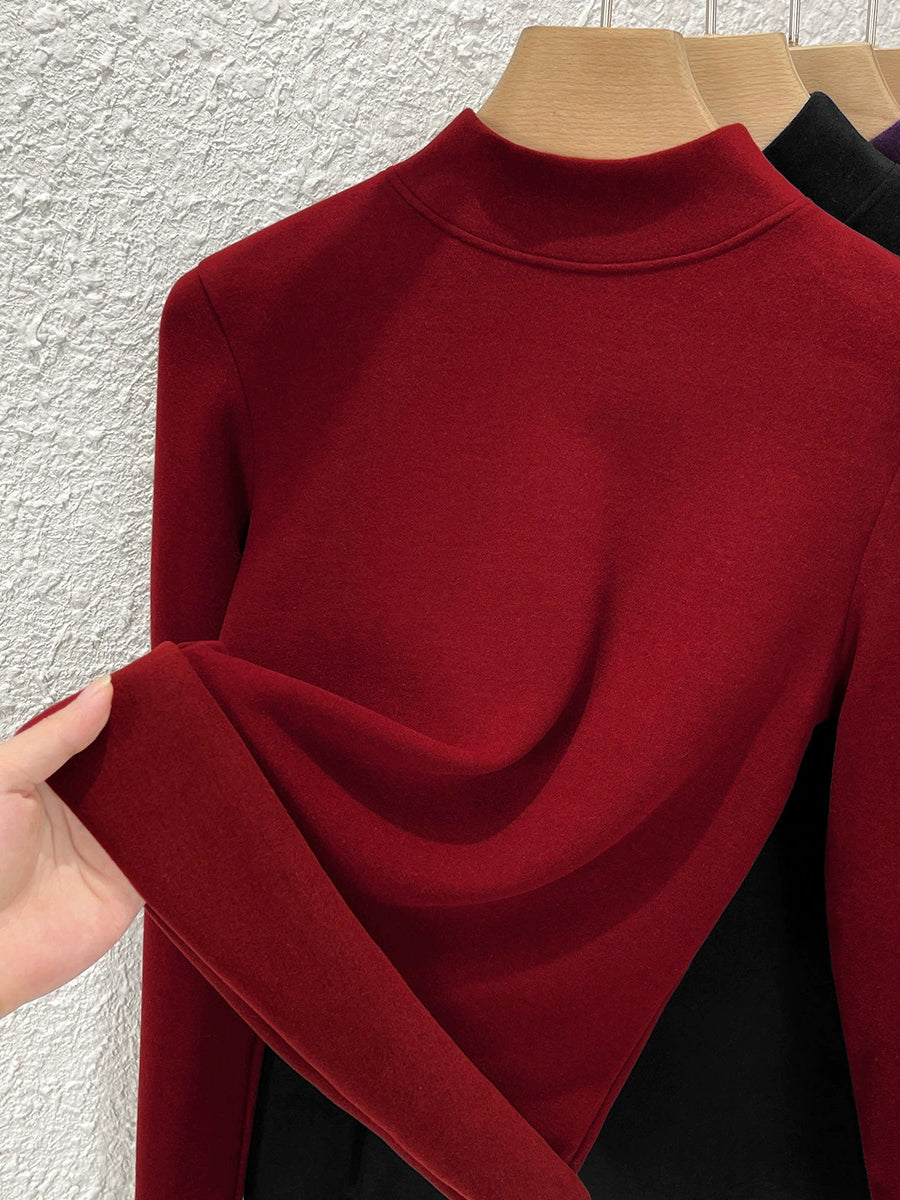 חולצה חצי גולף בצבע טהור לחורף לנשים