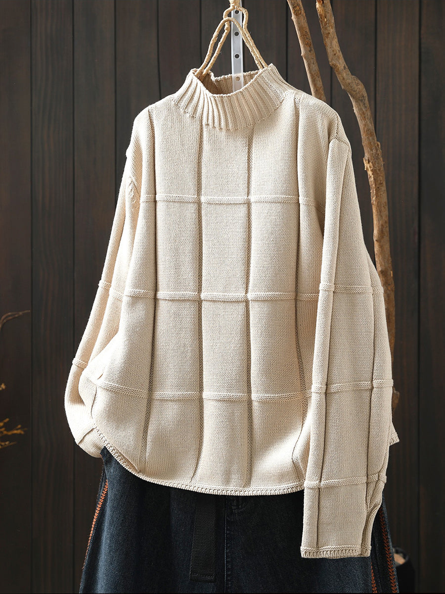 סוודר סרוג חצי גולף בצבע טהור לנשים בחורף