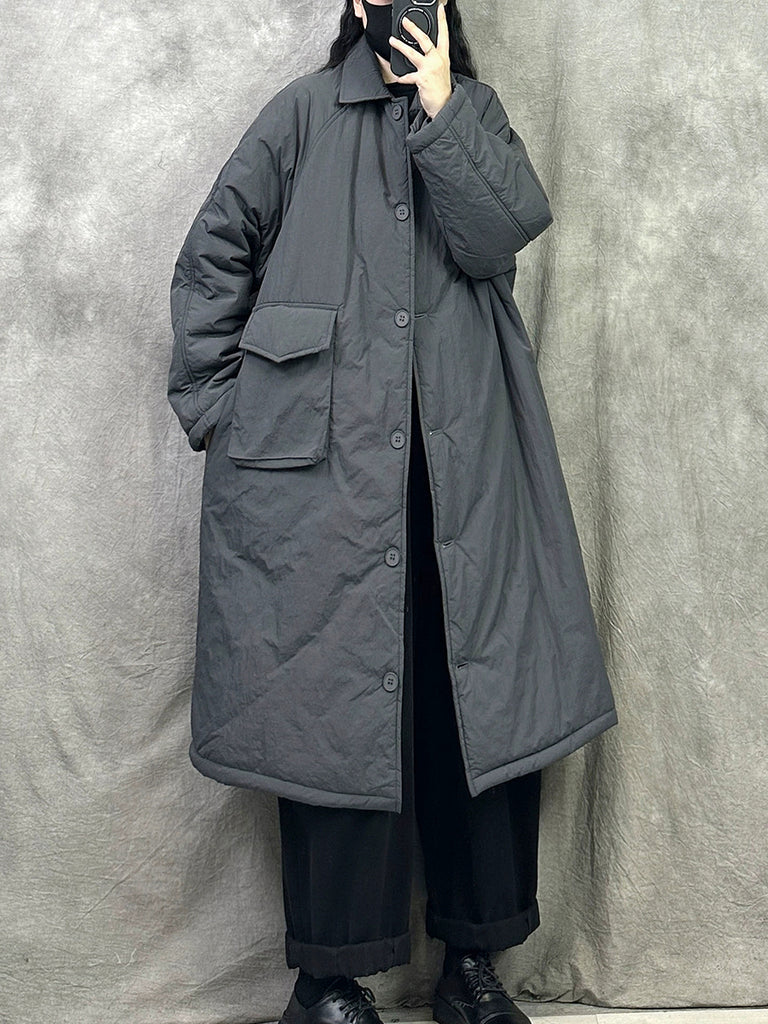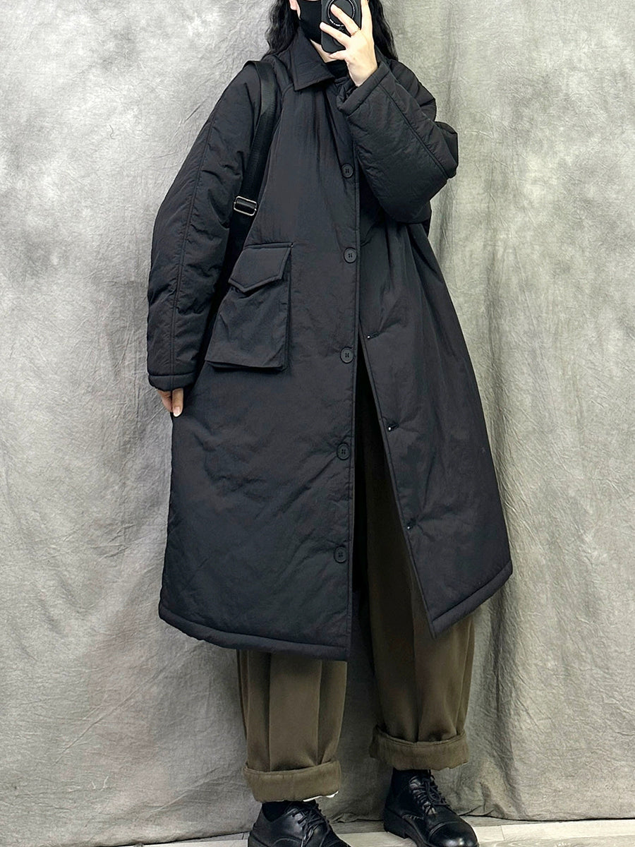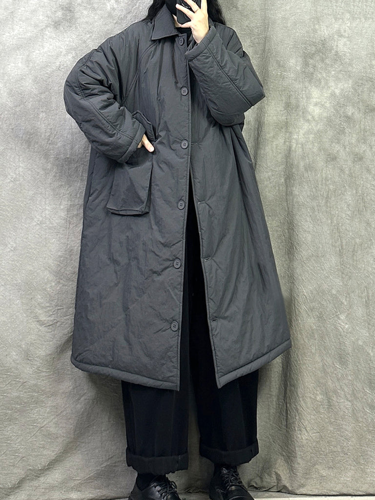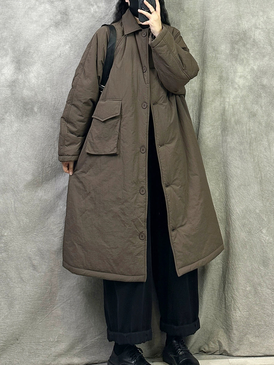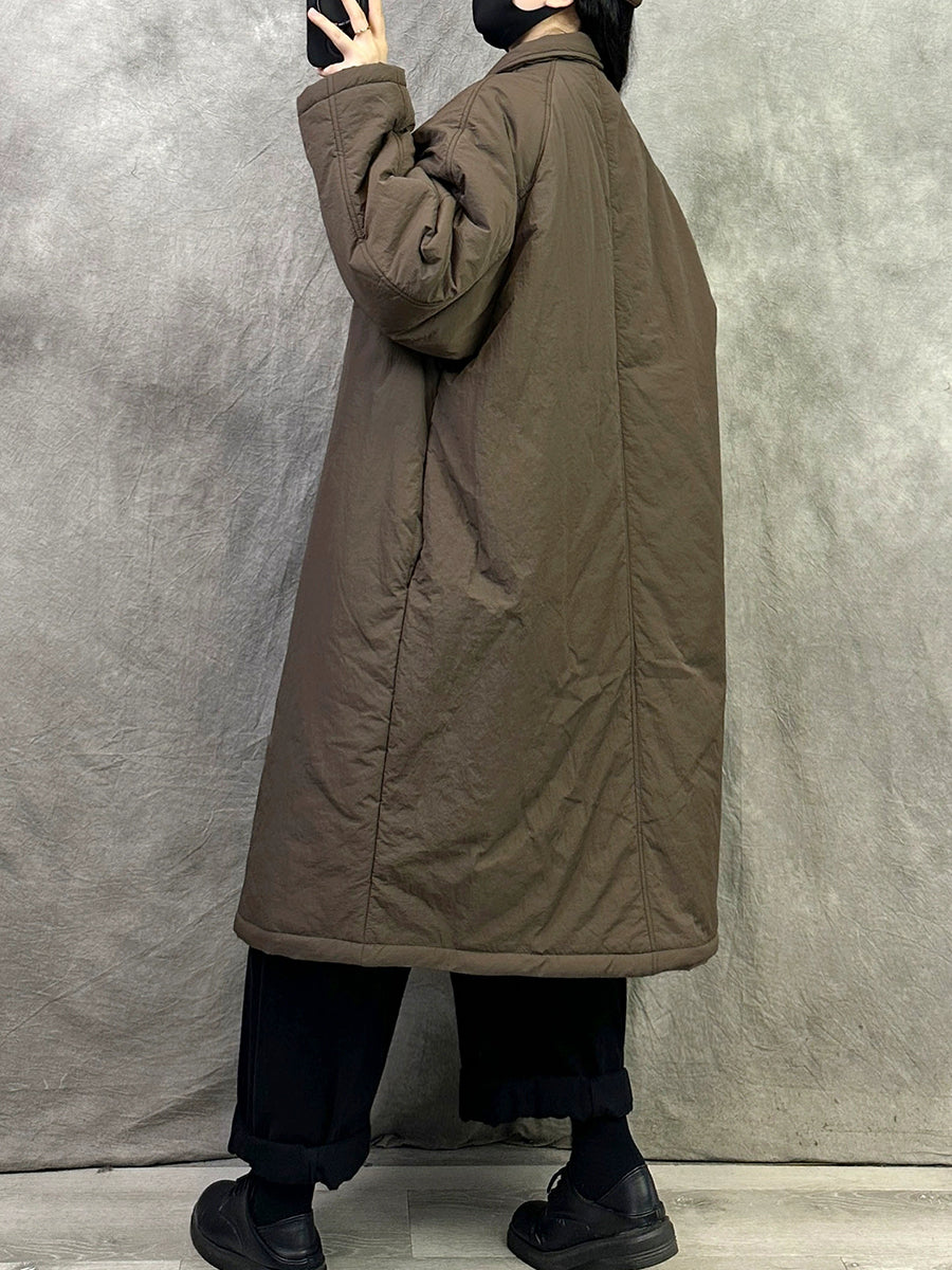 מעיל מרופד ארוך בצבע טהור לחורף לנשים
