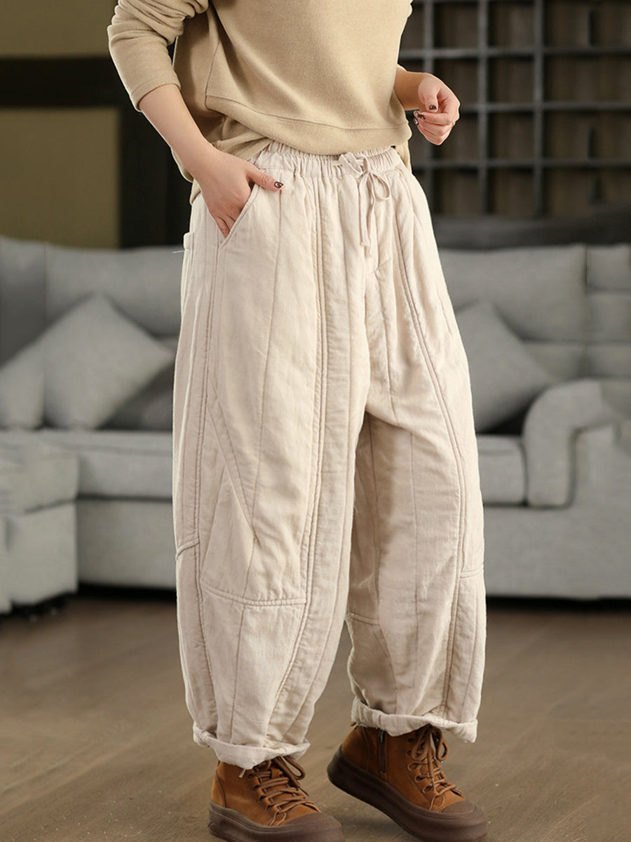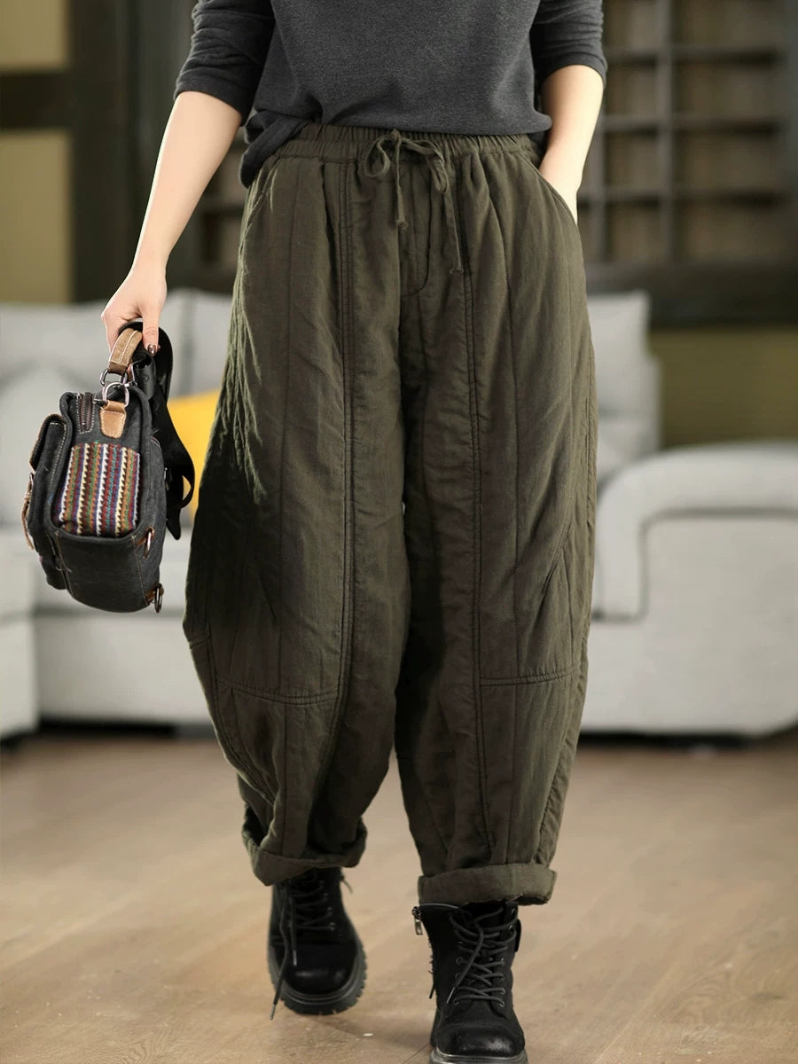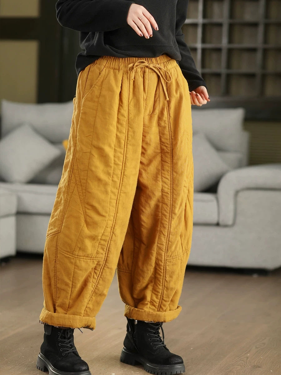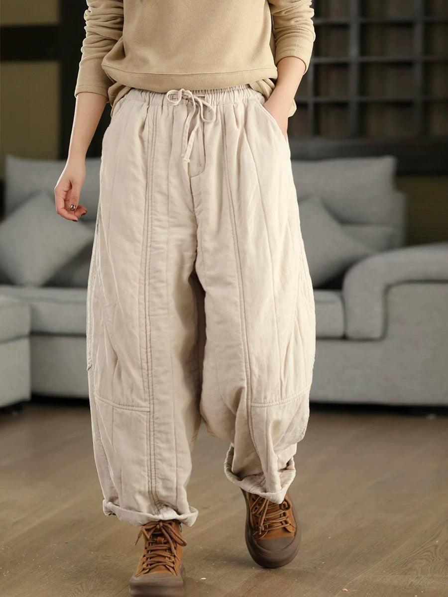 מכנסי הרמון מרופדים 100% פשתן לחורף לנשים