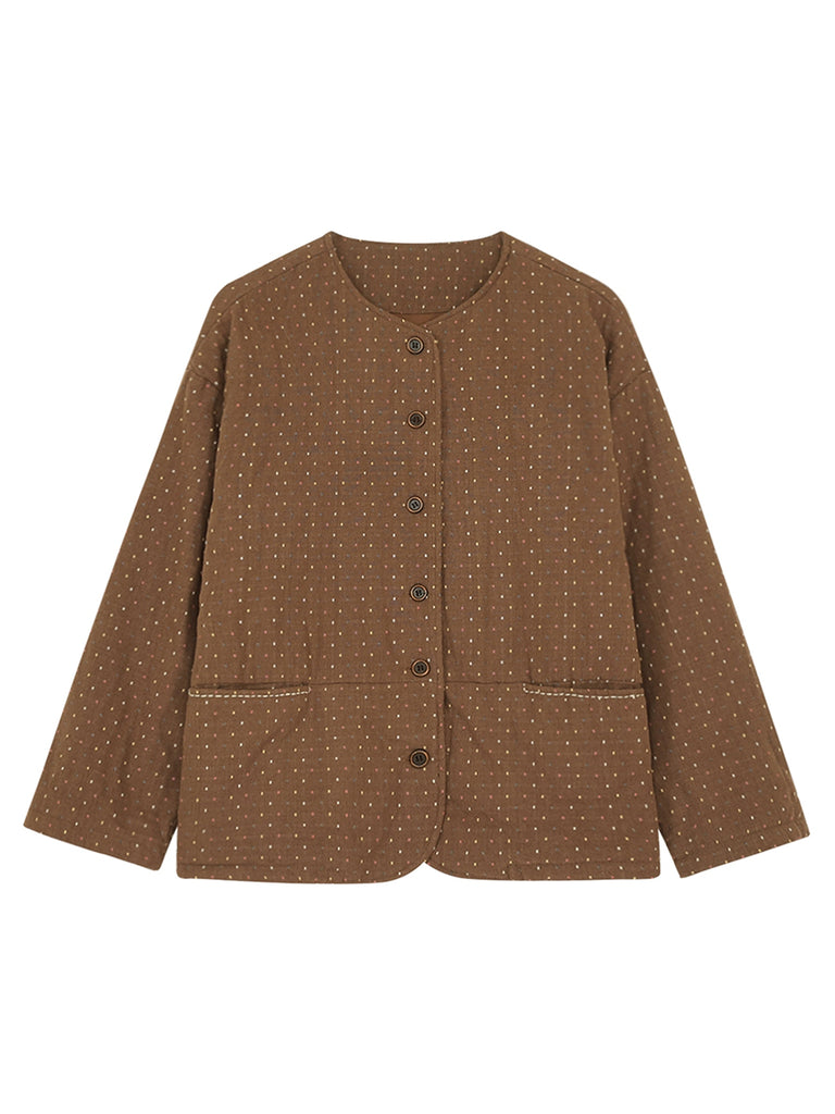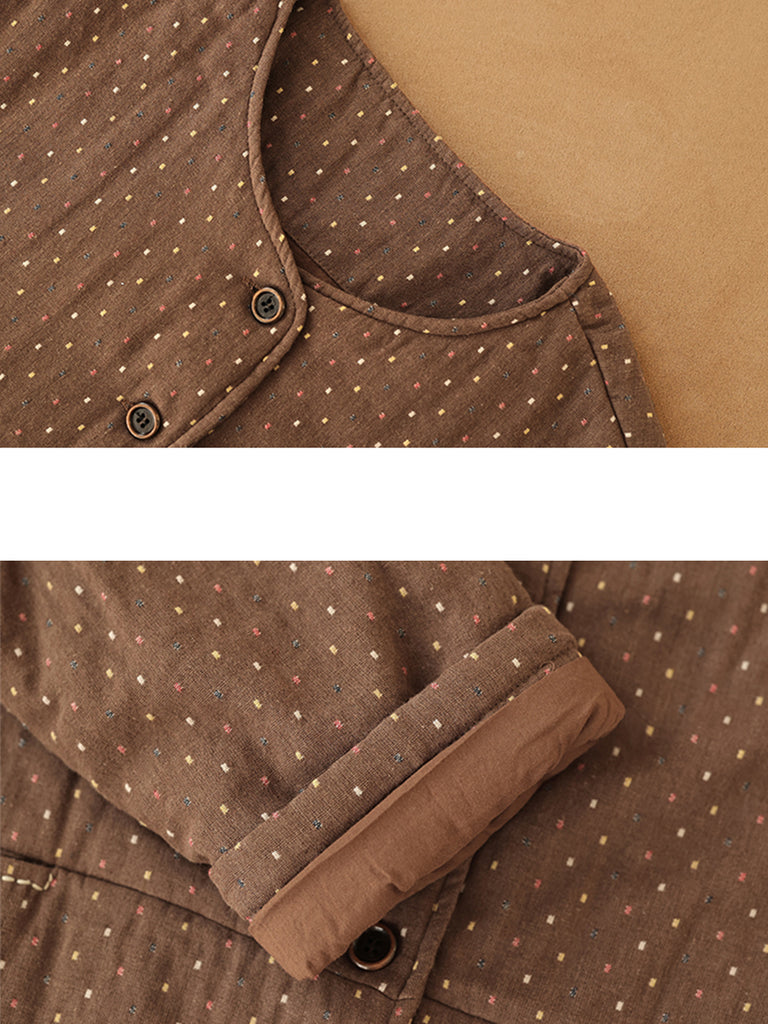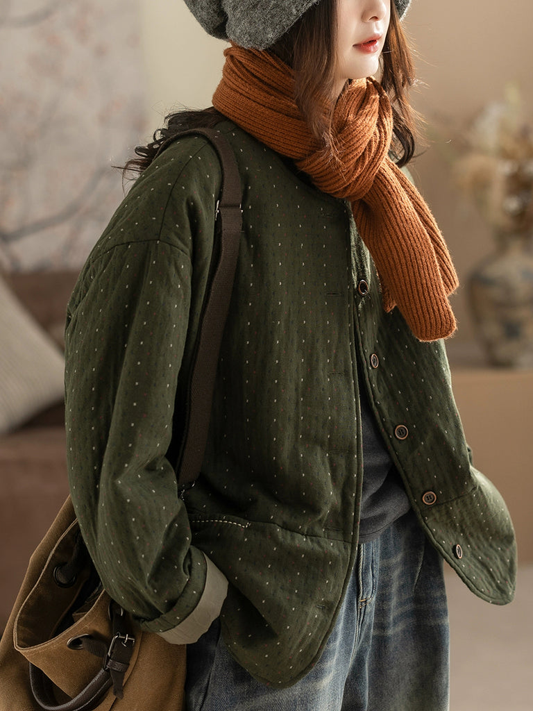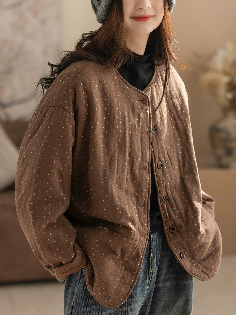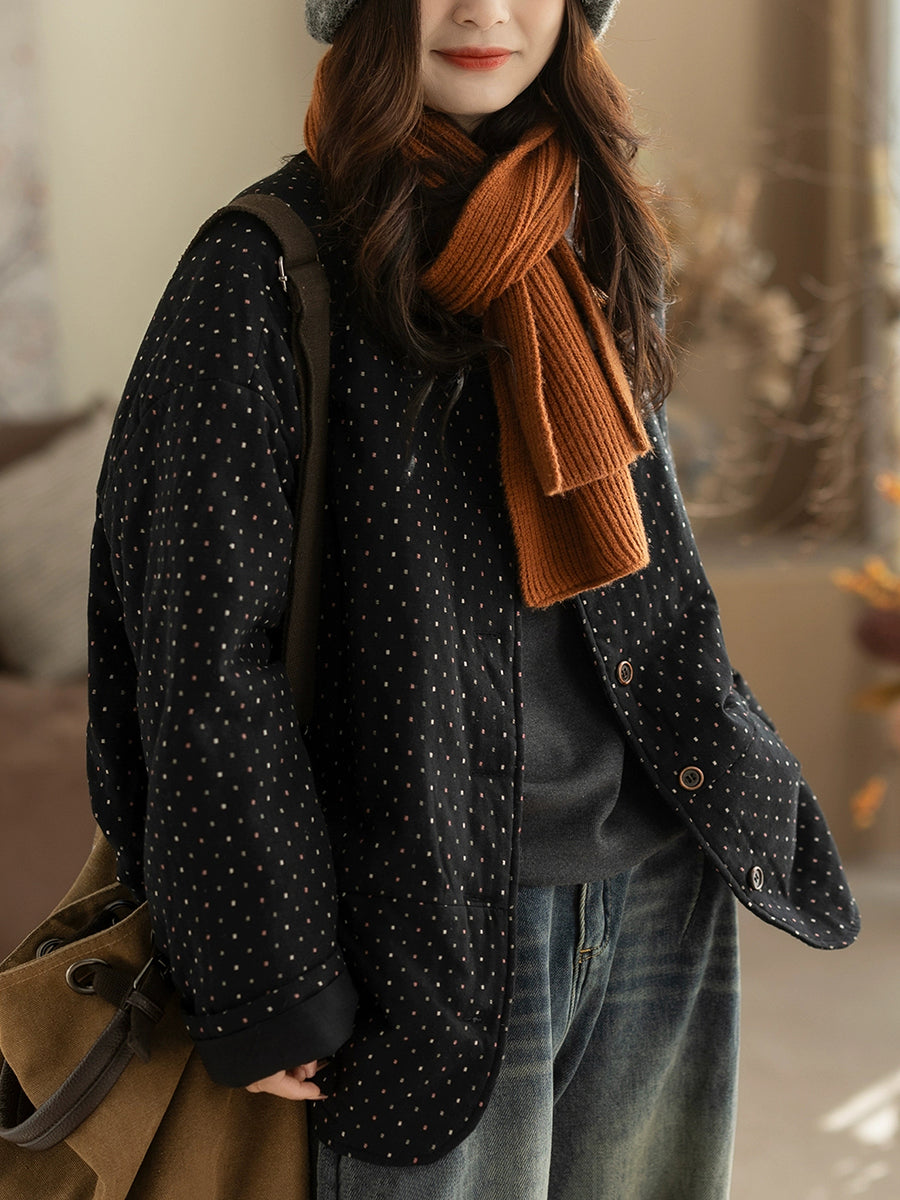 מעיל חורף מרופד עם צווארון O ונקודות רטרו לנשים