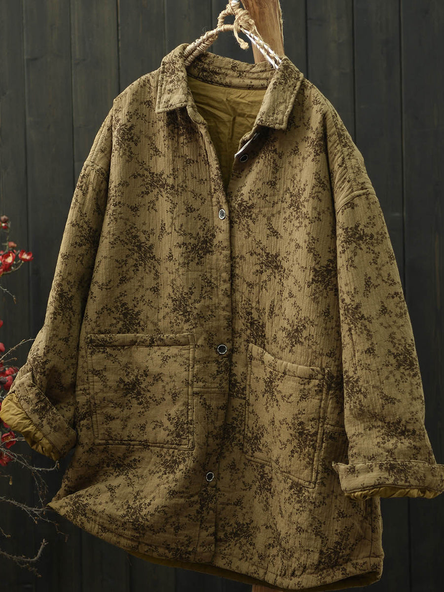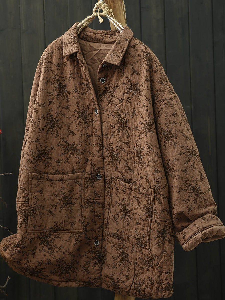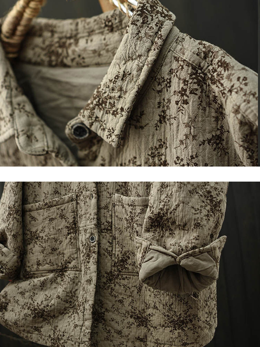מעיל חורף רטרו פרחוני מרופד כותנה לנשים