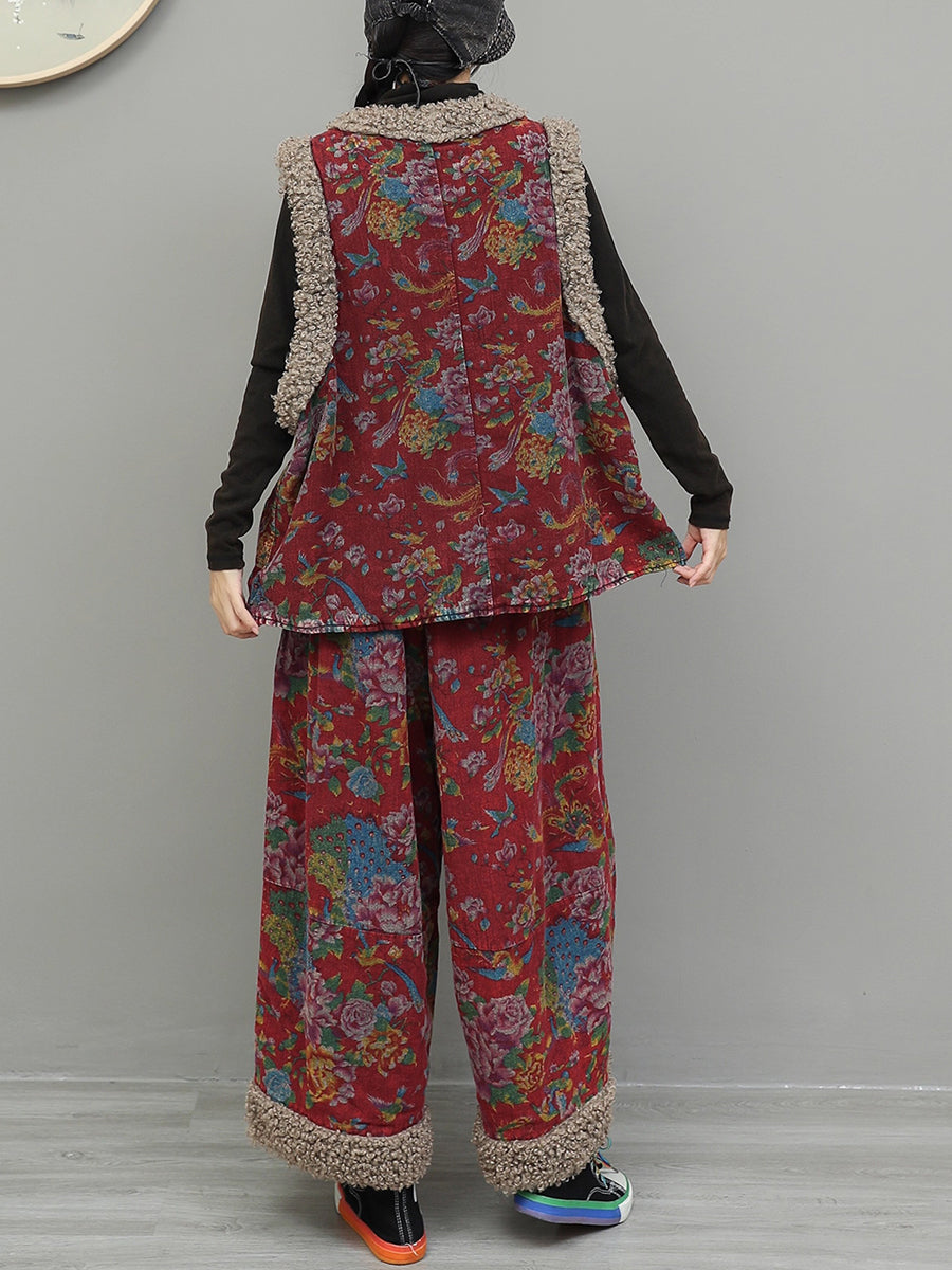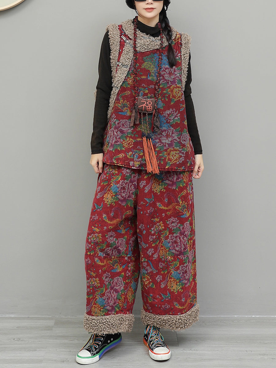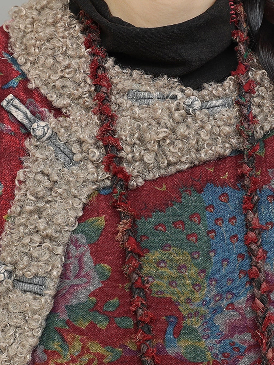 חליפות חורף מרופדות עם צווארון O וצווארון פשתן בסגנון רטרו עם פרחים לנשים