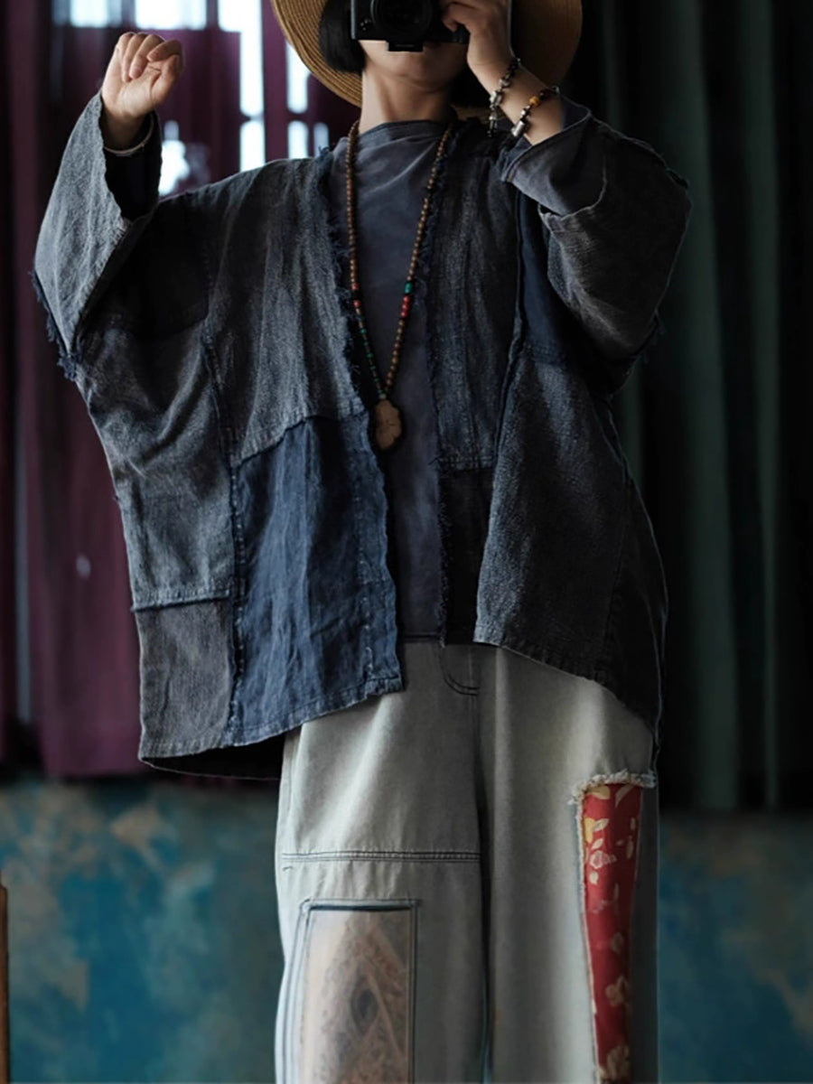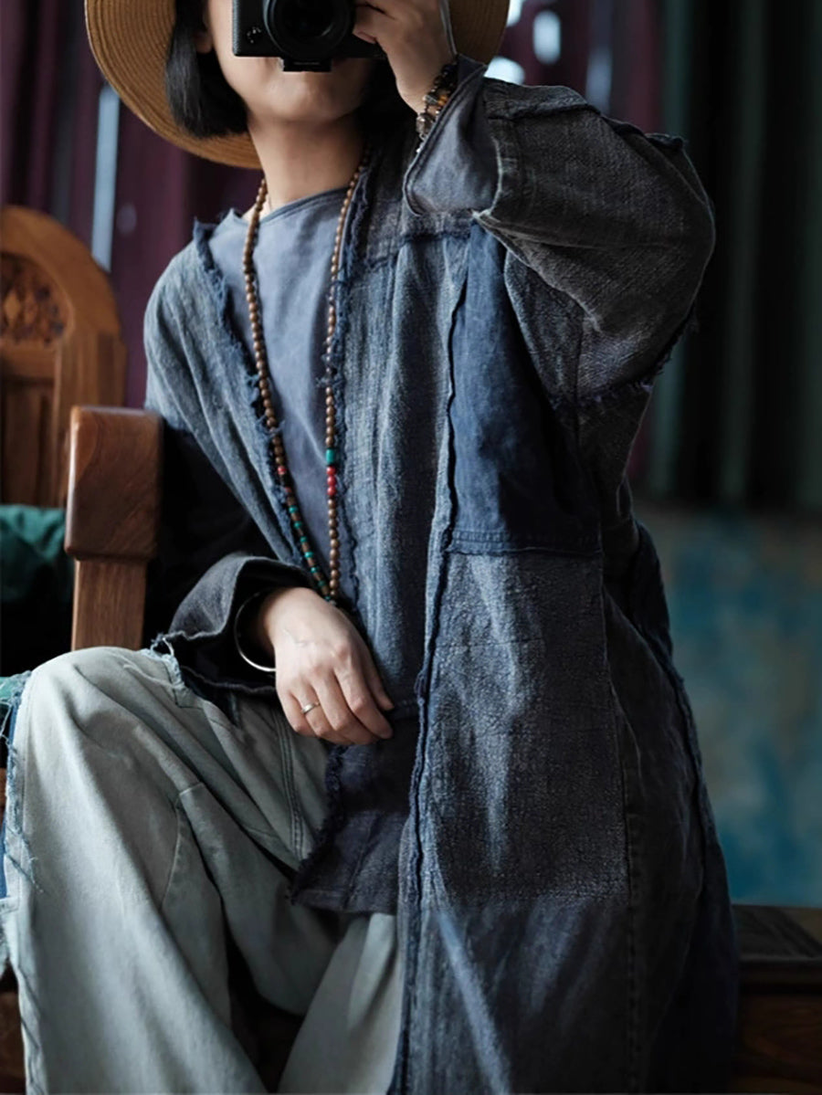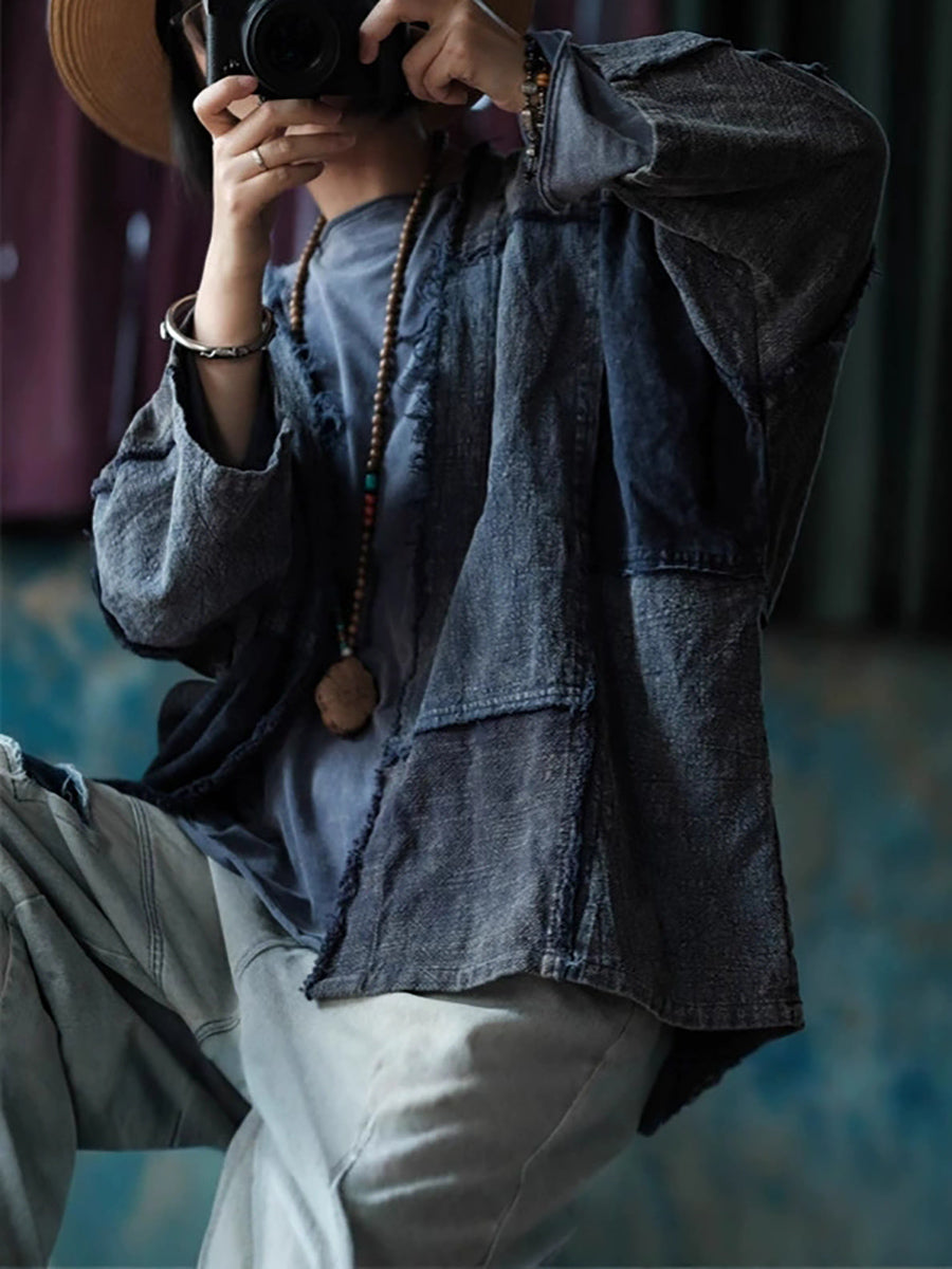 מעיל חולצה טלאים רטרו חורפי לנשים