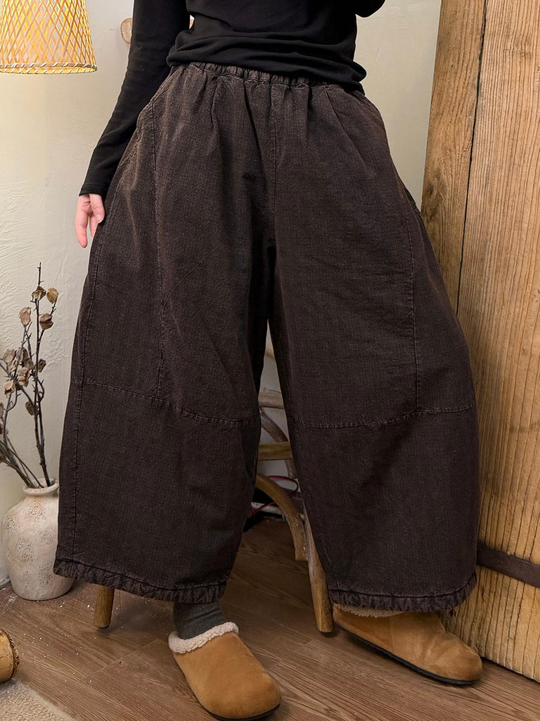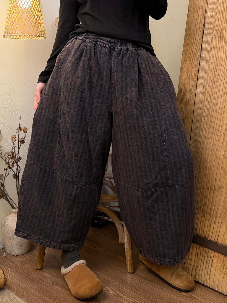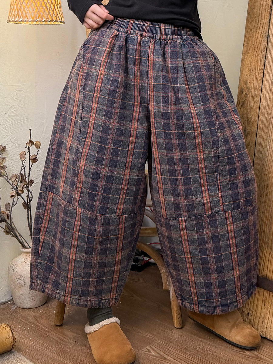 מכנסי חורף מרופדים בגזרה ישרה עם פסים משובצים בסגנון רטרו לנשים