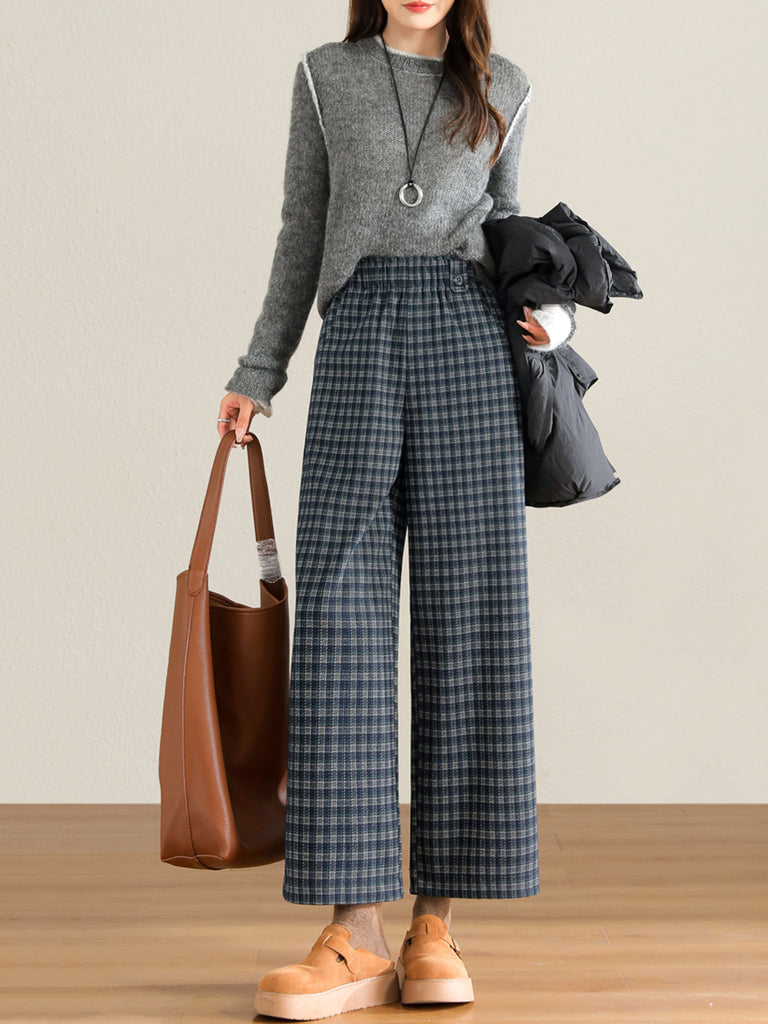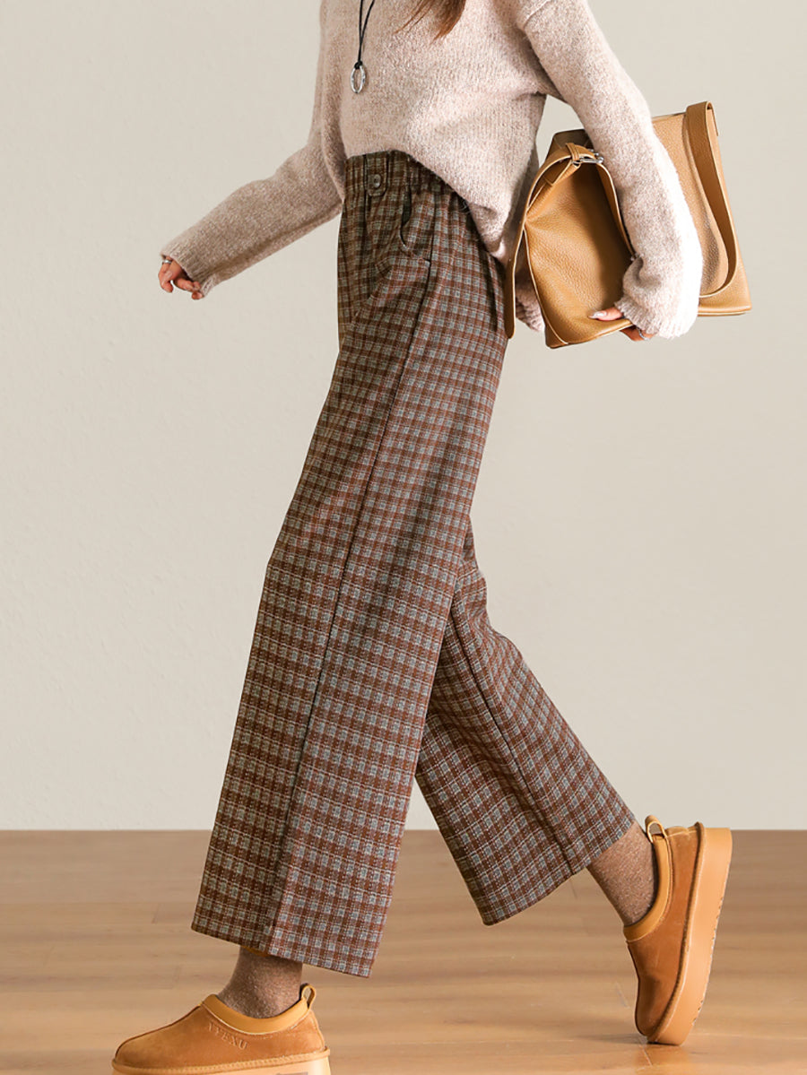 מכנסי חורף משובצים בסגנון רטרו לנשים