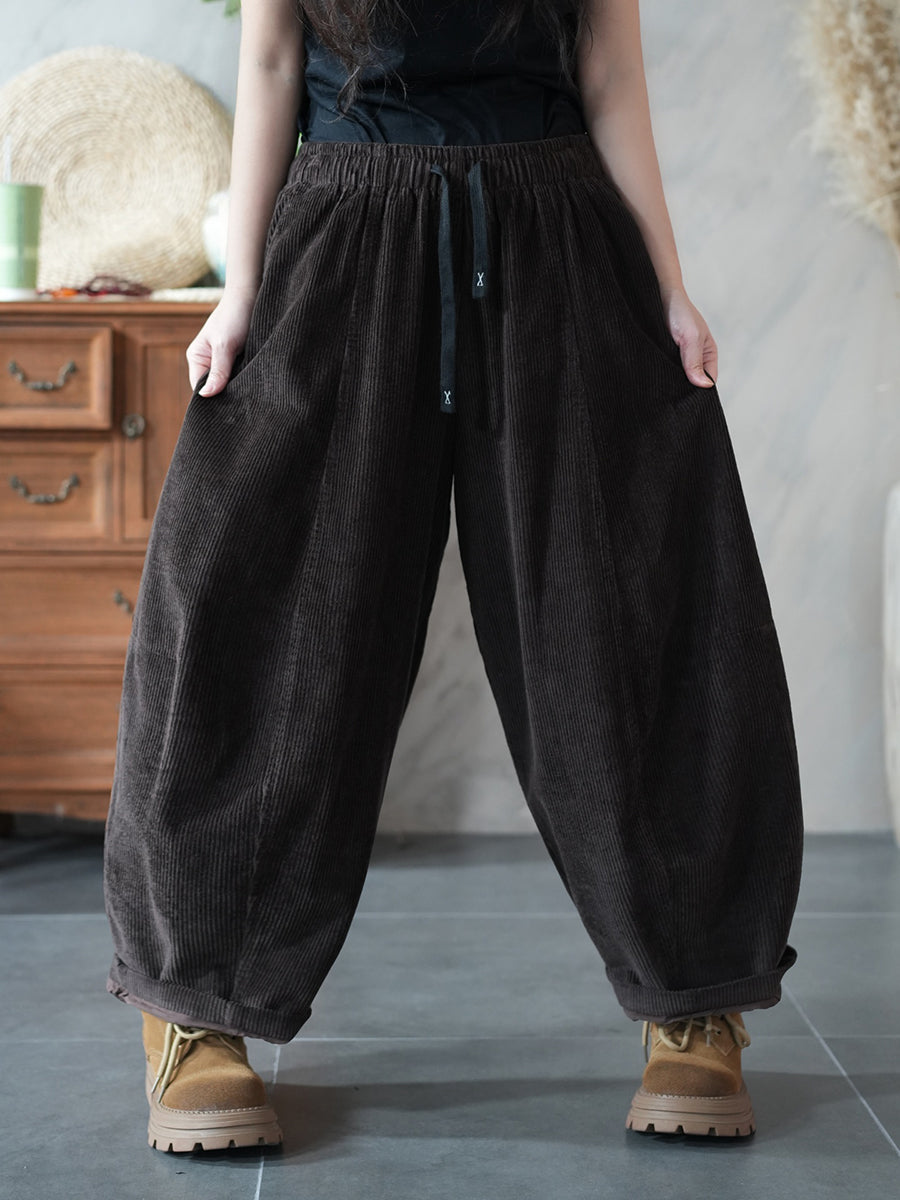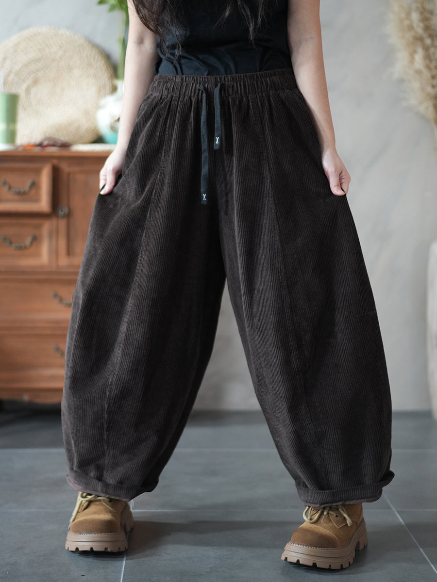 מכנסי הרמון קורדרוי בצבע טהור בצבע רטרו לחורף לנשים