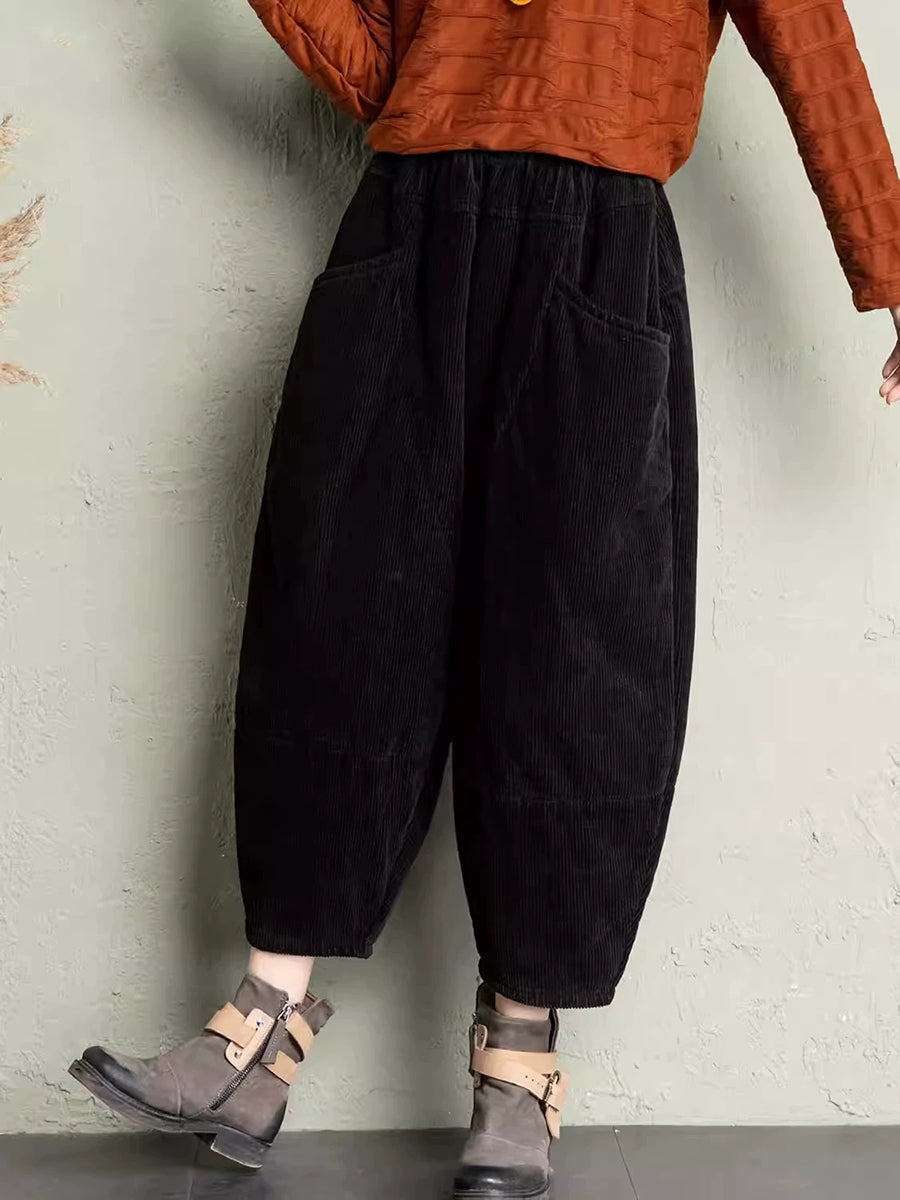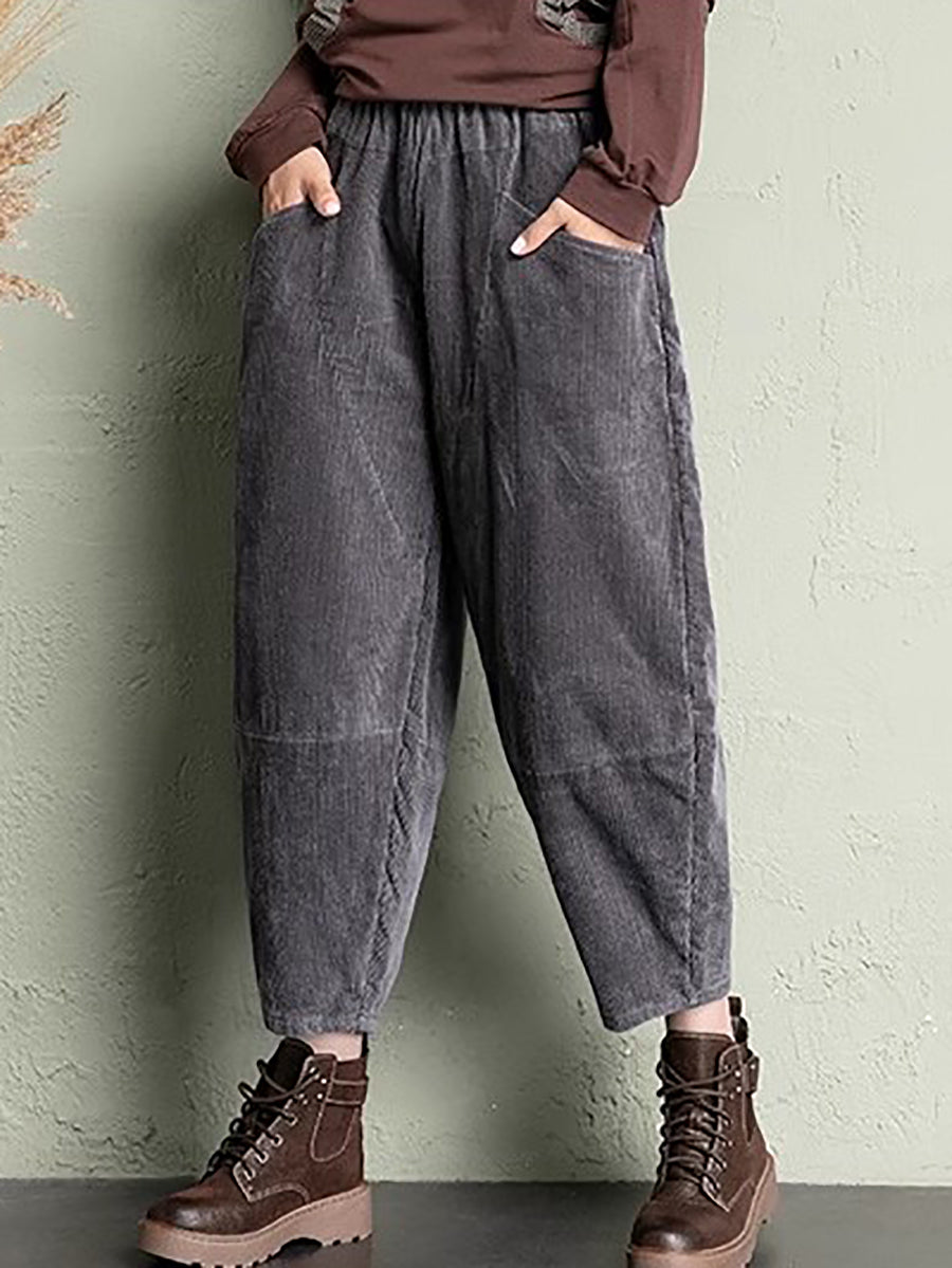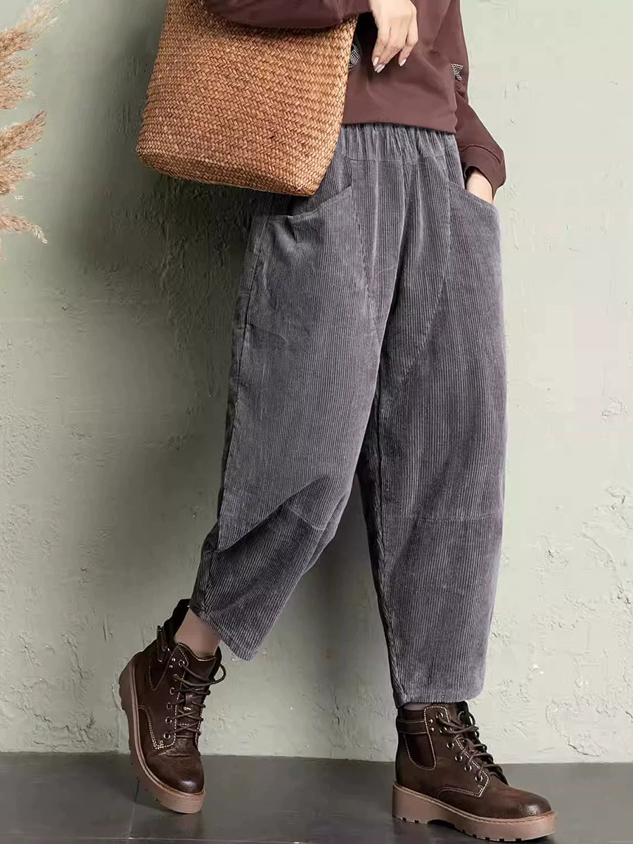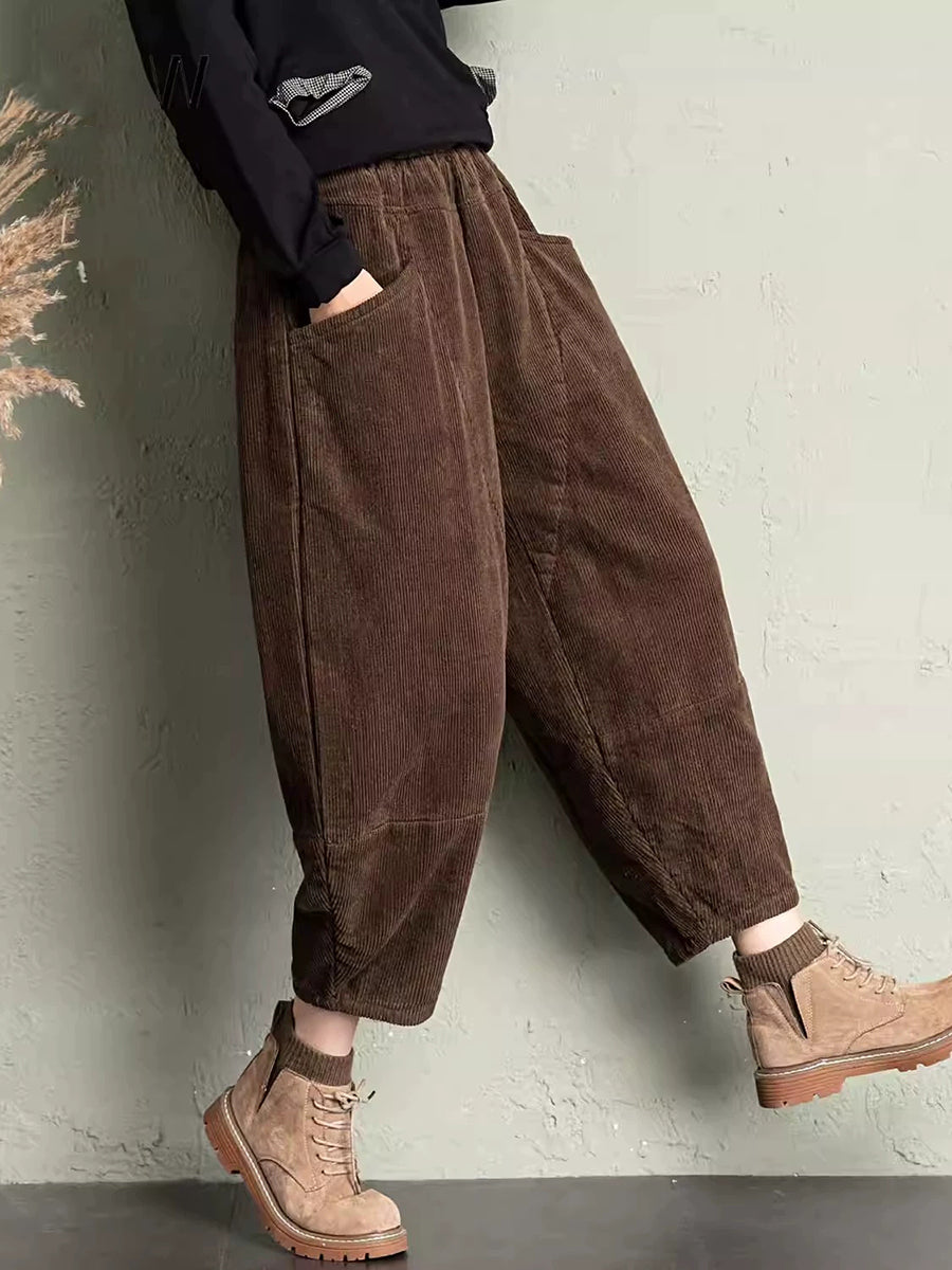 מכנסי הרמון קורדרוי בצבע טהור בצבע רטרו לחורף לנשים