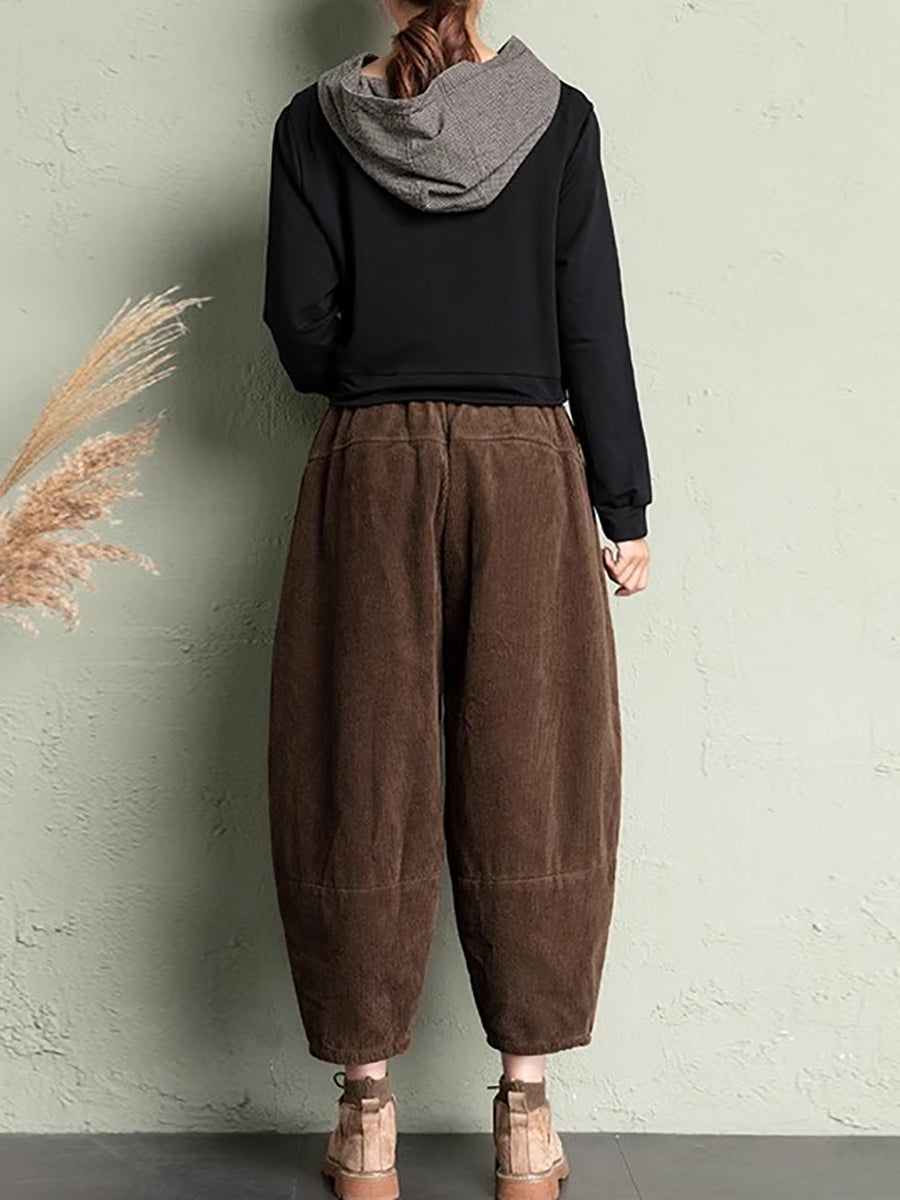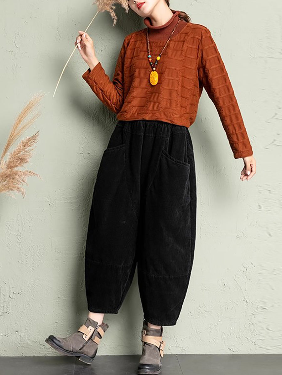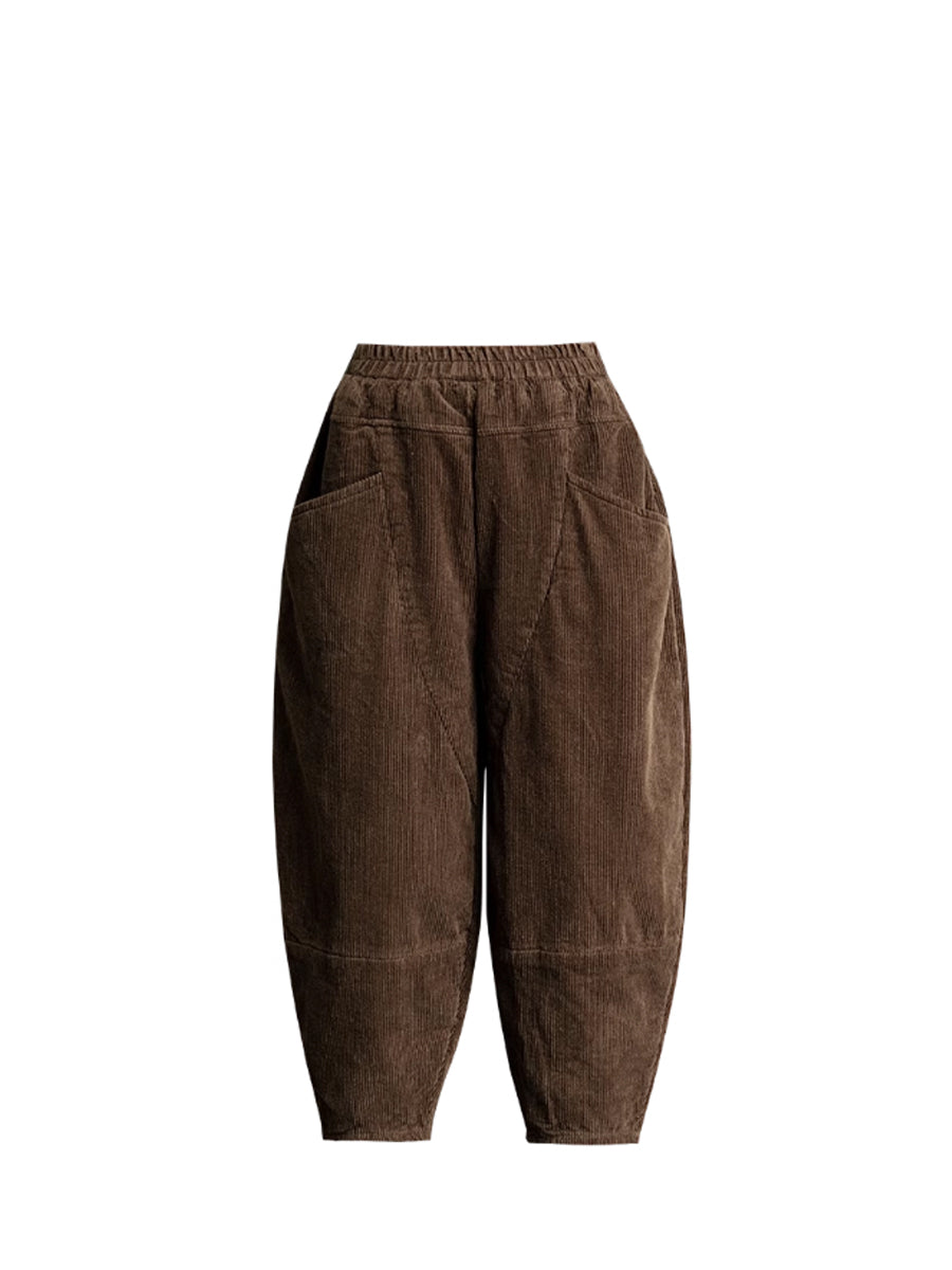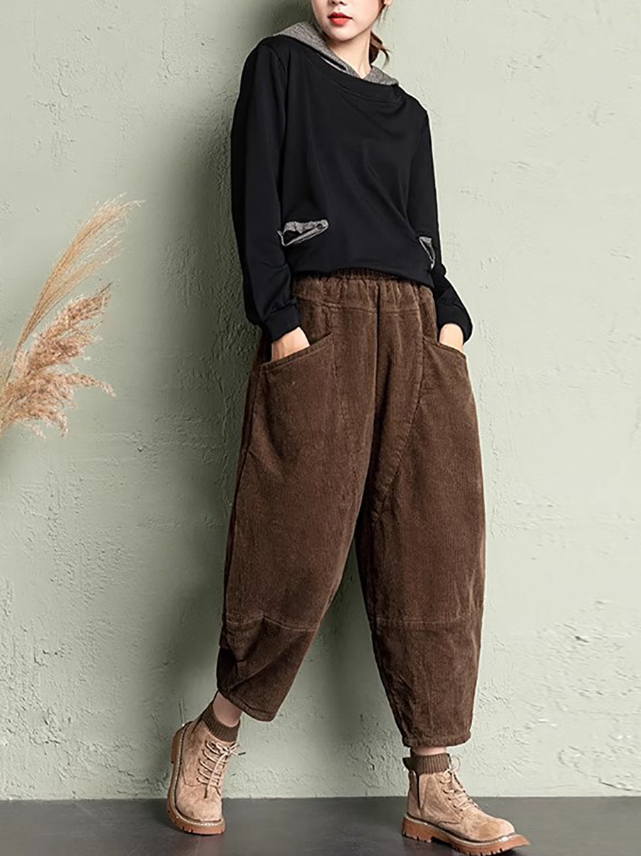מכנסי הרמון קורדרוי בצבע טהור בצבע רטרו לחורף לנשים